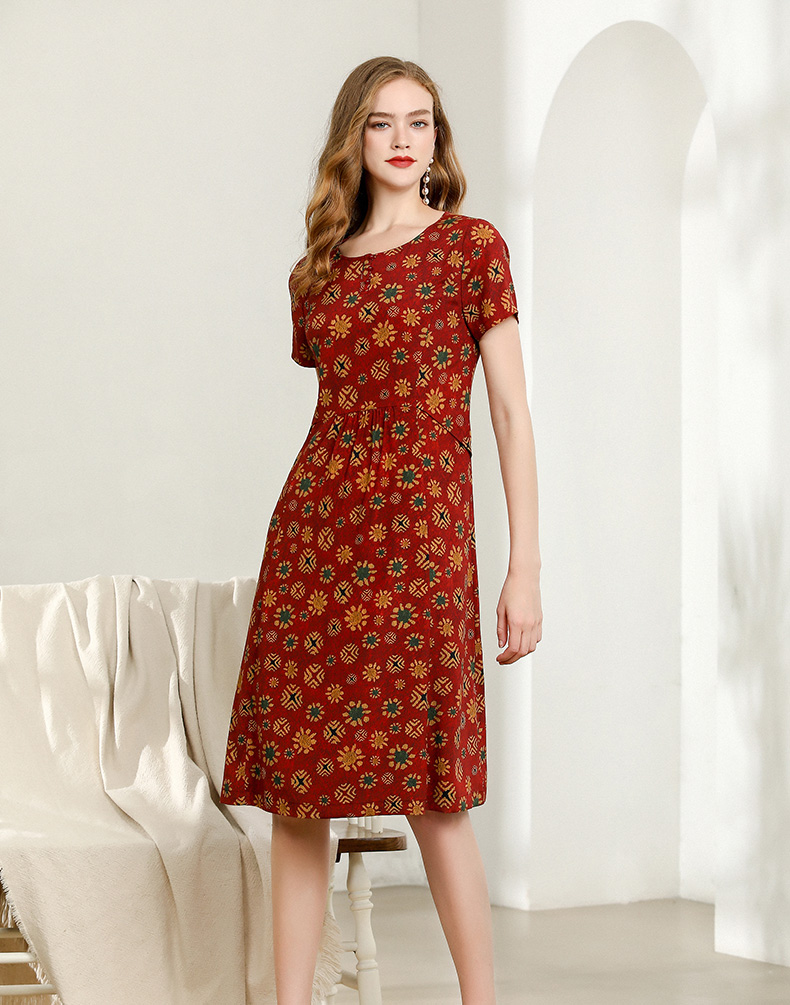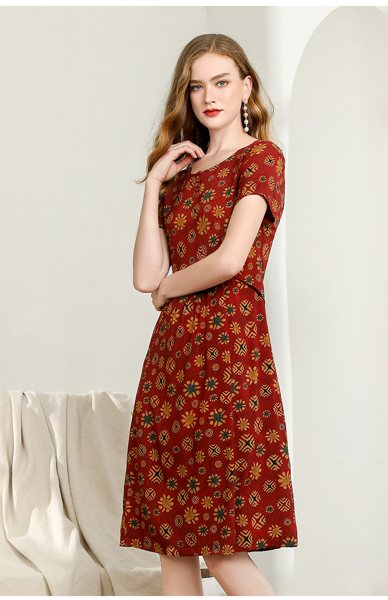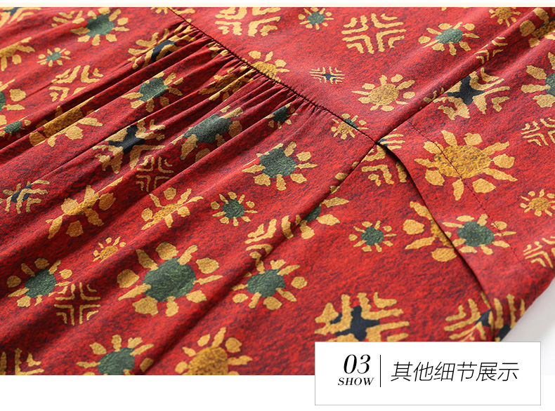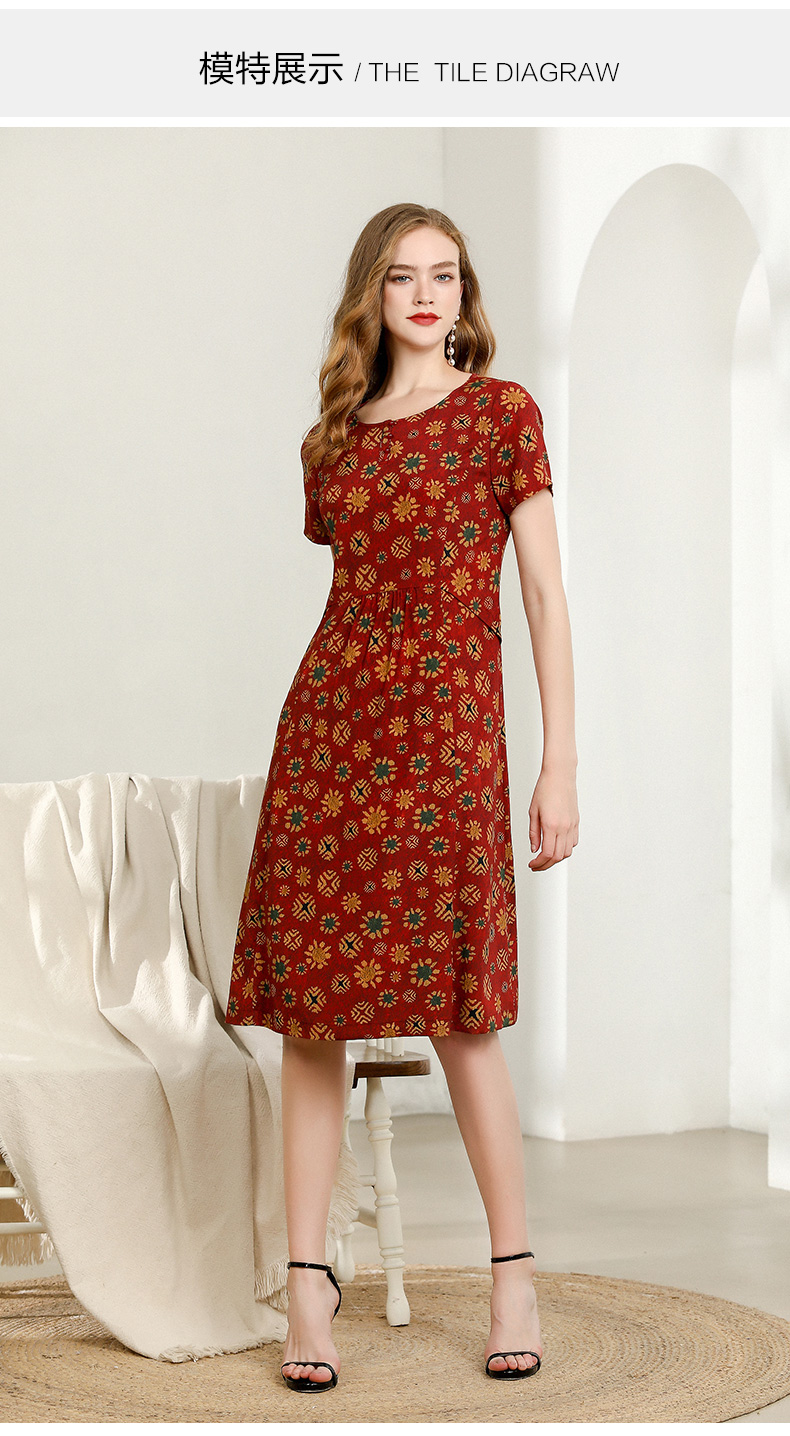 乔万尼夏洋气复古印花修身气质真丝桑蚕丝连衣裙女中长款EN2E609