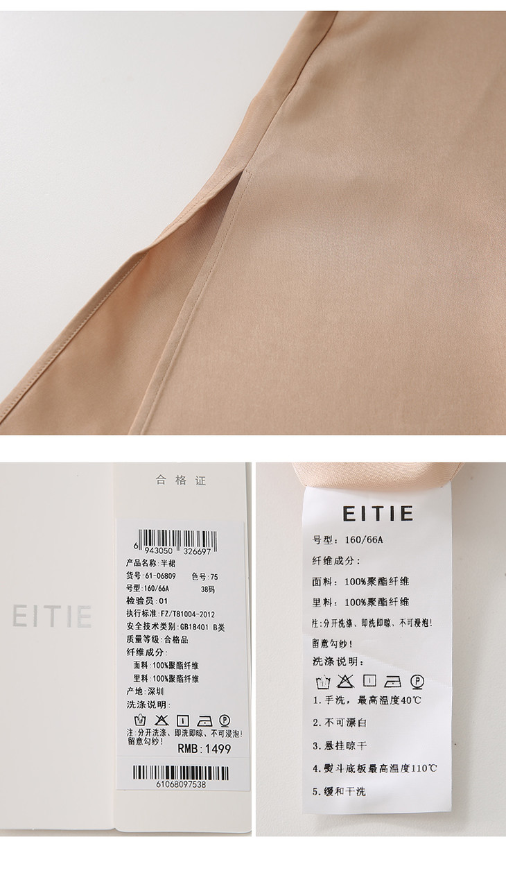 EITIE爱特爱纯色中长A字半裙6106809