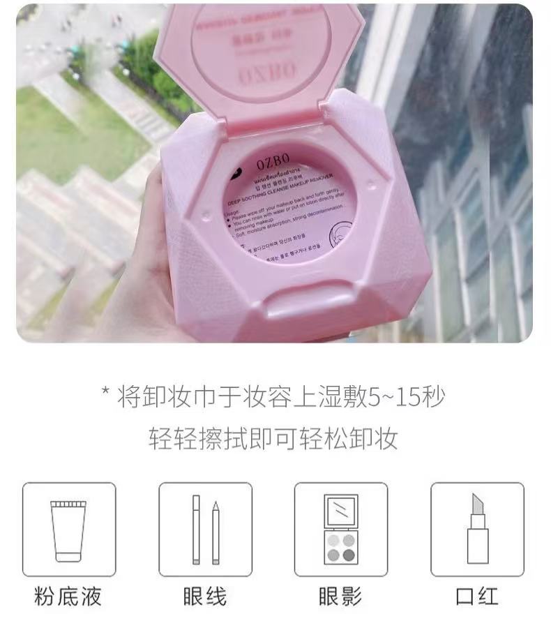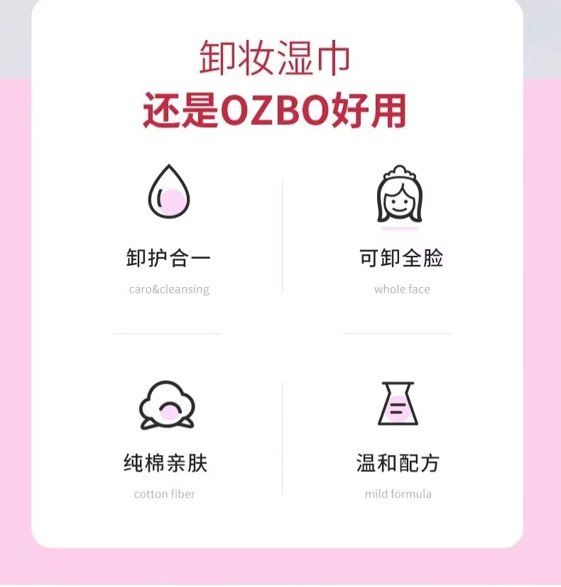 【门店直发】OZBO一次性卸妆湿巾脸部护肤纯棉亲肤温和60抽取式洗脸巾卸妆纸巾