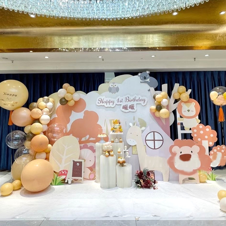 卡通版动物园主题宝宝宴周岁满月百日岁生日宴气球上门布置