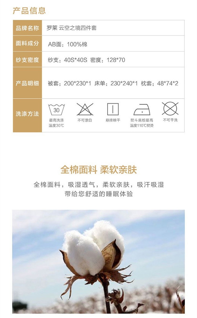罗莱家纺 云空之境四件套 200*230cm