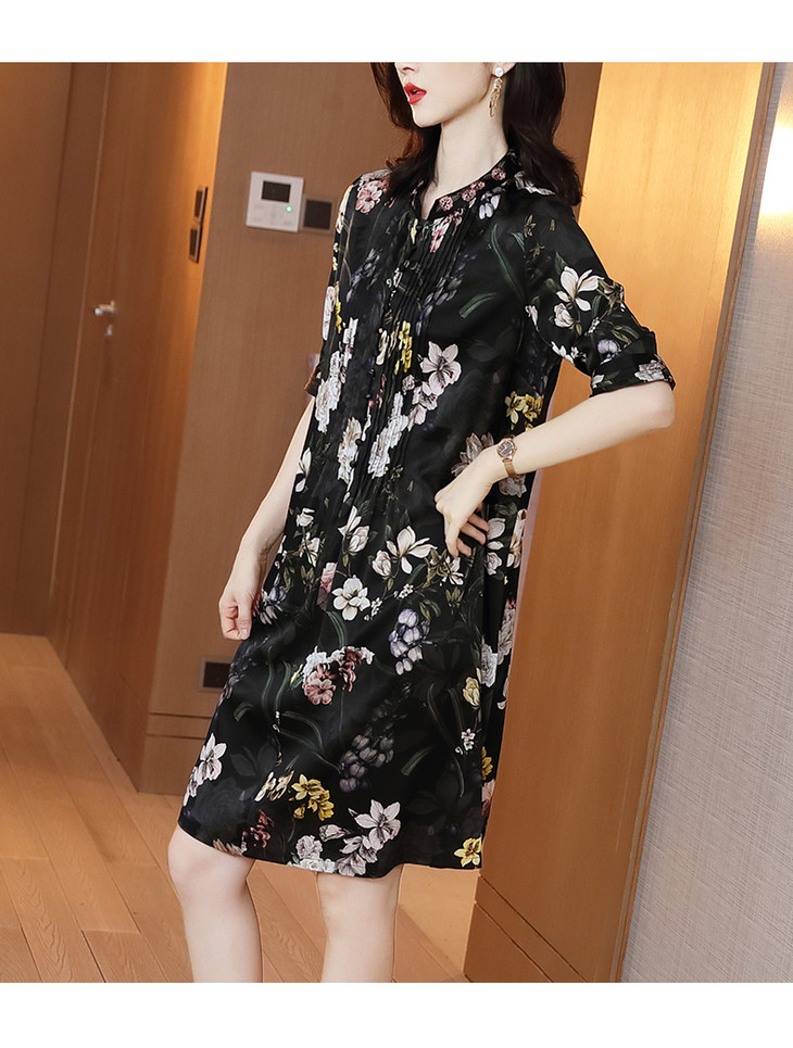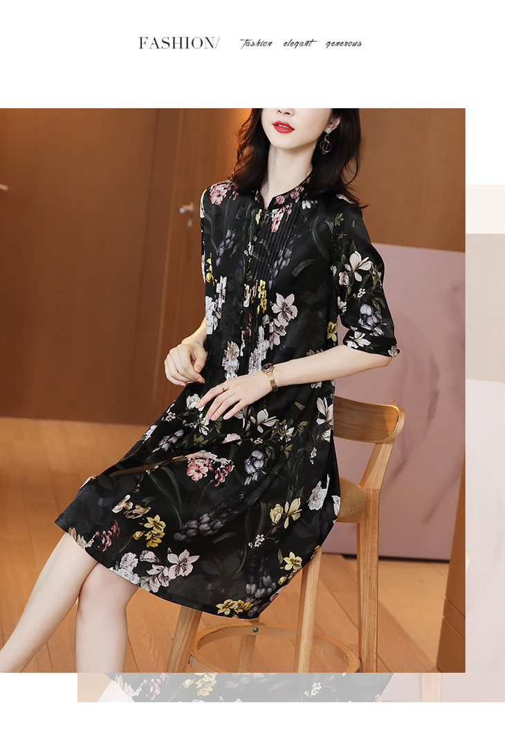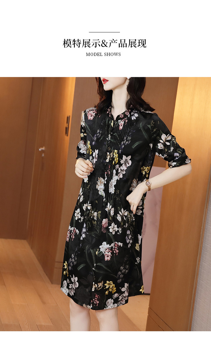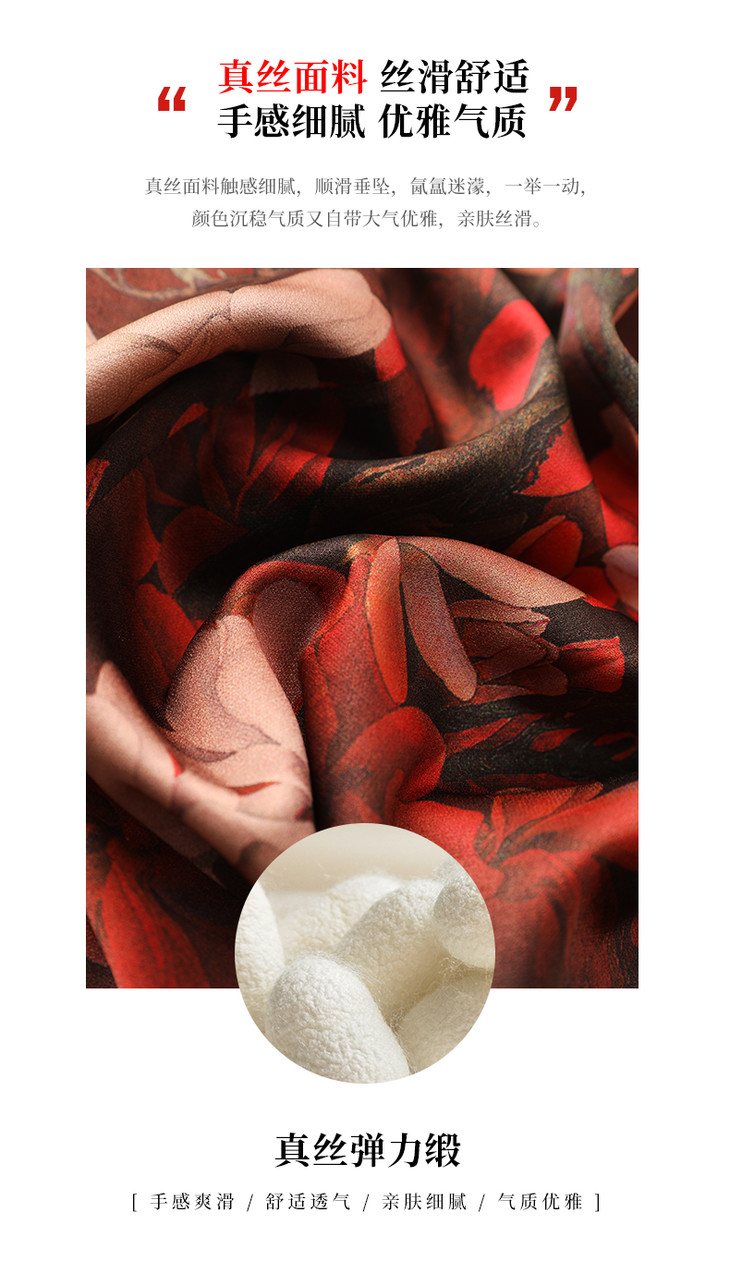 ASS 2063真丝桑蚕丝连衣裙大码气质碎花