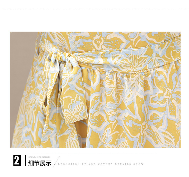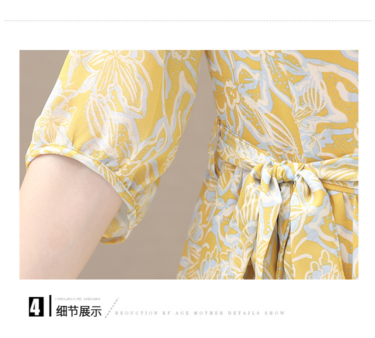 OMS-OSB305-L 2023年秋款印花中长款系带收腰时尚雪纺裙圆领五分袖气质连衣裙 商品图2