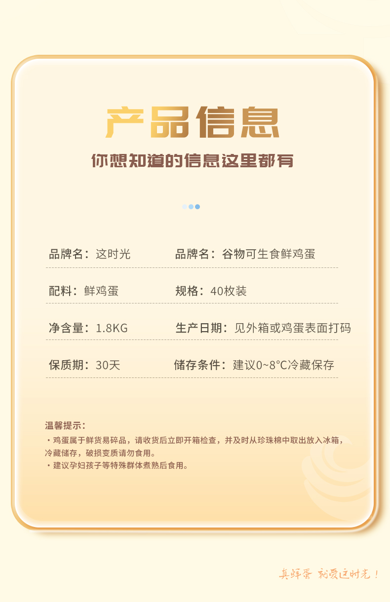无菌无抗 可生食 | 这时光谷物NSF认证 孕妇儿童宝宝放心鲜鸡蛋 高蛋白食材 40枚
