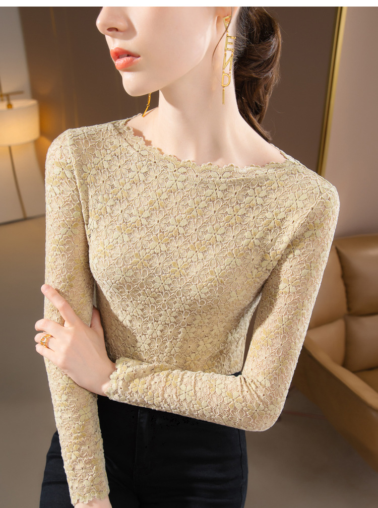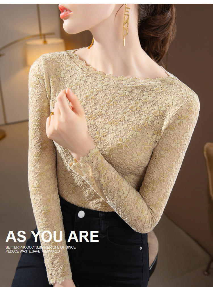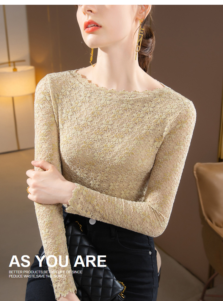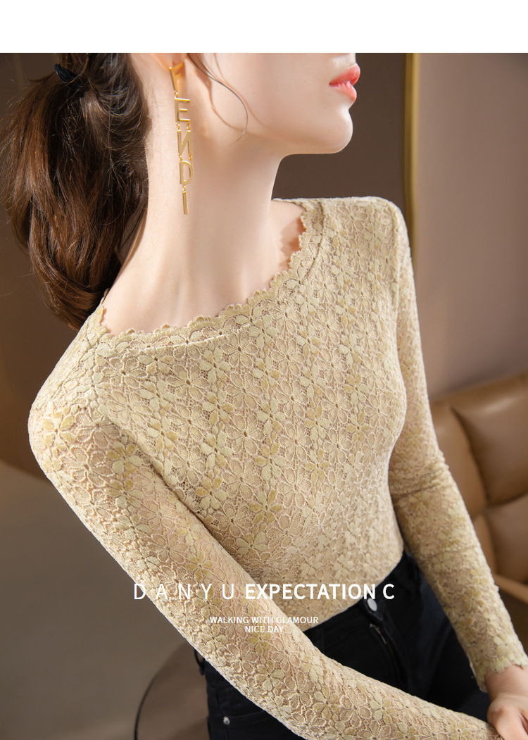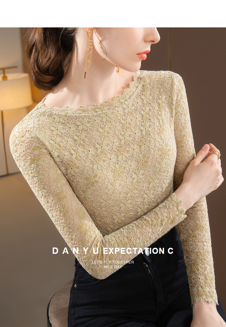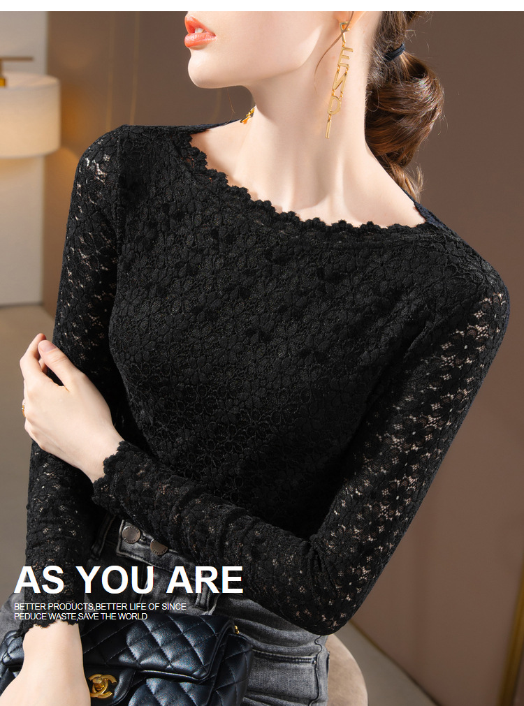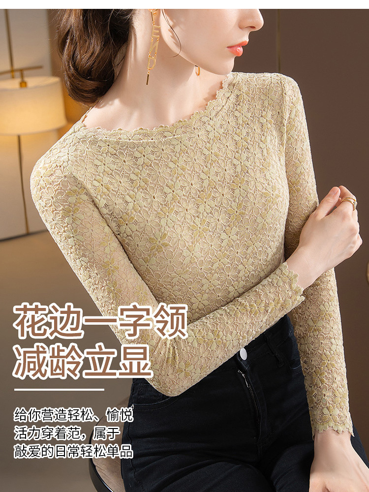 DYSL-L2D3091新款时尚洋气紧身花边一字肩长袖蕾丝打底衫
