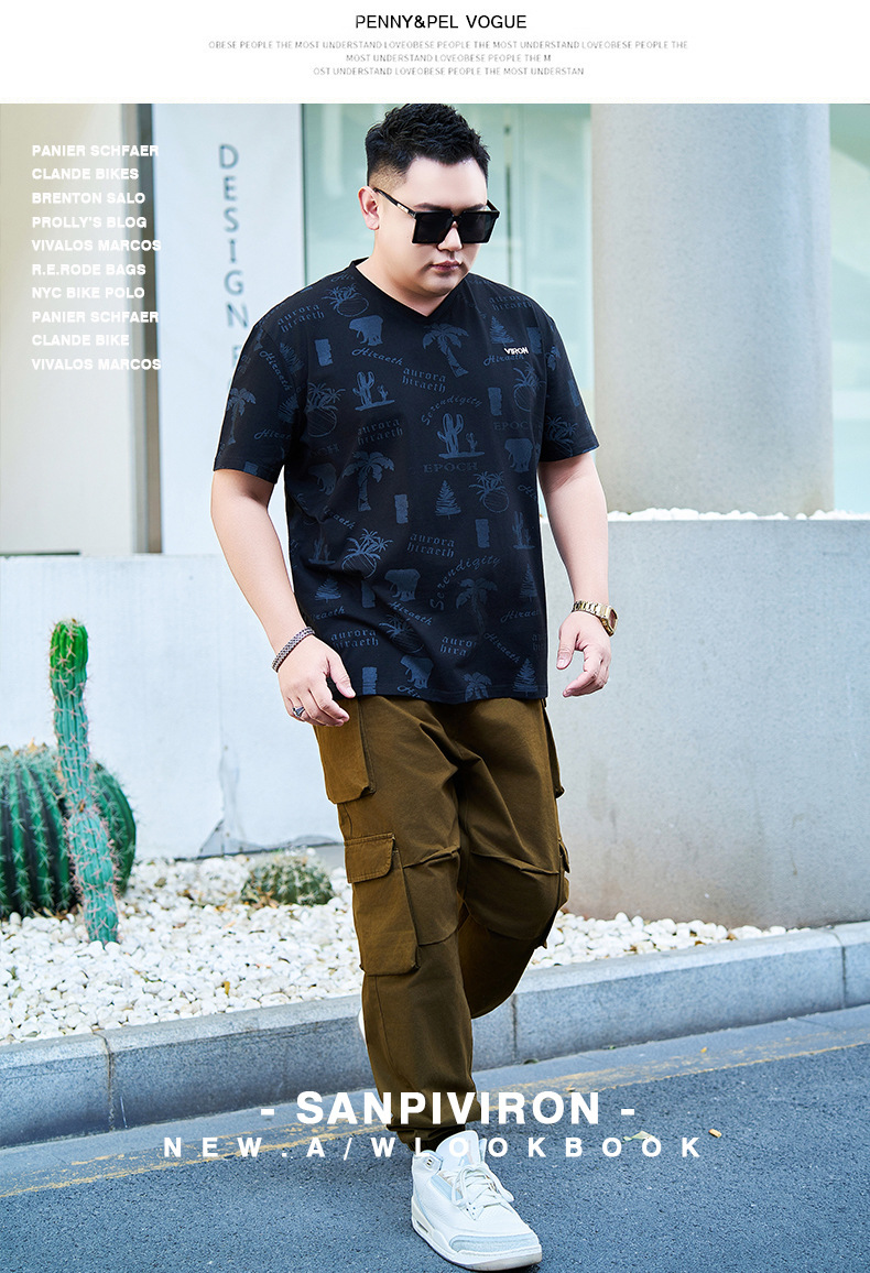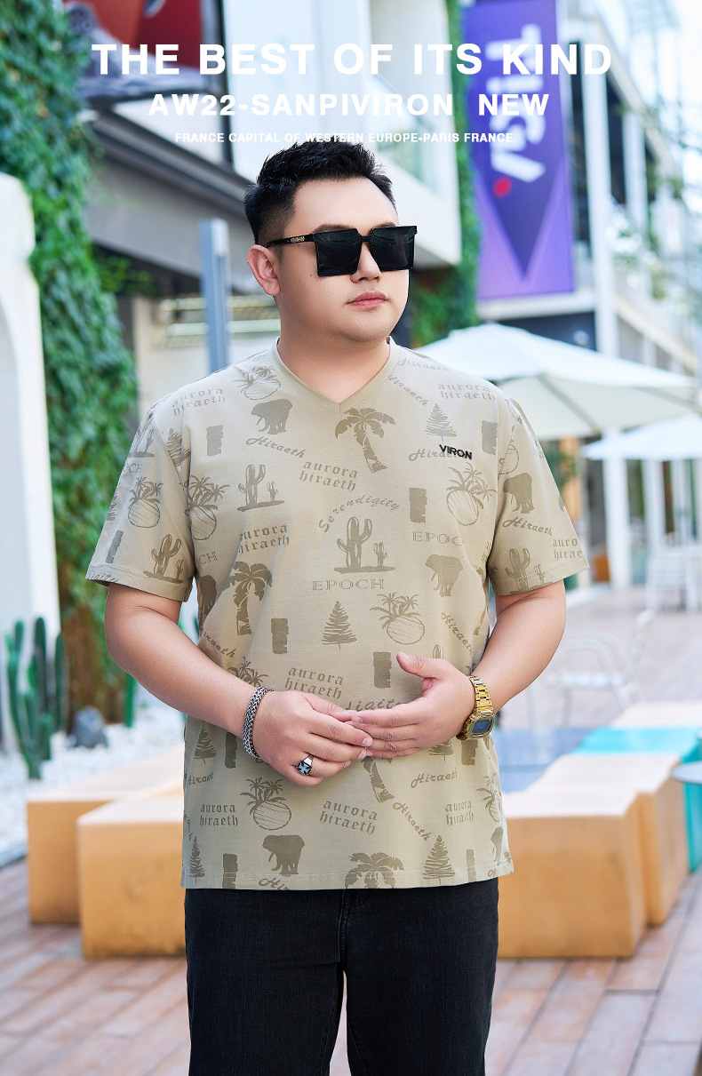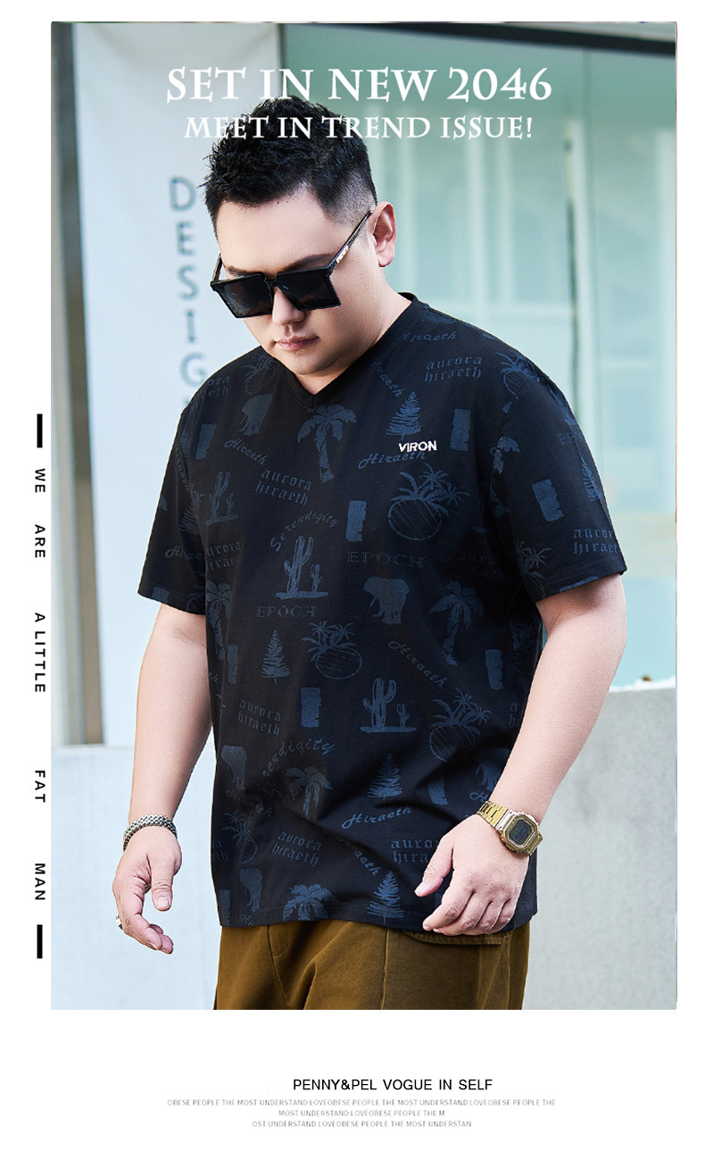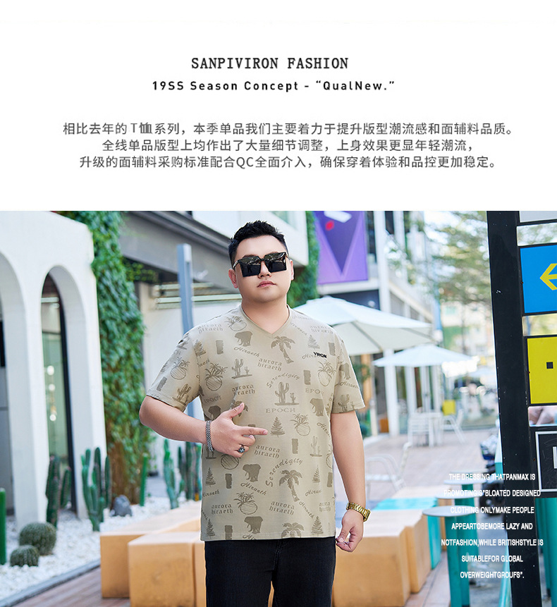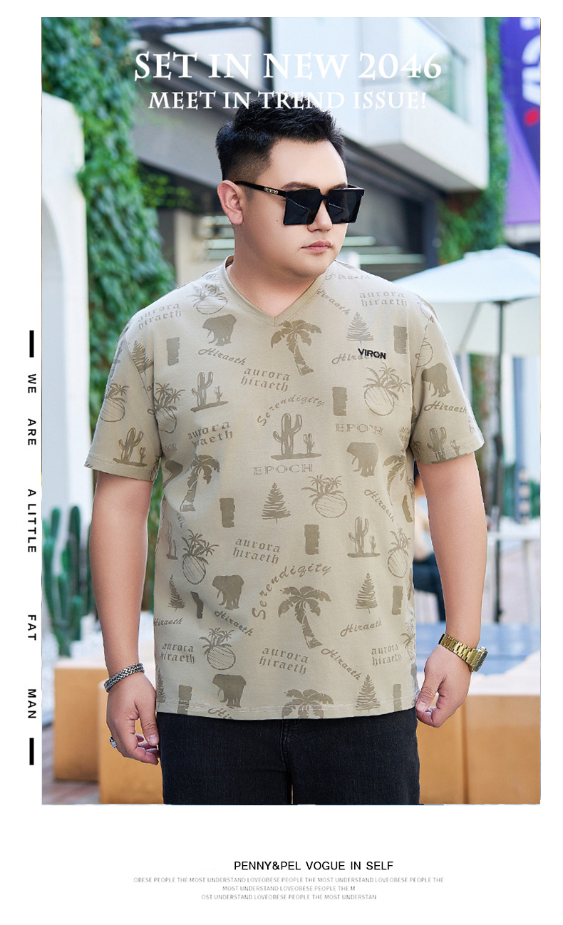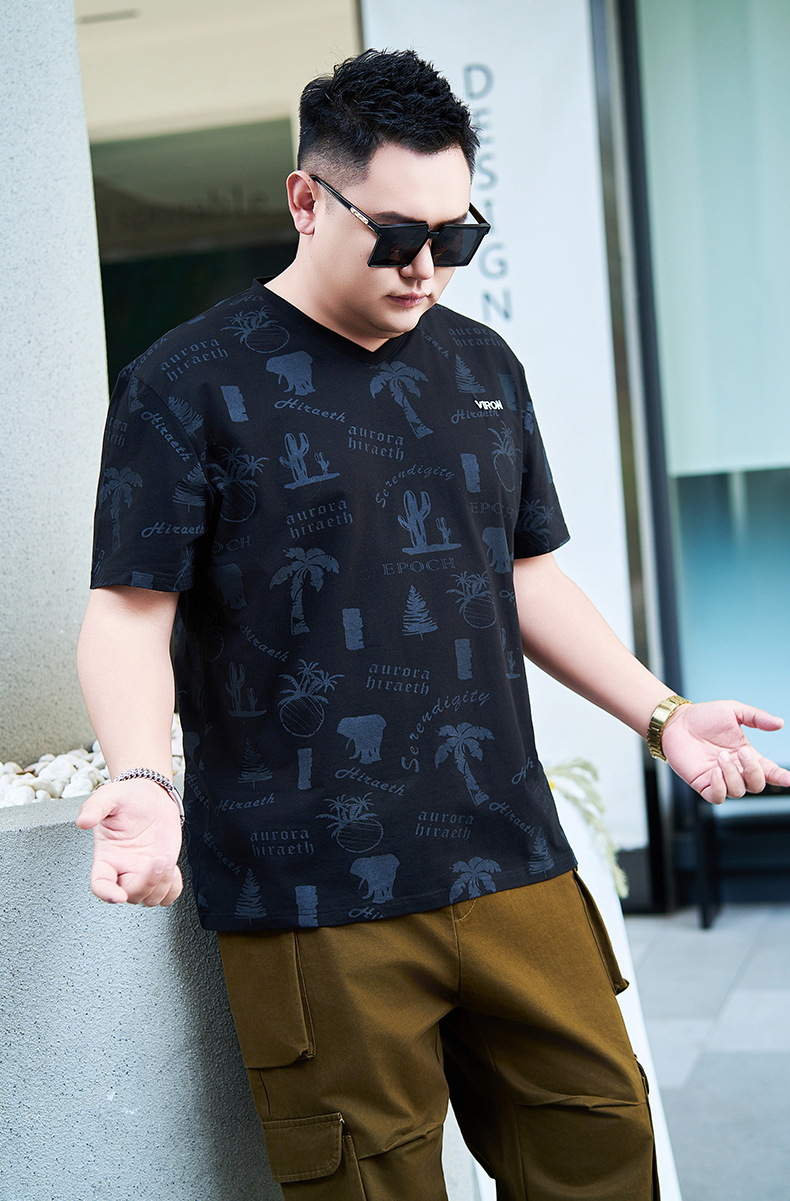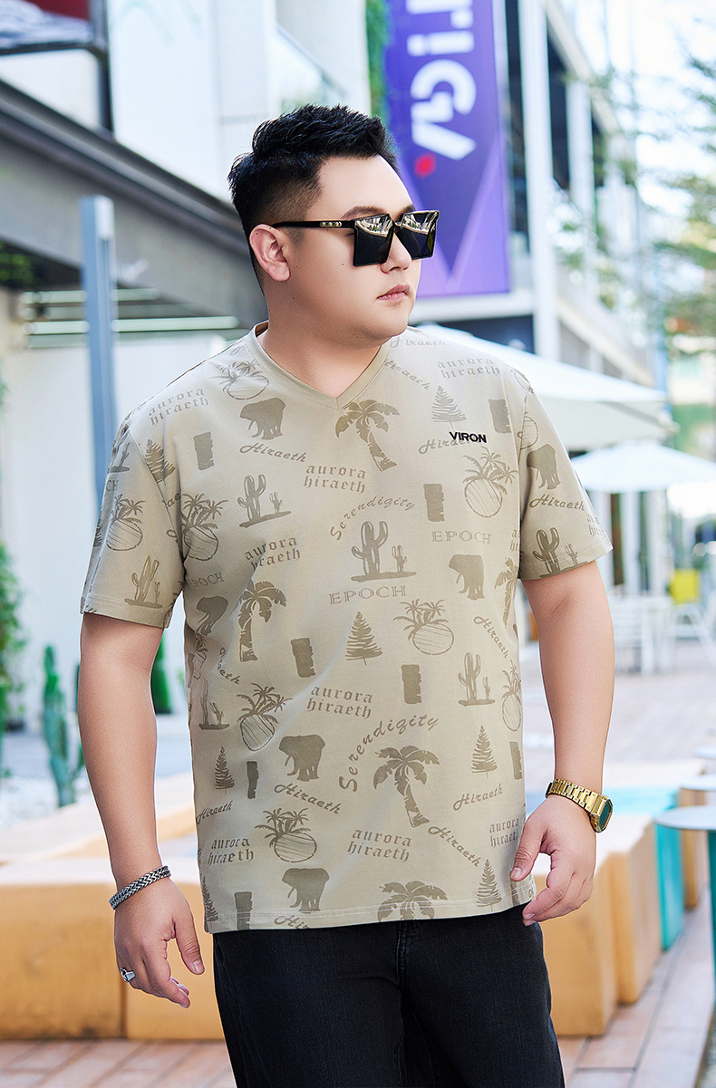【纯棉】【DYG】大依优型大码男装V领T恤潮流印花男加肥加大码宽松短袖T恤男士肥佬衣服衫