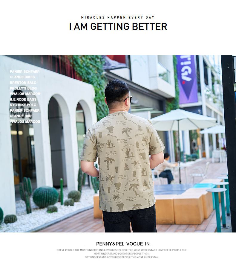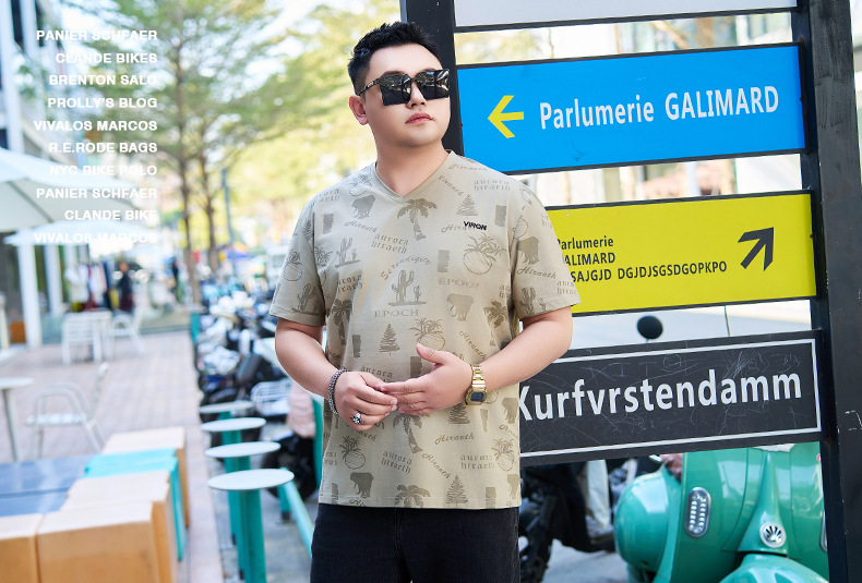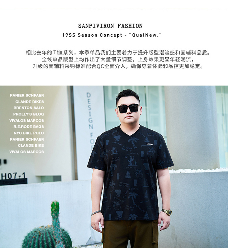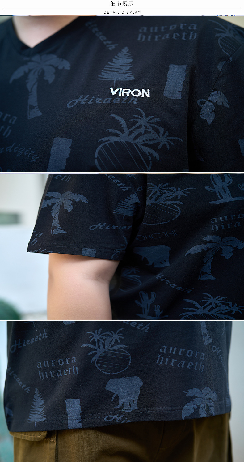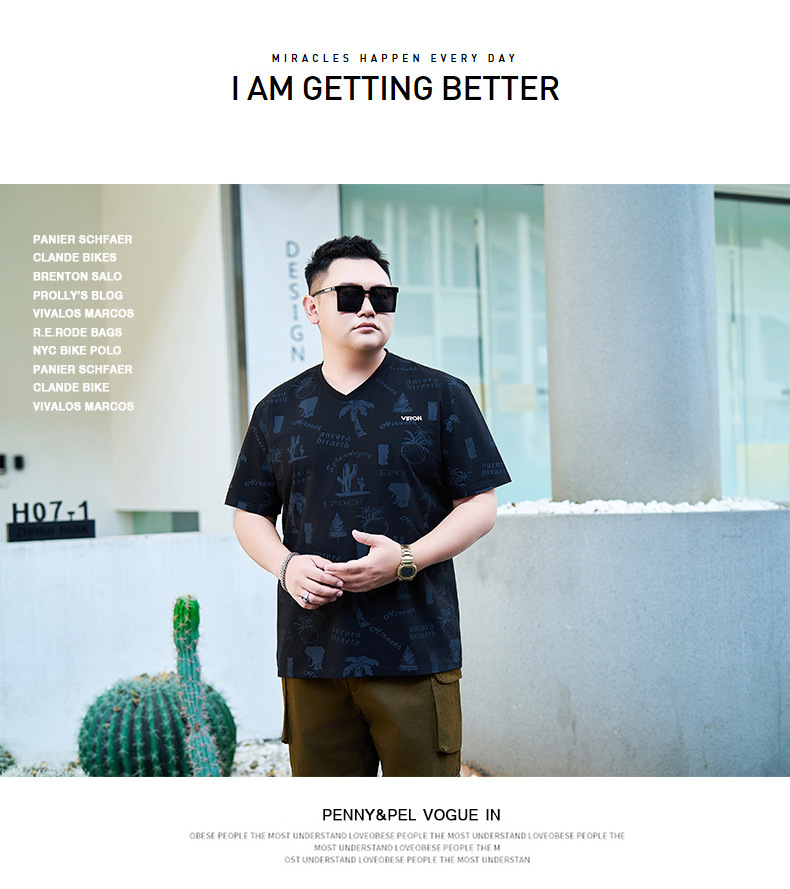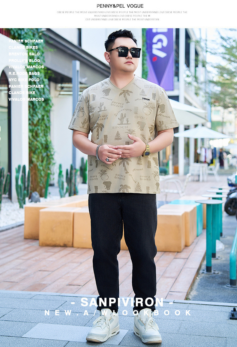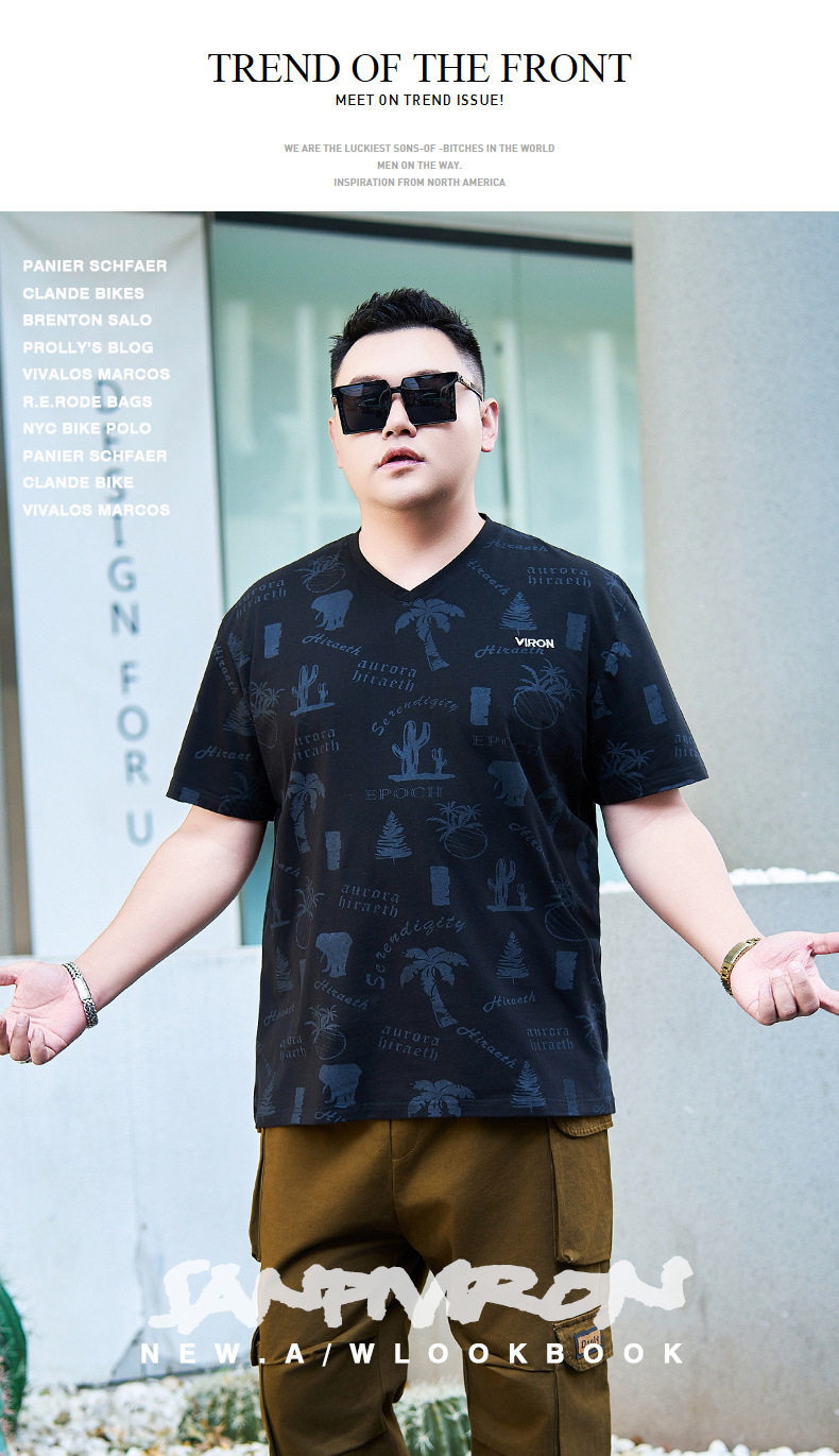 【纯棉】【DYG】大依优型大码男装V领T恤潮流印花男加肥加大码宽松短袖T恤男士肥佬衣服衫