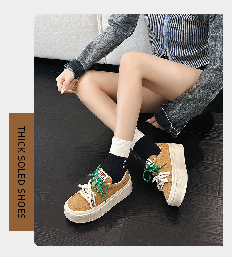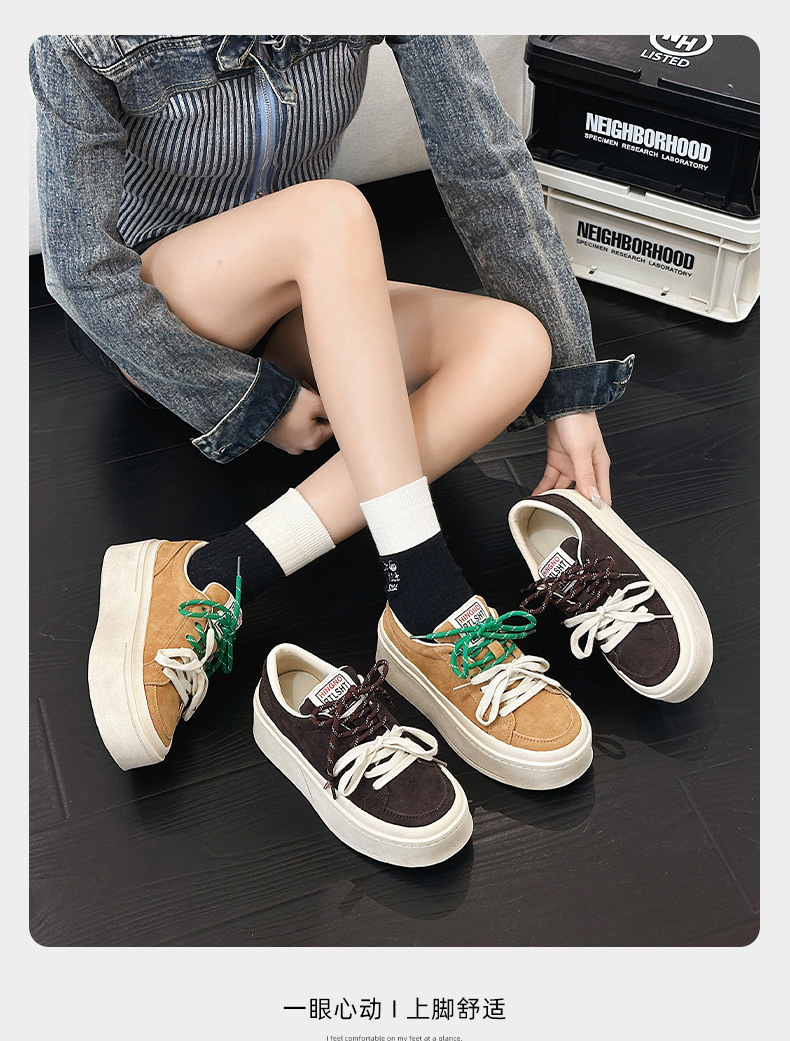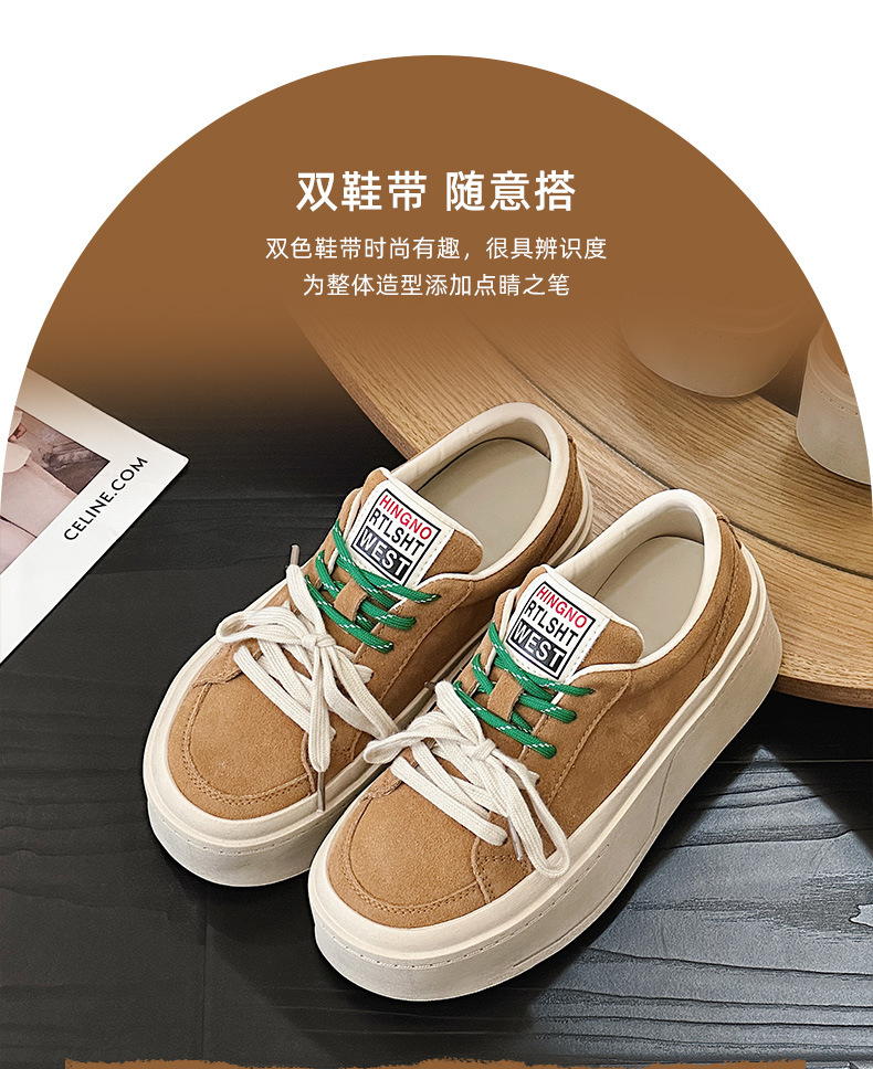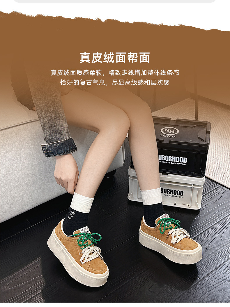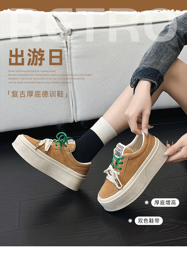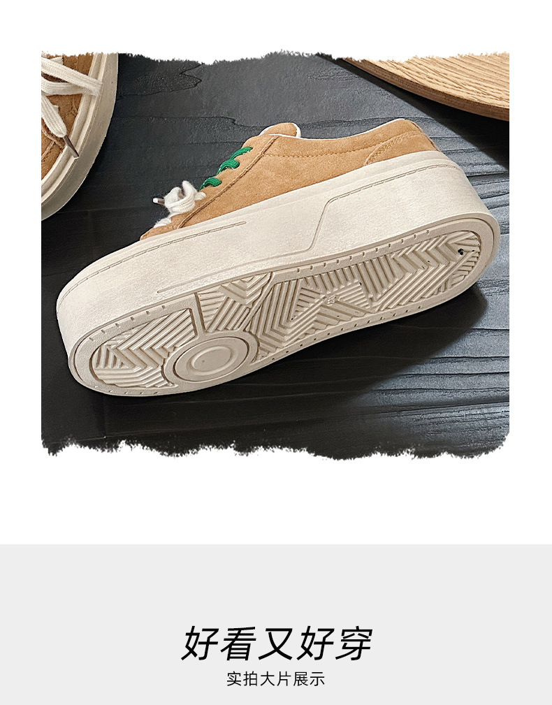 丁摩 欧洲站厚底板鞋春季新款双色系带面包鞋真皮小个子增高休闲鞋5ZF-3311