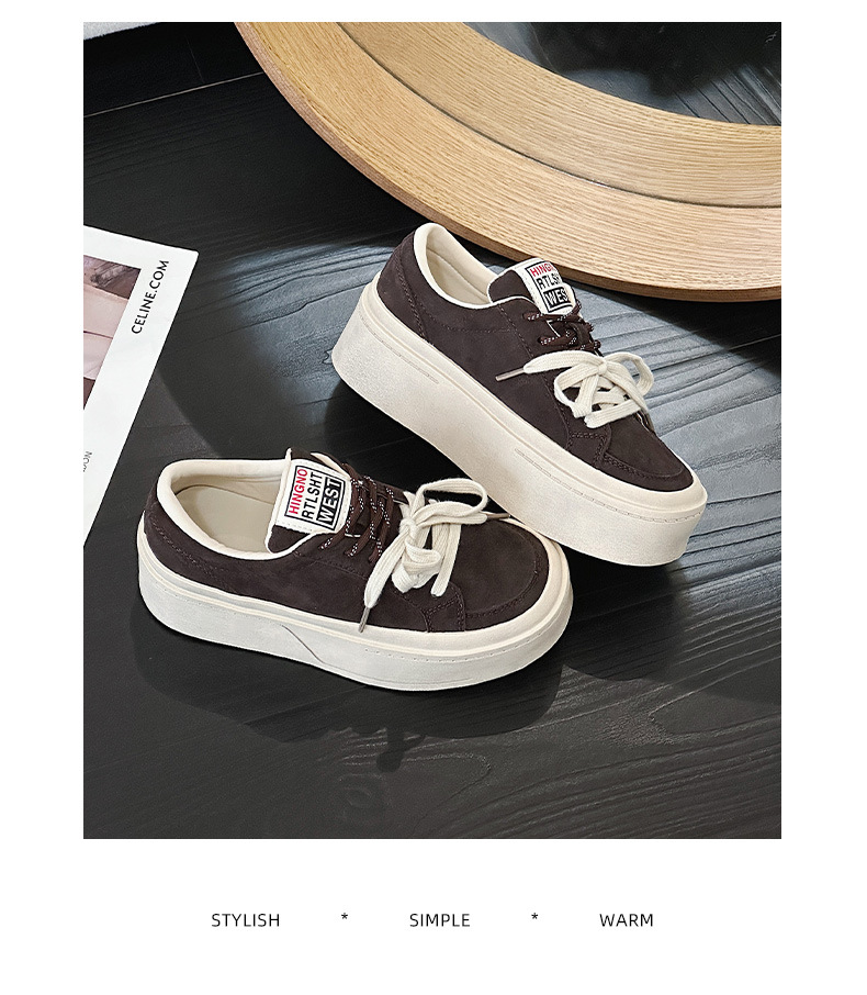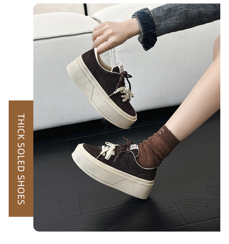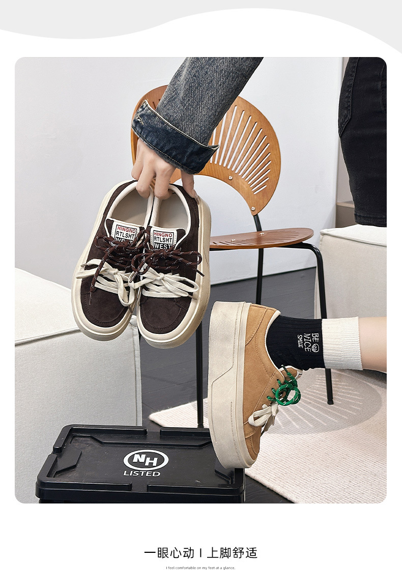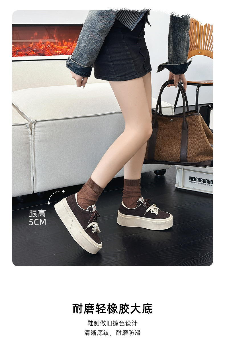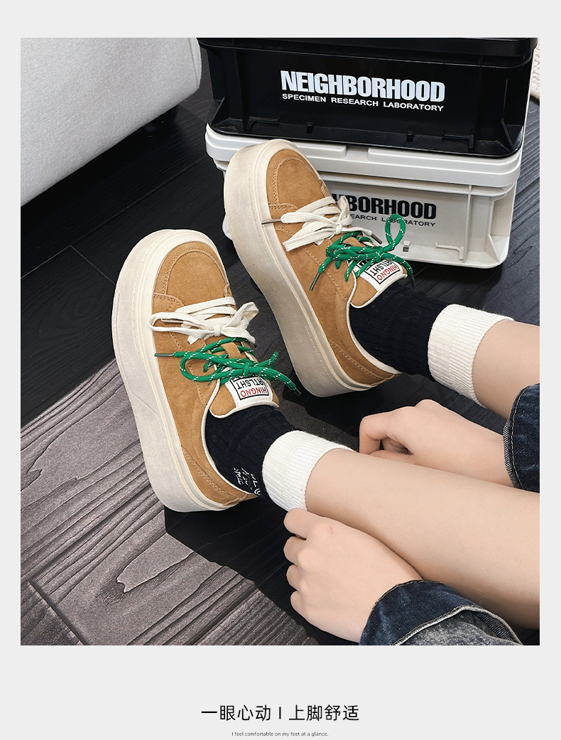 丁摩 欧洲站厚底板鞋春季新款双色系带面包鞋真皮小个子增高休闲鞋5ZF-3311