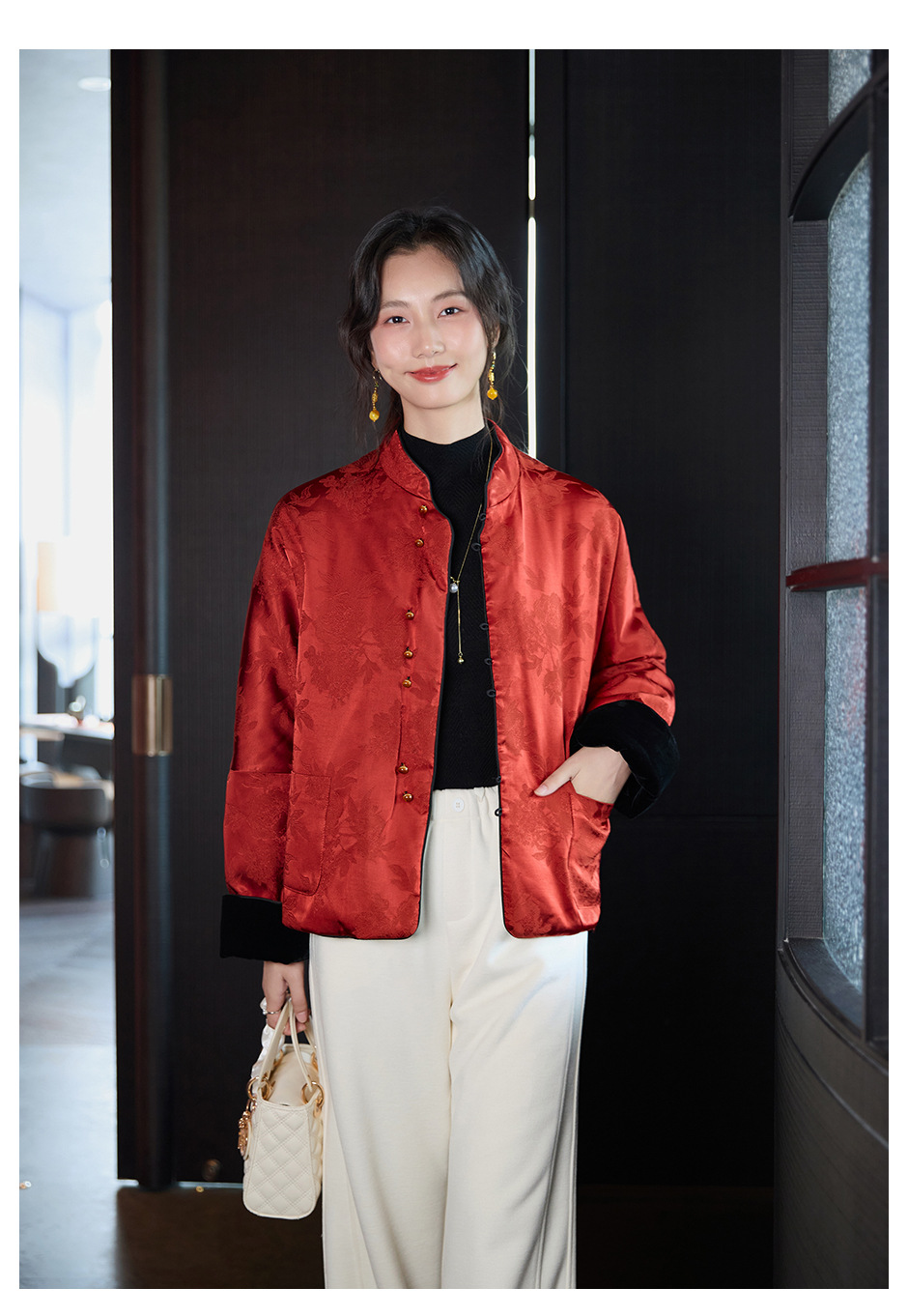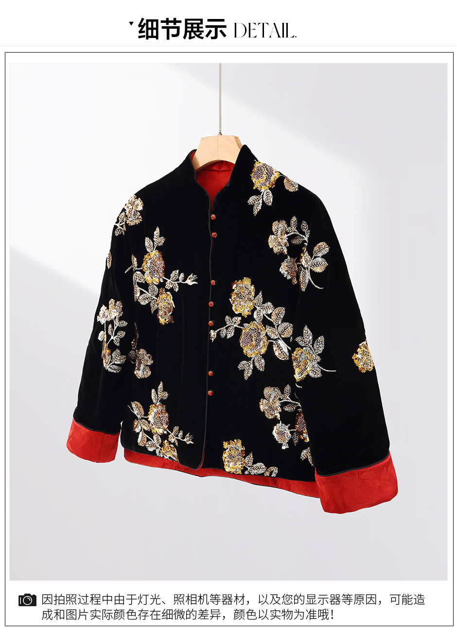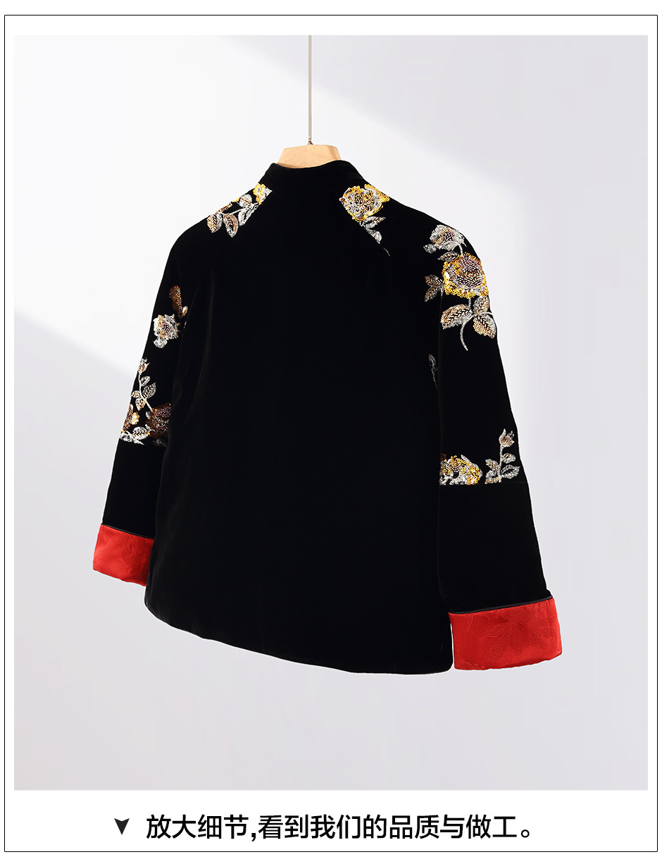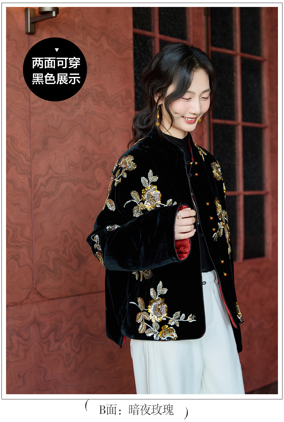 丁摩 双面可穿的外套棉衣秋冬真丝丝绒上衣5ZF-76060