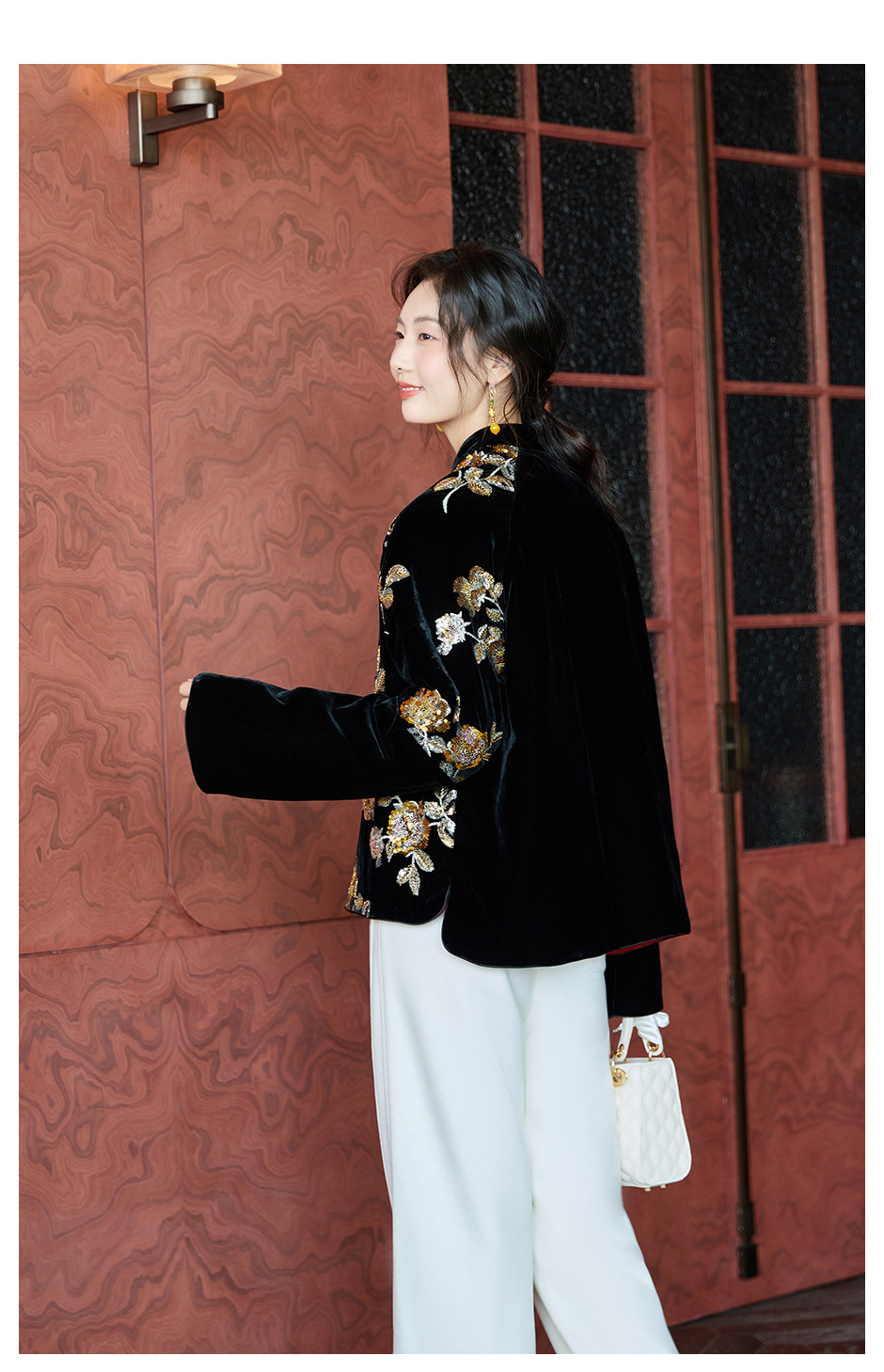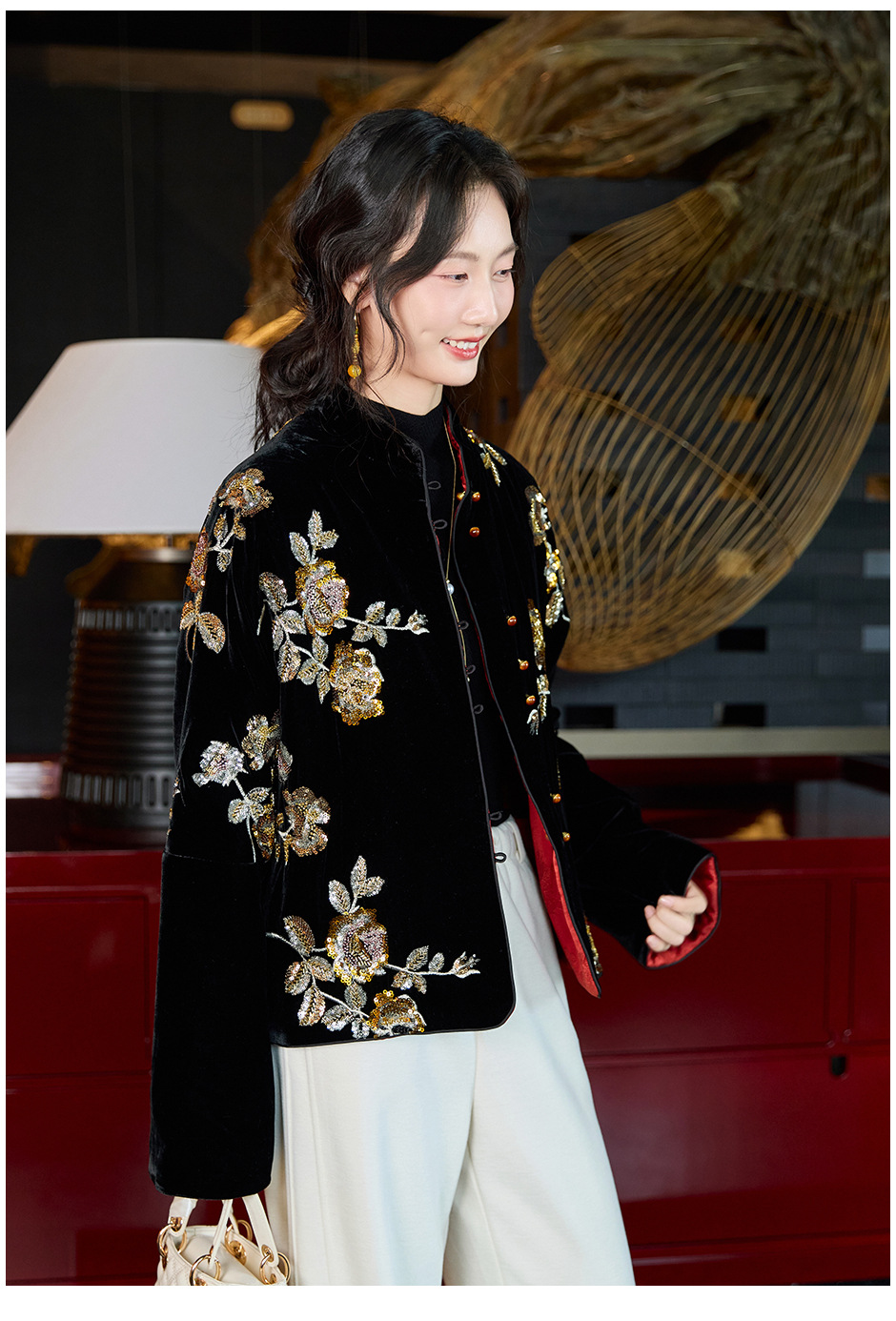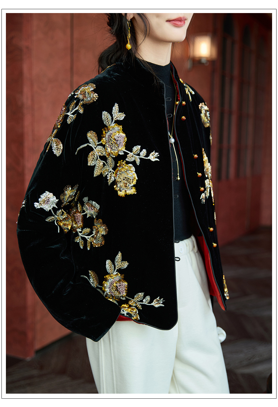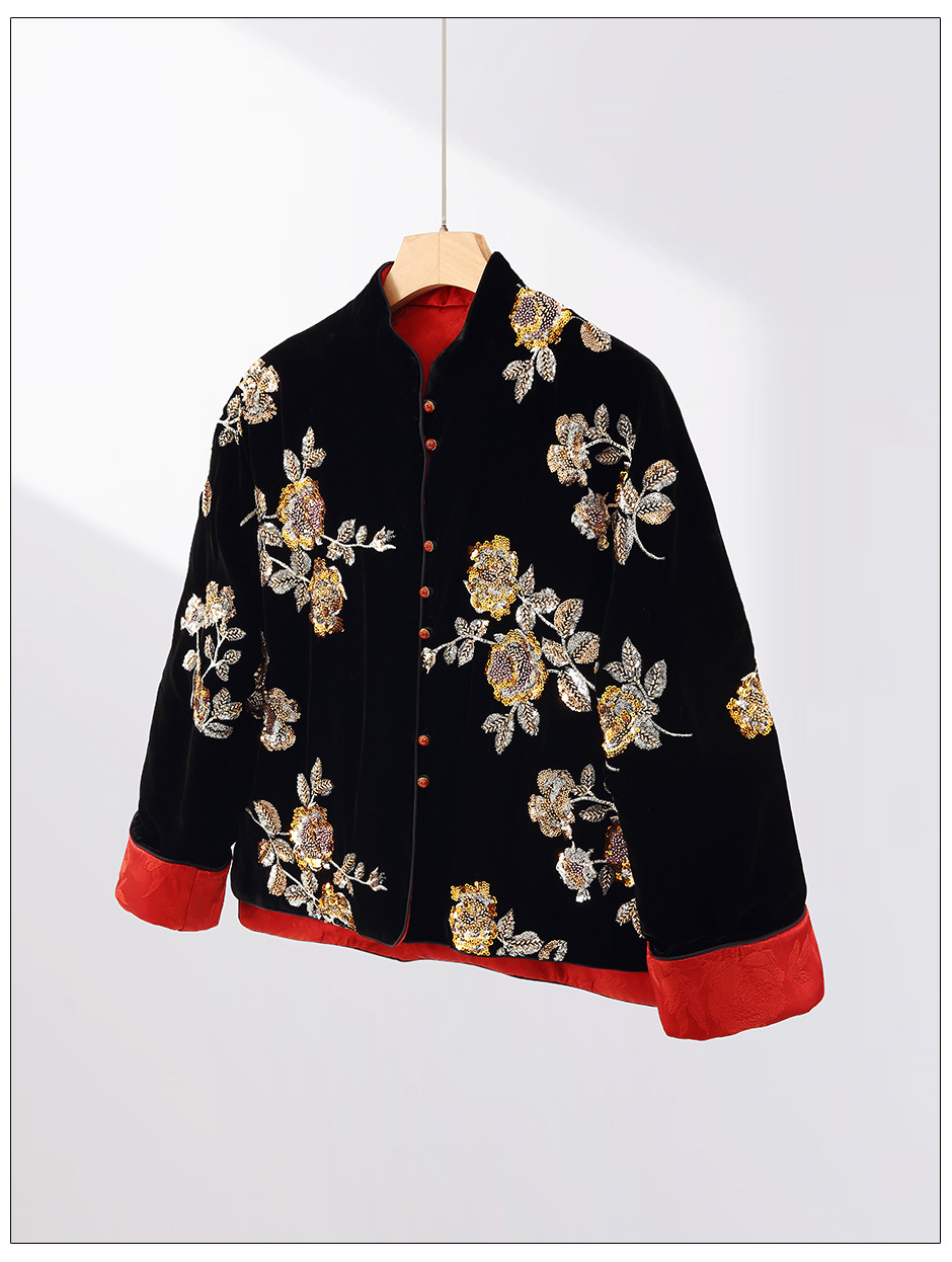 丁摩 双面可穿的外套棉衣秋冬真丝丝绒上衣5ZF-76060