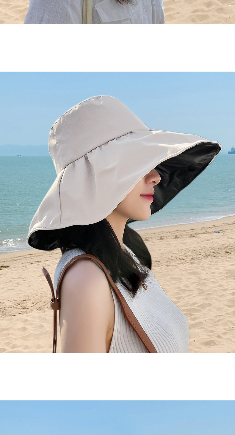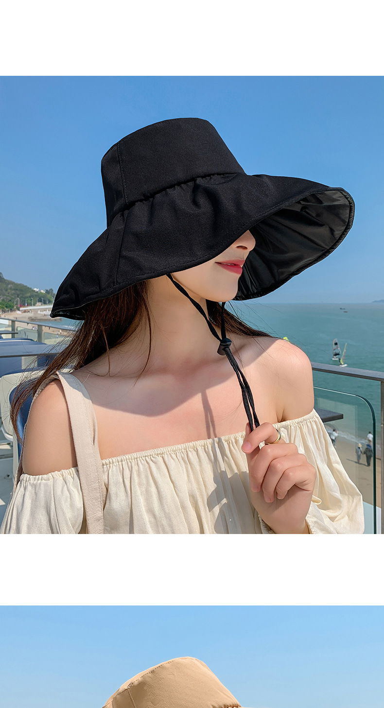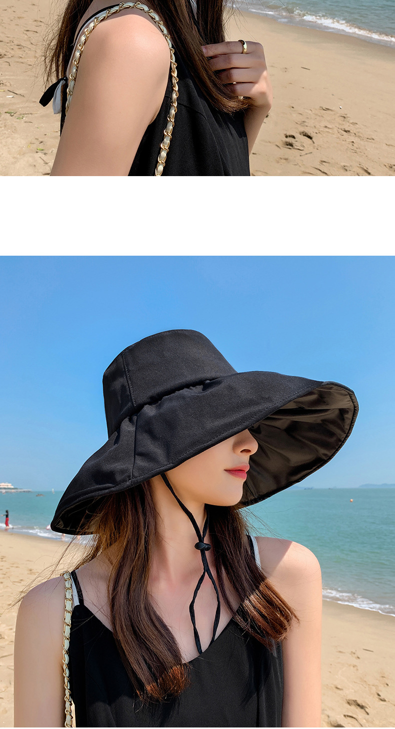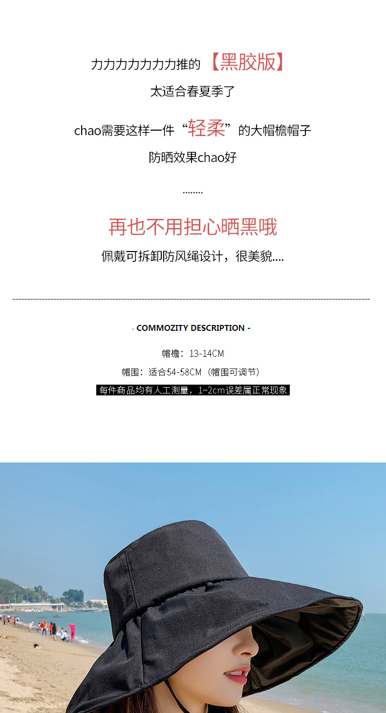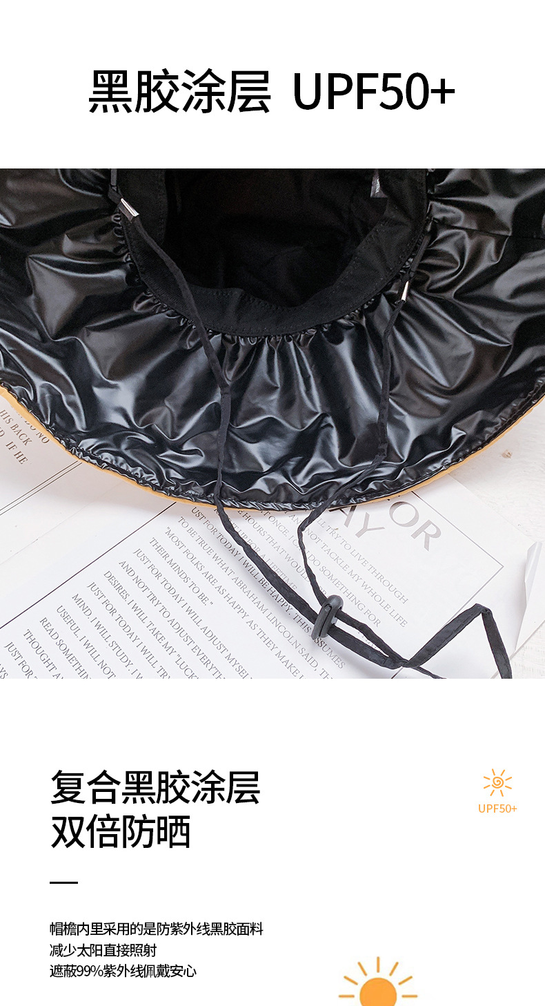 夏季遮阳帽女黑胶新款,百搭全顶遮脸渔夫帽出游太阳帽XYD-黑胶渔夫