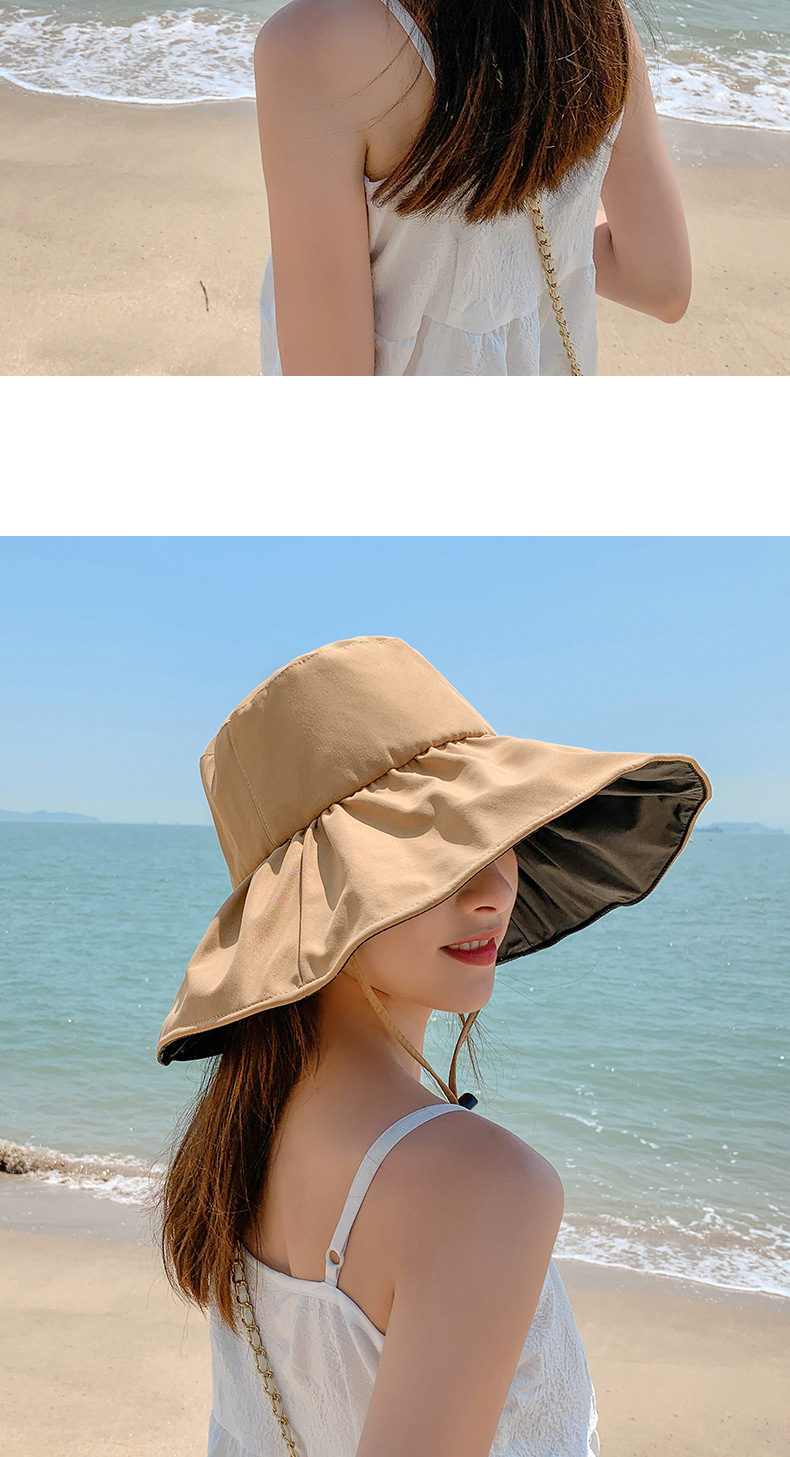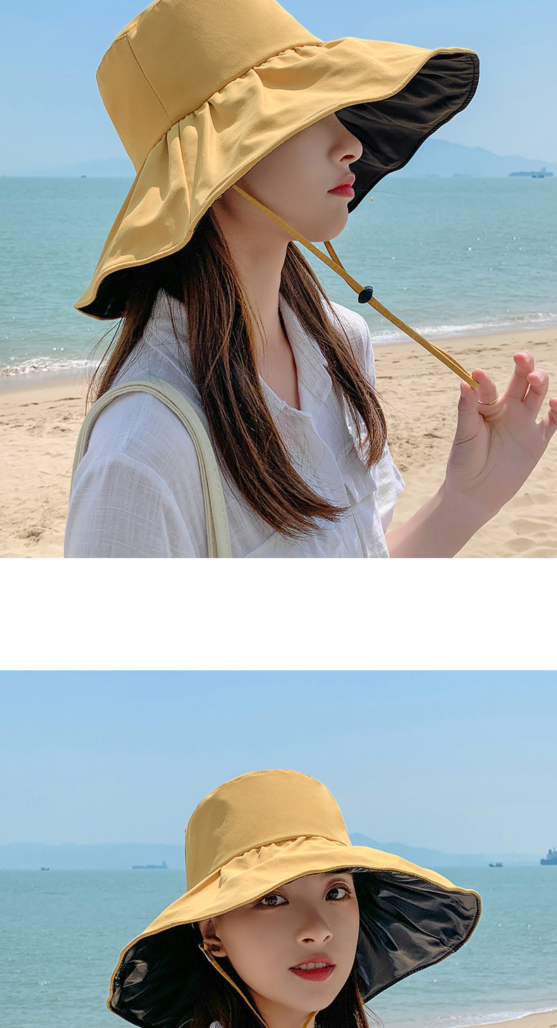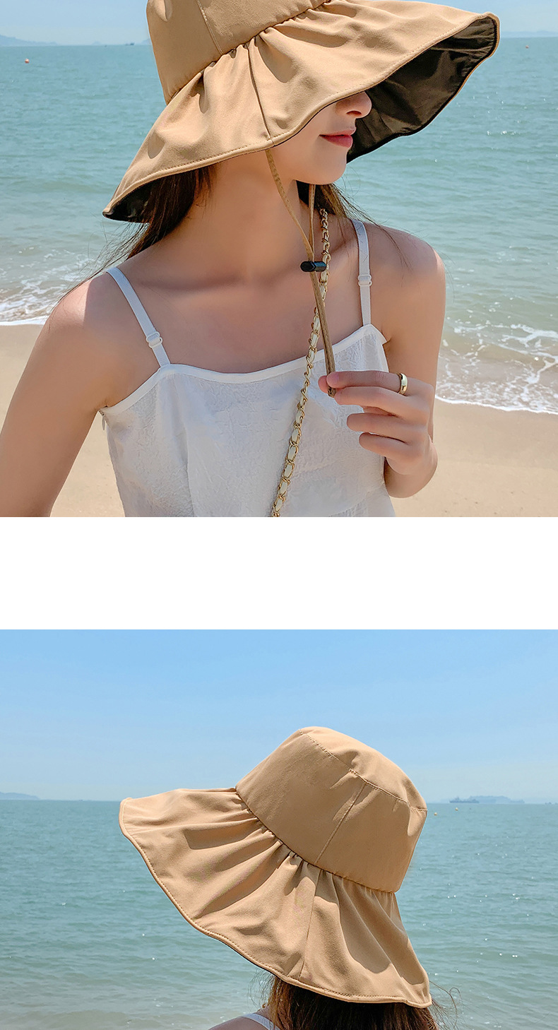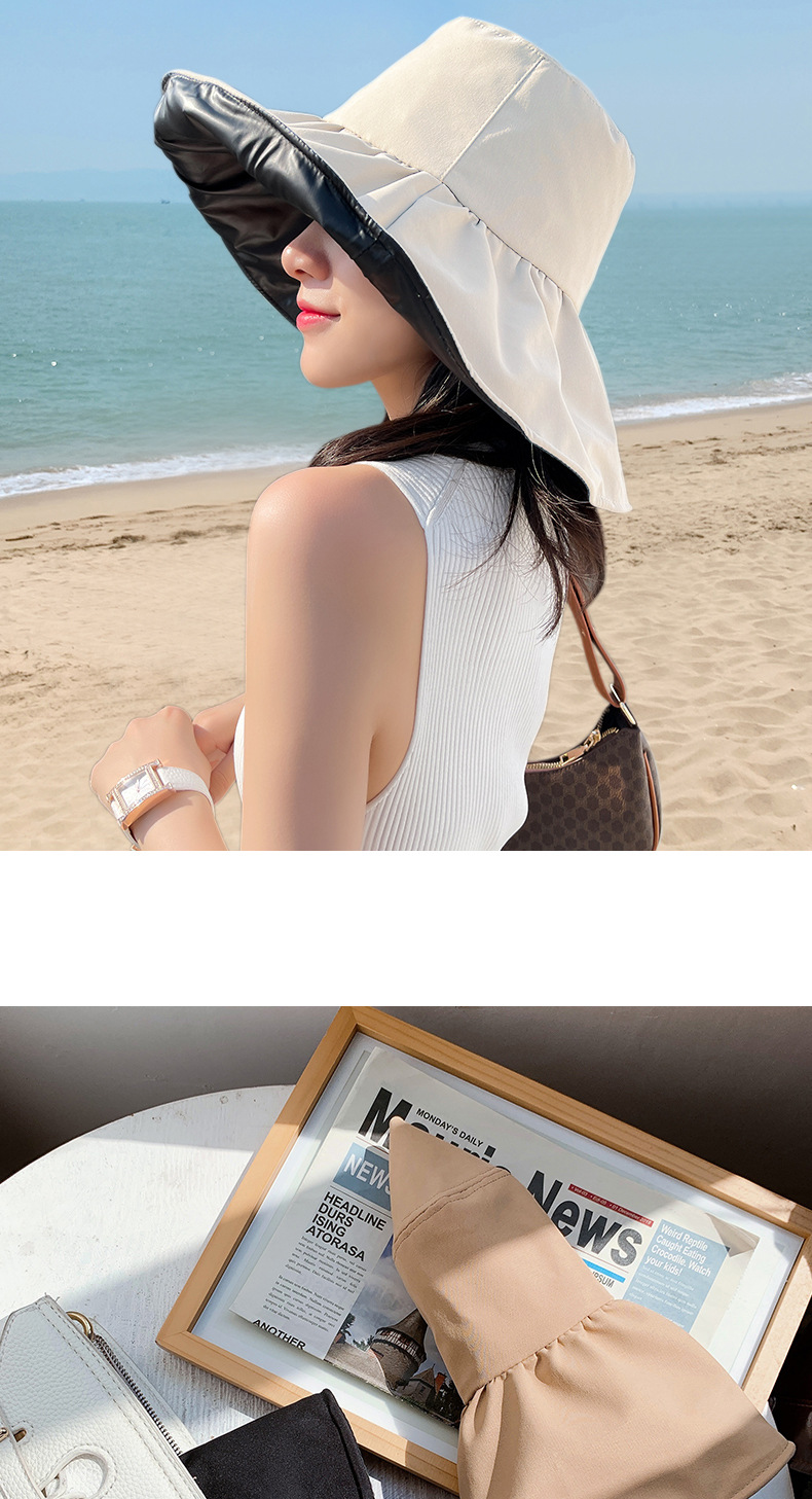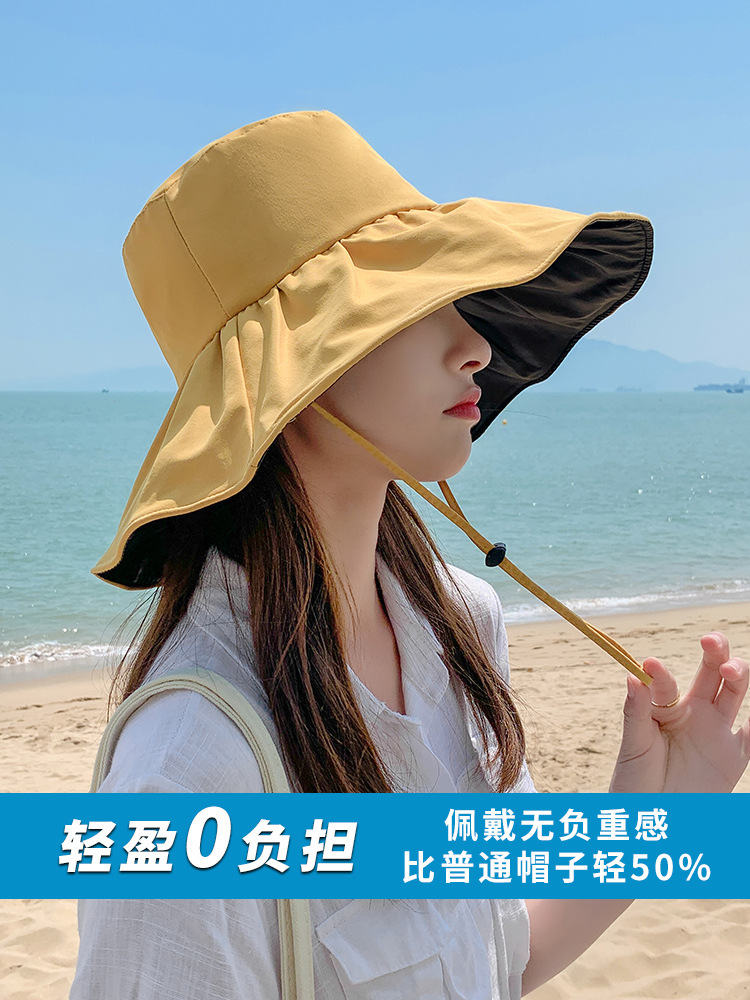 夏季遮阳帽女黑胶新款,百搭全顶遮脸渔夫帽出游太阳帽XYD-黑胶渔夫