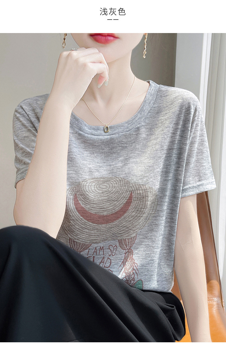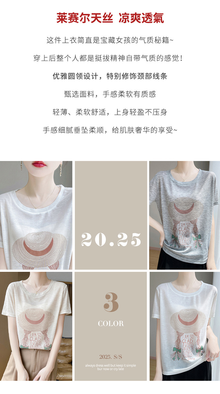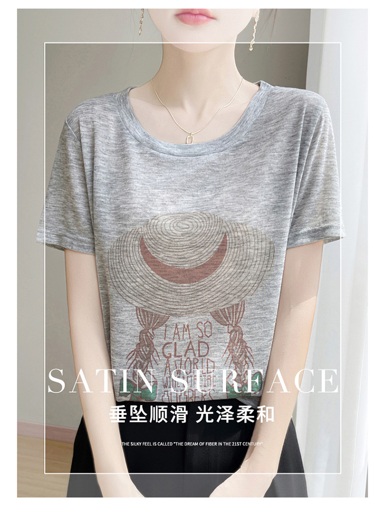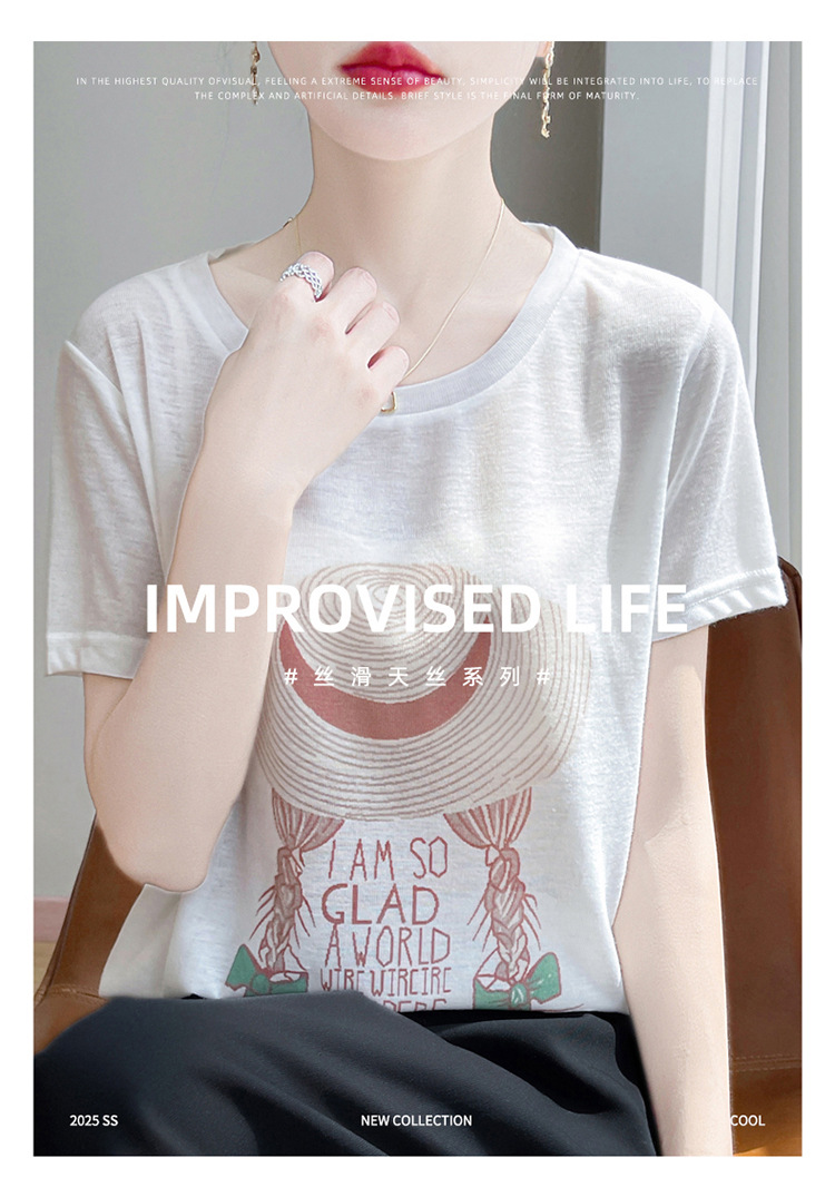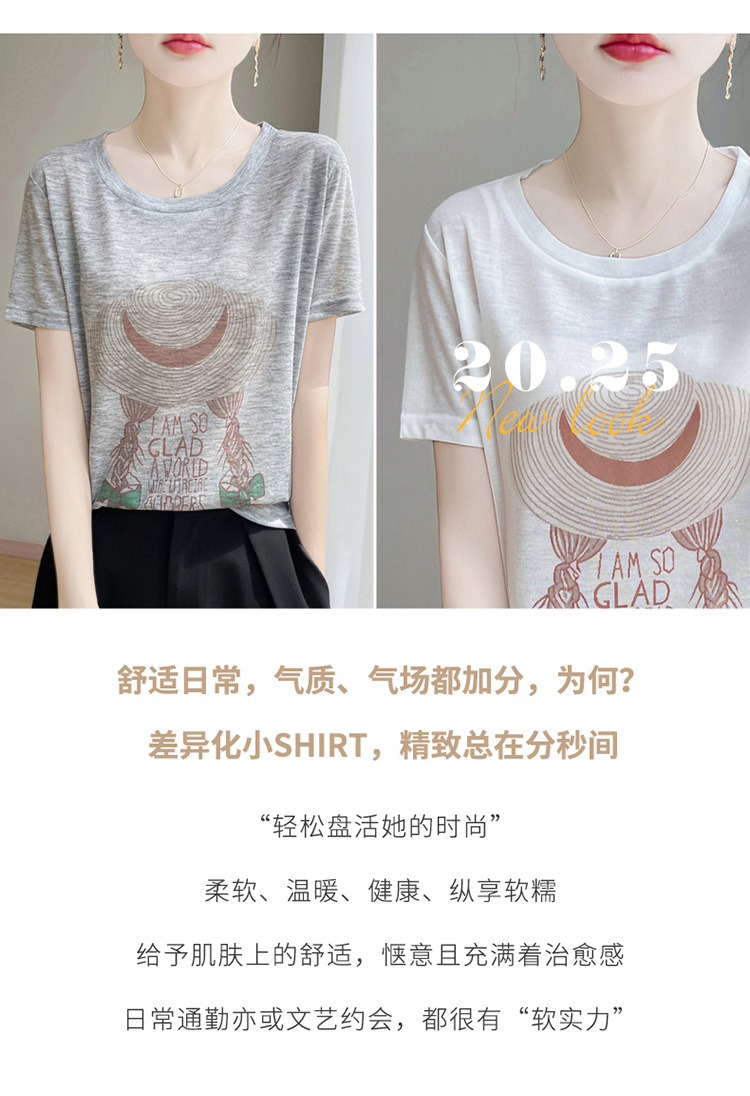 雀说透气天丝新款女装圆领短款时尚T恤薄款打底衫短袖上衣AL277