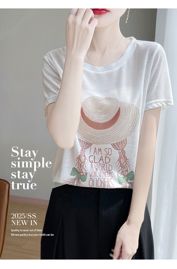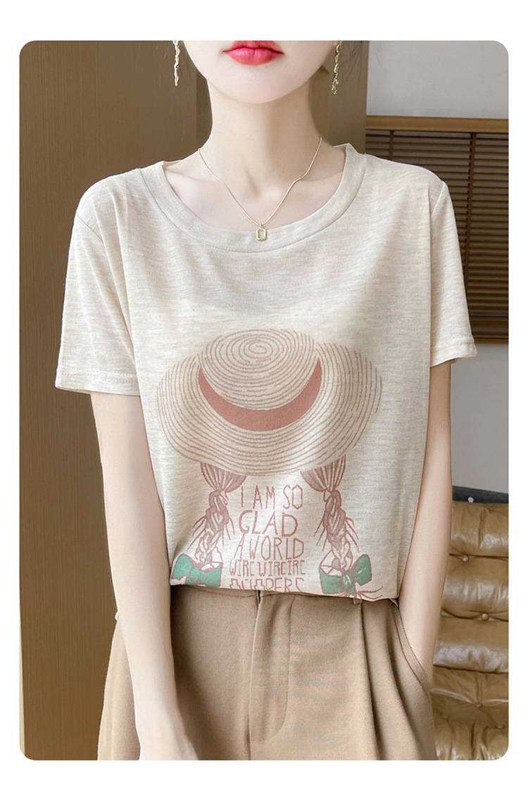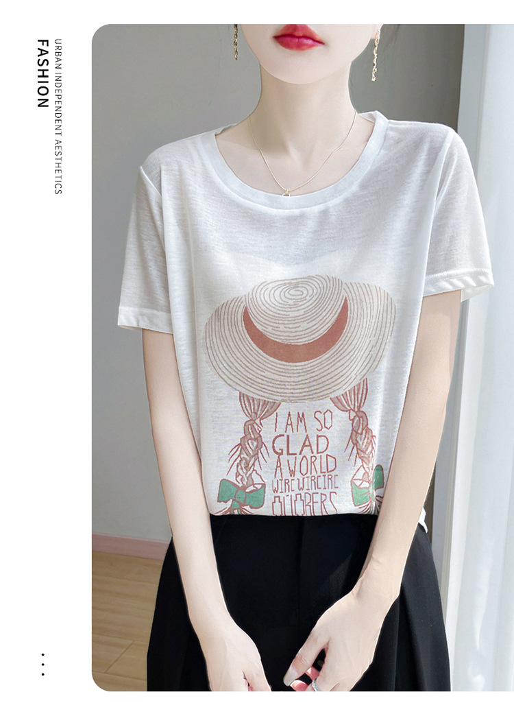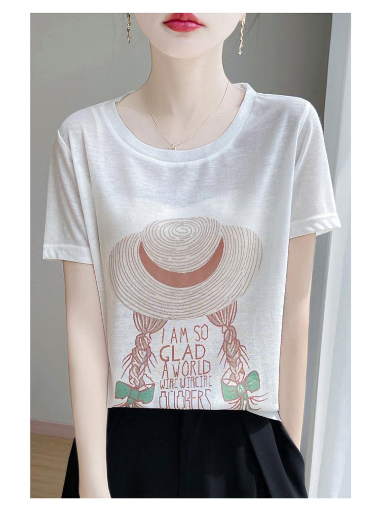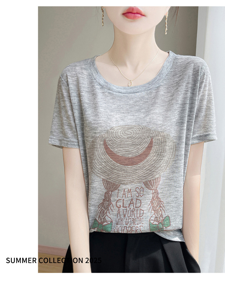 雀说透气天丝新款女装圆领短款时尚T恤薄款打底衫短袖上衣AL277