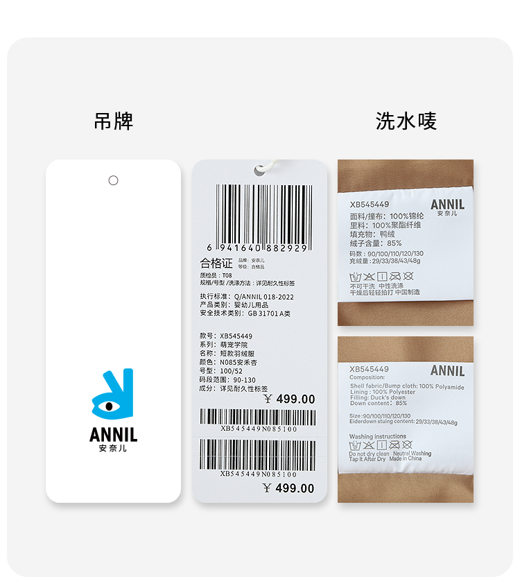 【实体店同款】男童短款羽绒服冬季新款安奈儿童装XB545449