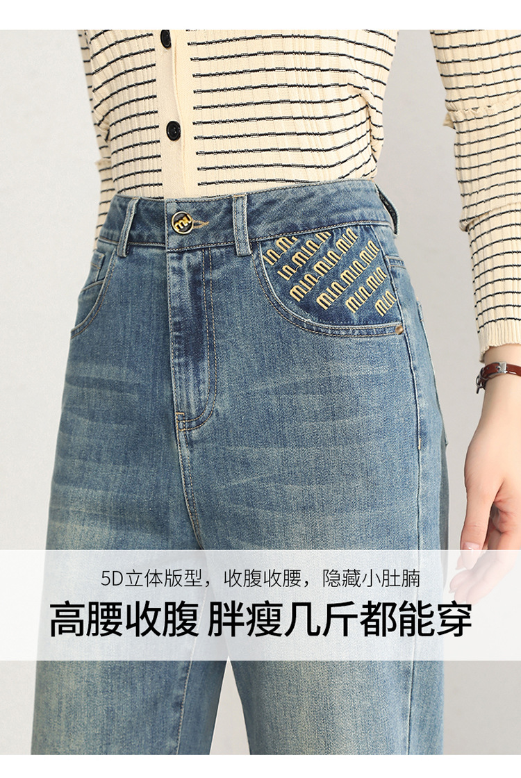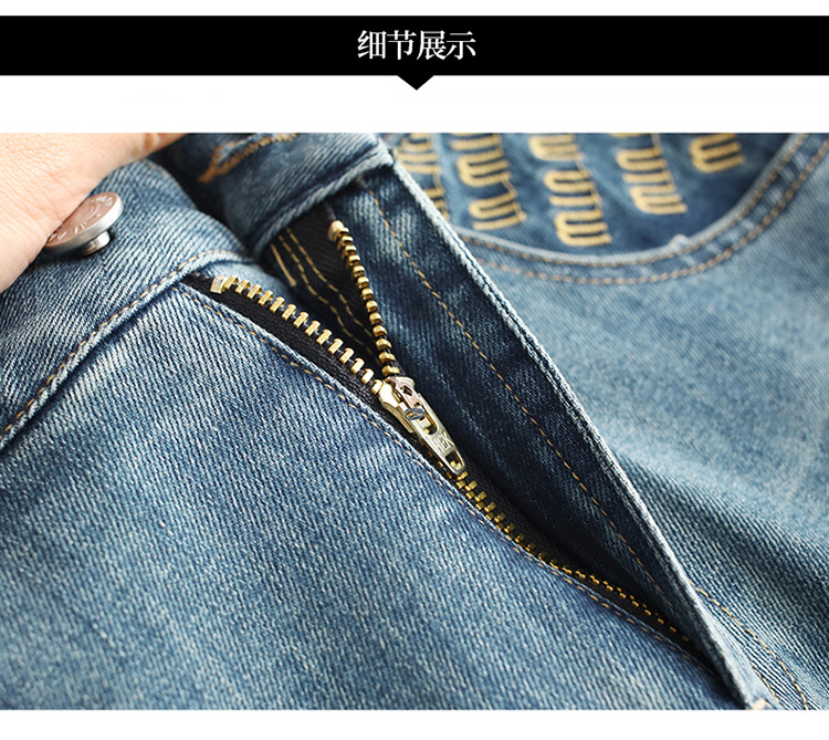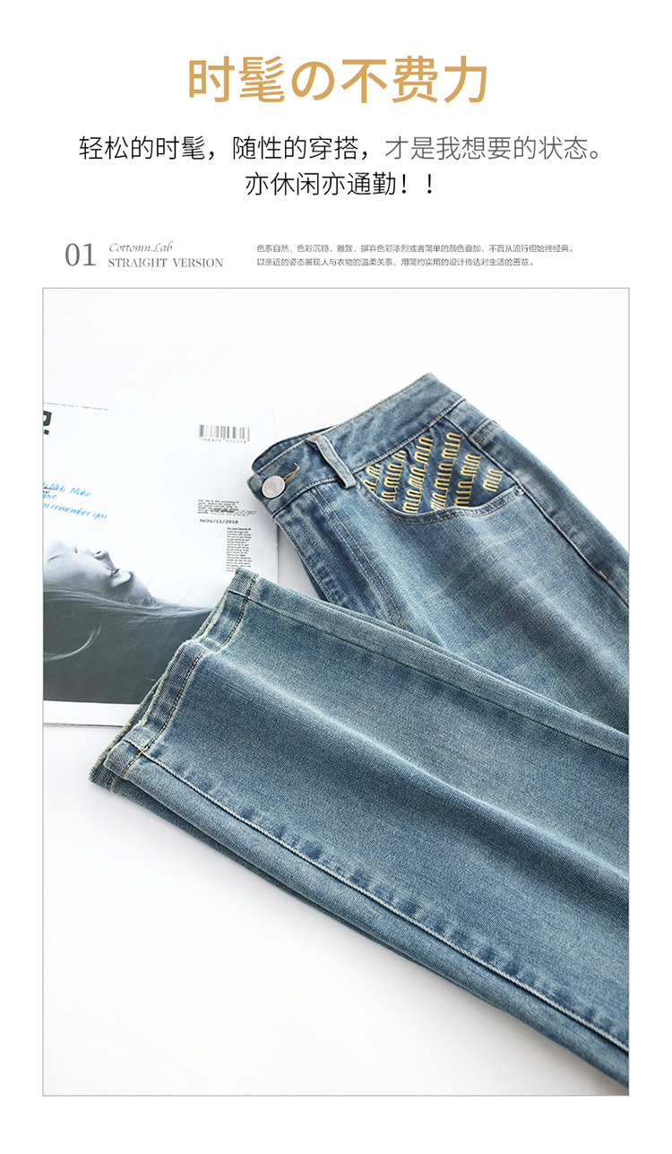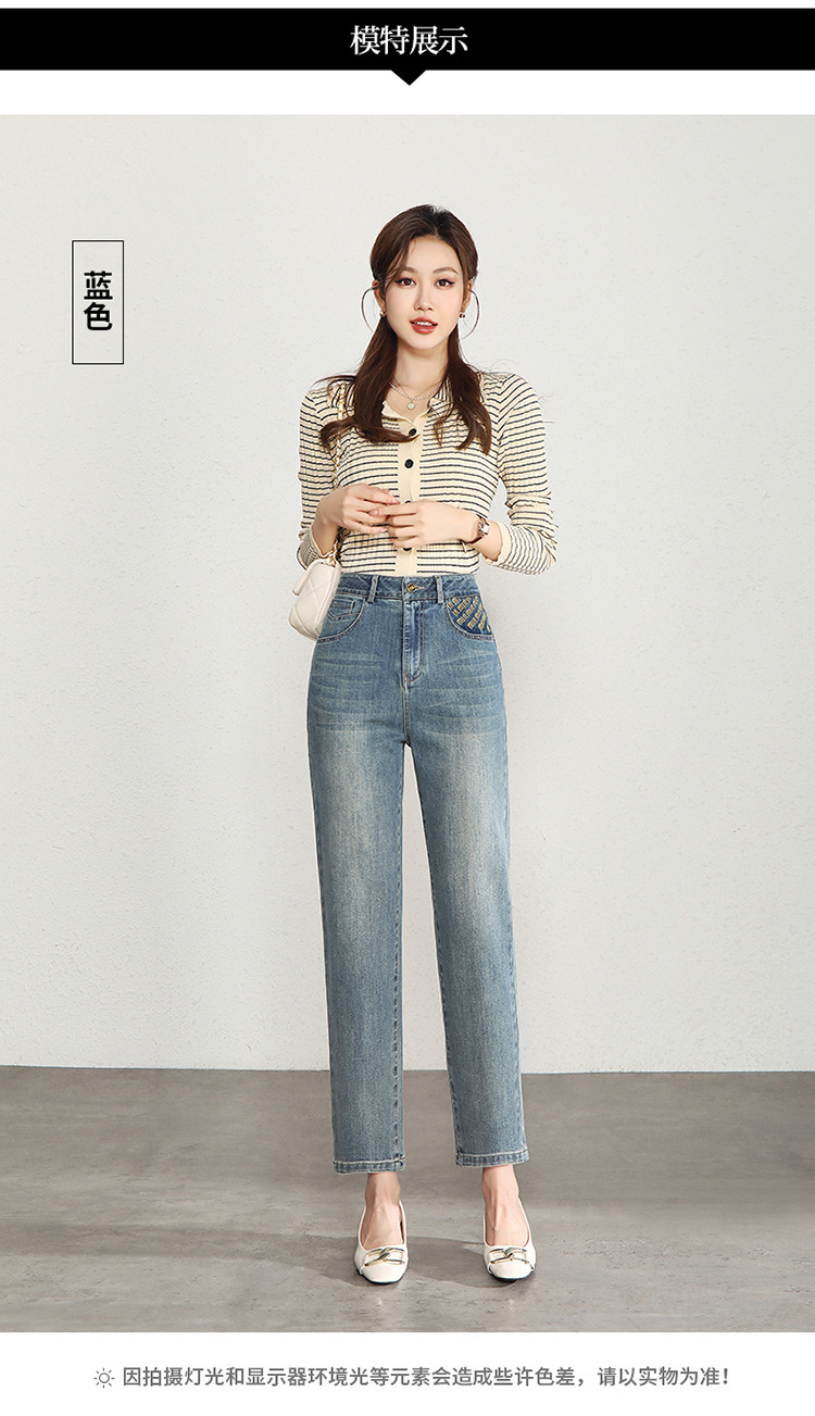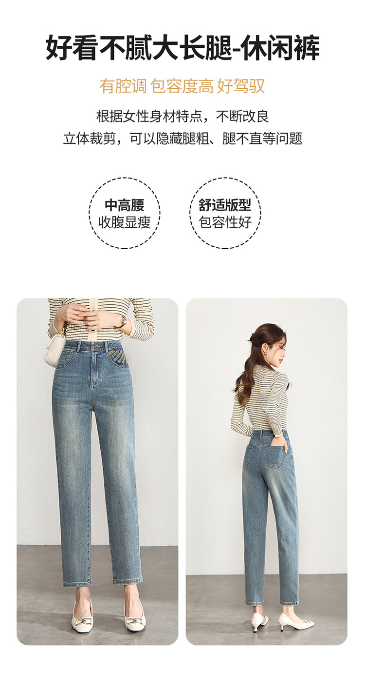 牛仔小筒裤时尚气质,蓝色哈伦裤高腰休闲裤QYM- HWM-8701-Y
