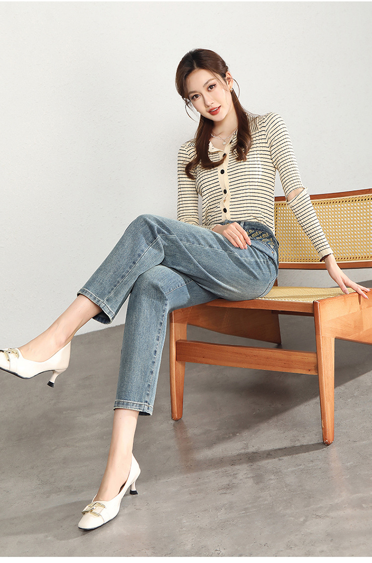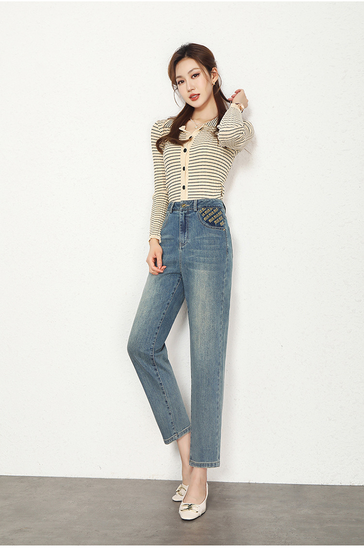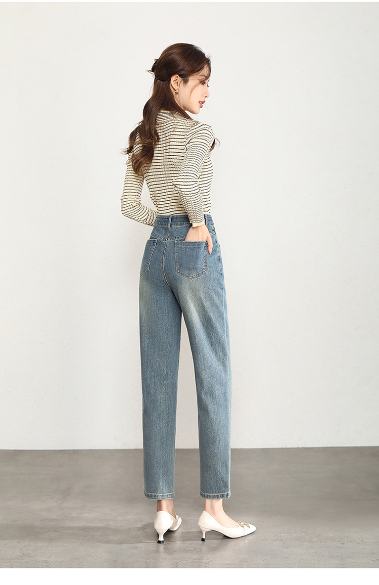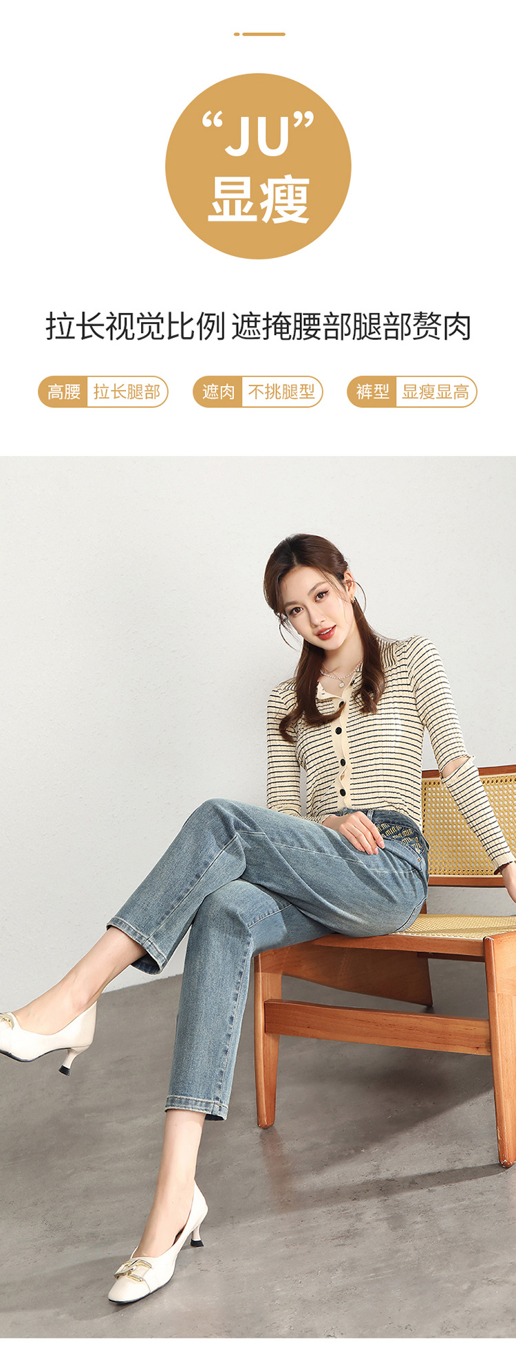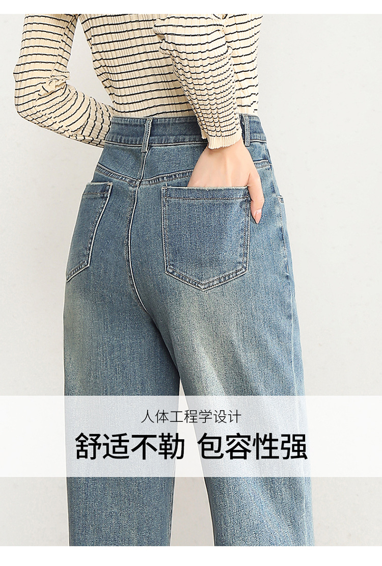 牛仔小筒裤时尚气质,蓝色哈伦裤高腰休闲裤QYM- HWM-8701-Y