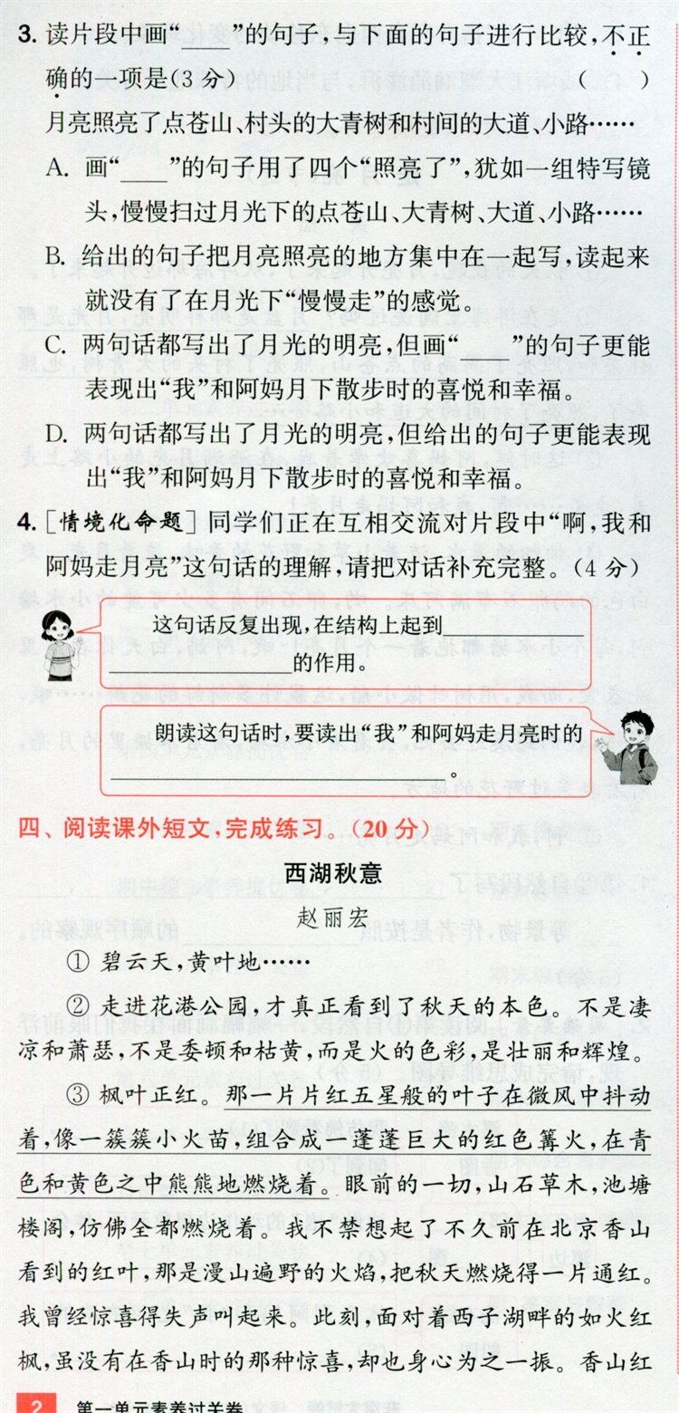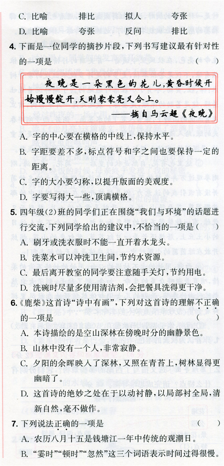 2025秋 非常大试卷 语文 四年级上册 人教版 部编版 小学教辅 测试卷 同步训练 4上 含答案讲解视频 通成学典
