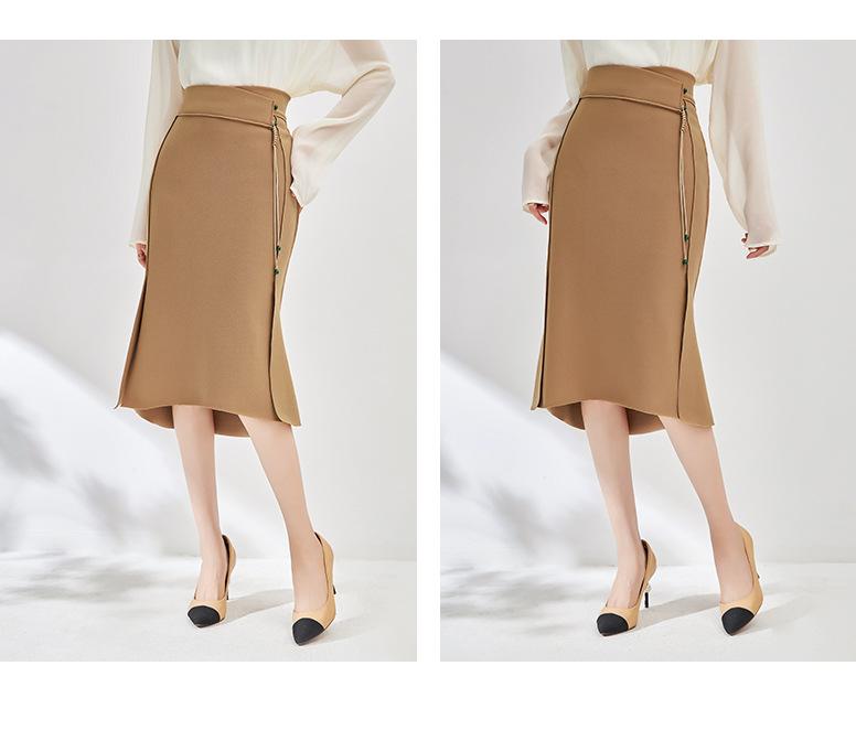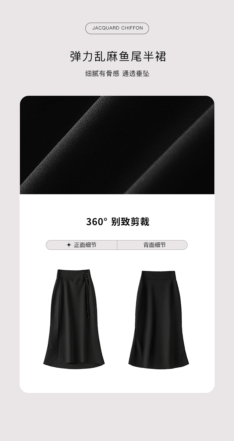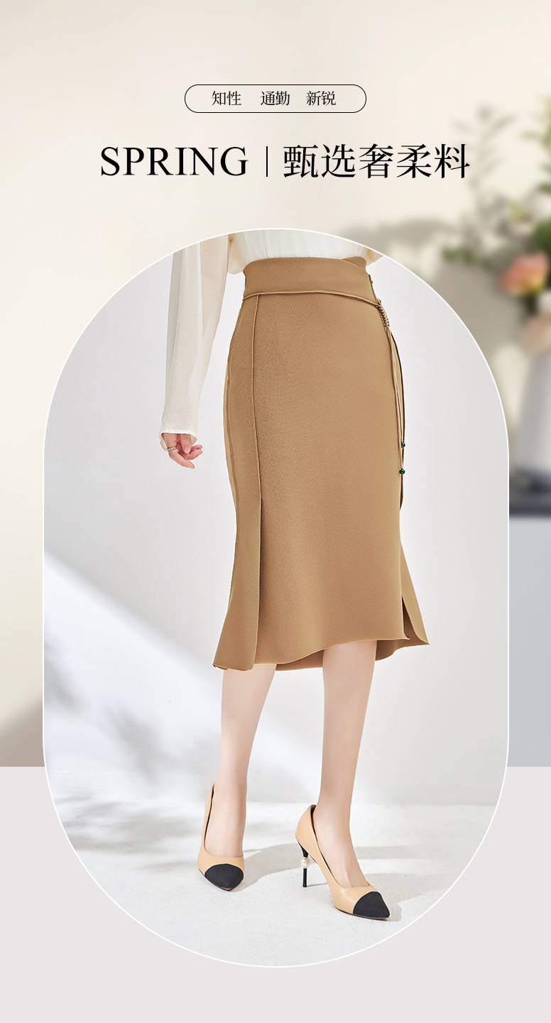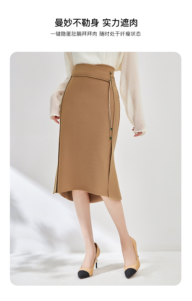 简约时髦,立体裁弹力乱麻轻奢高腰半身裙子WLZD-2405301