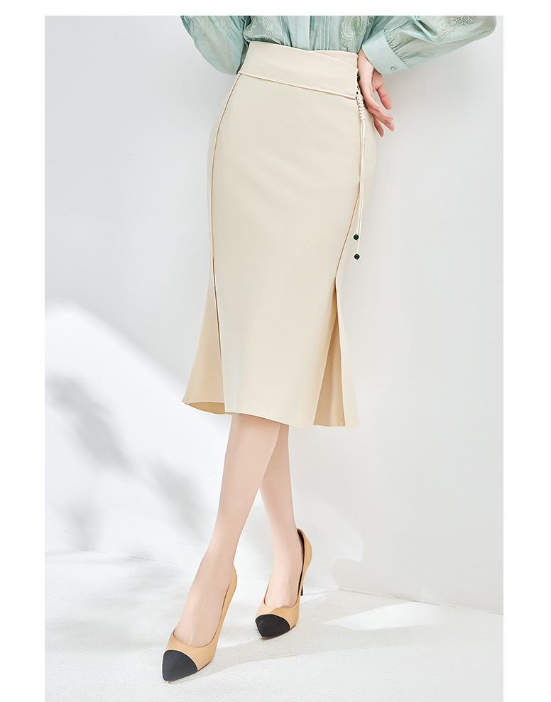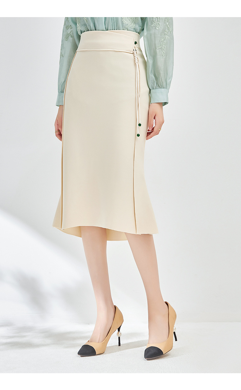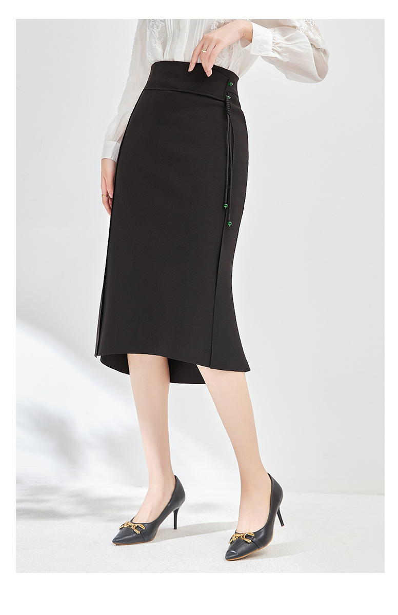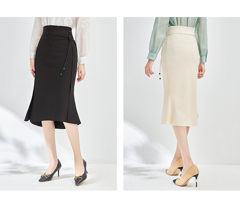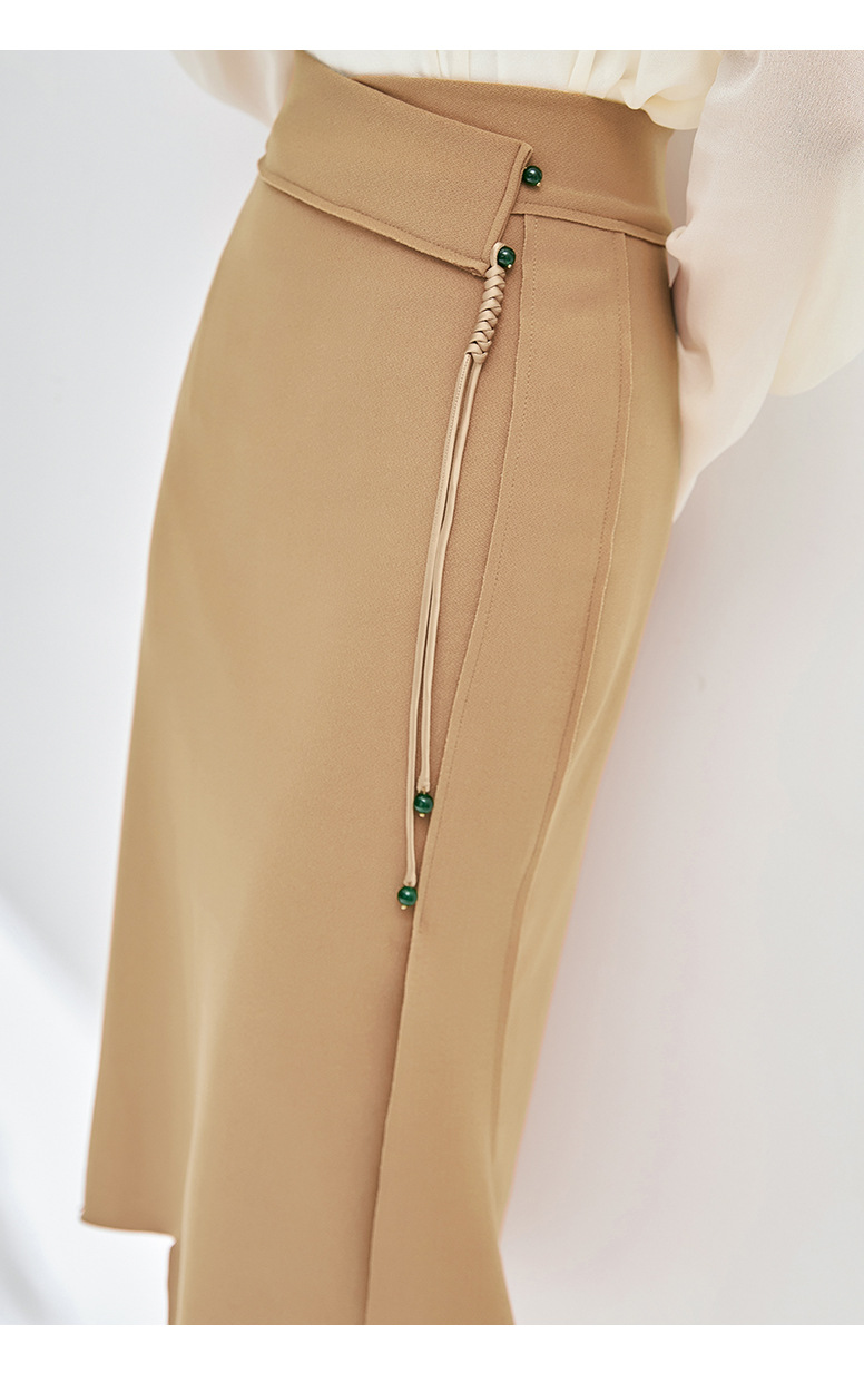 简约时髦,立体裁弹力乱麻轻奢高腰半身裙子WLZD-2405301