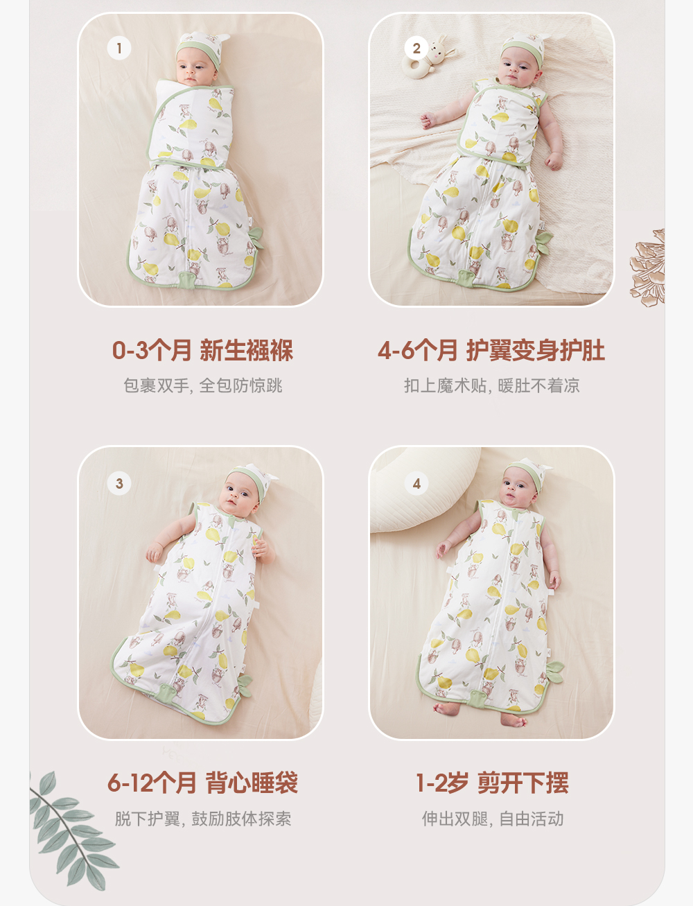 英氏【乳木果】宝宝睡袋恒温春夏防惊跳5A防踢被四季款