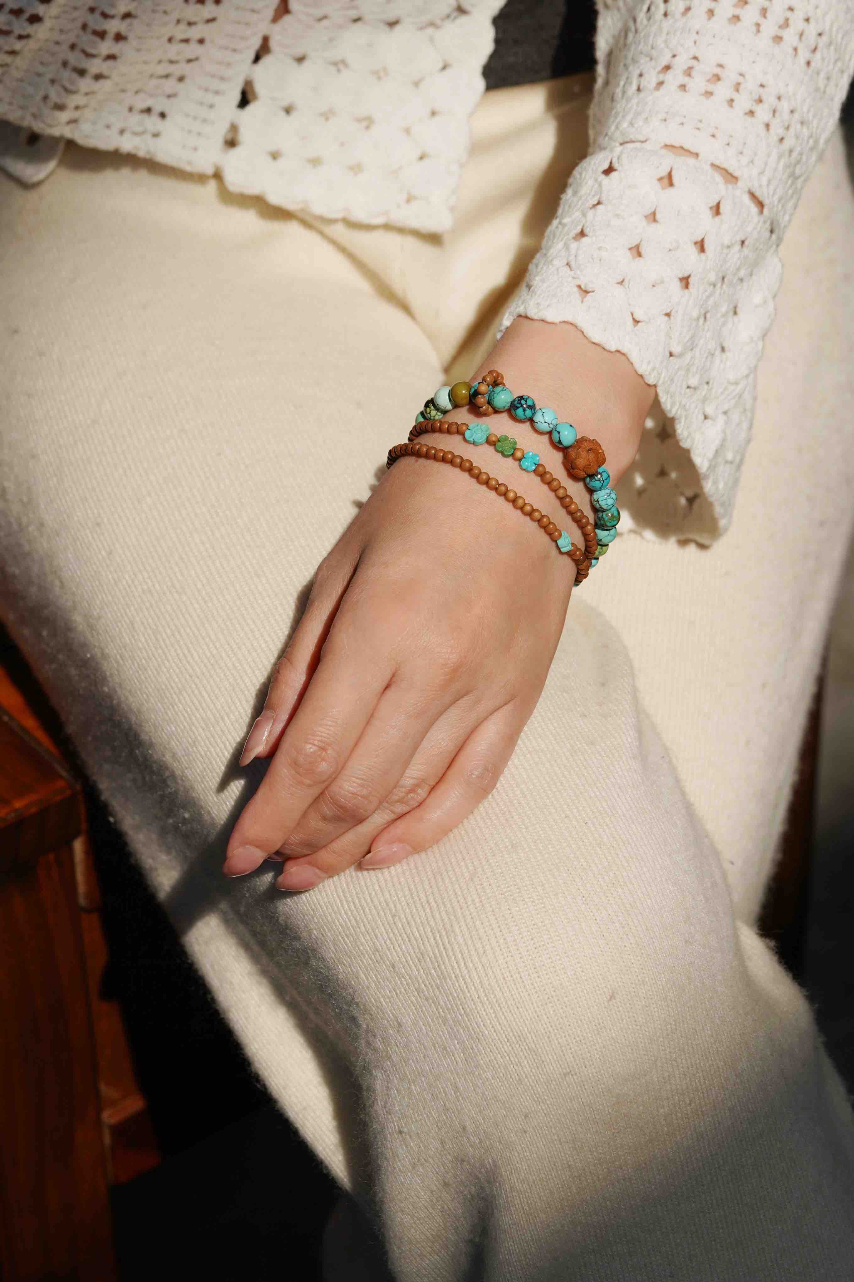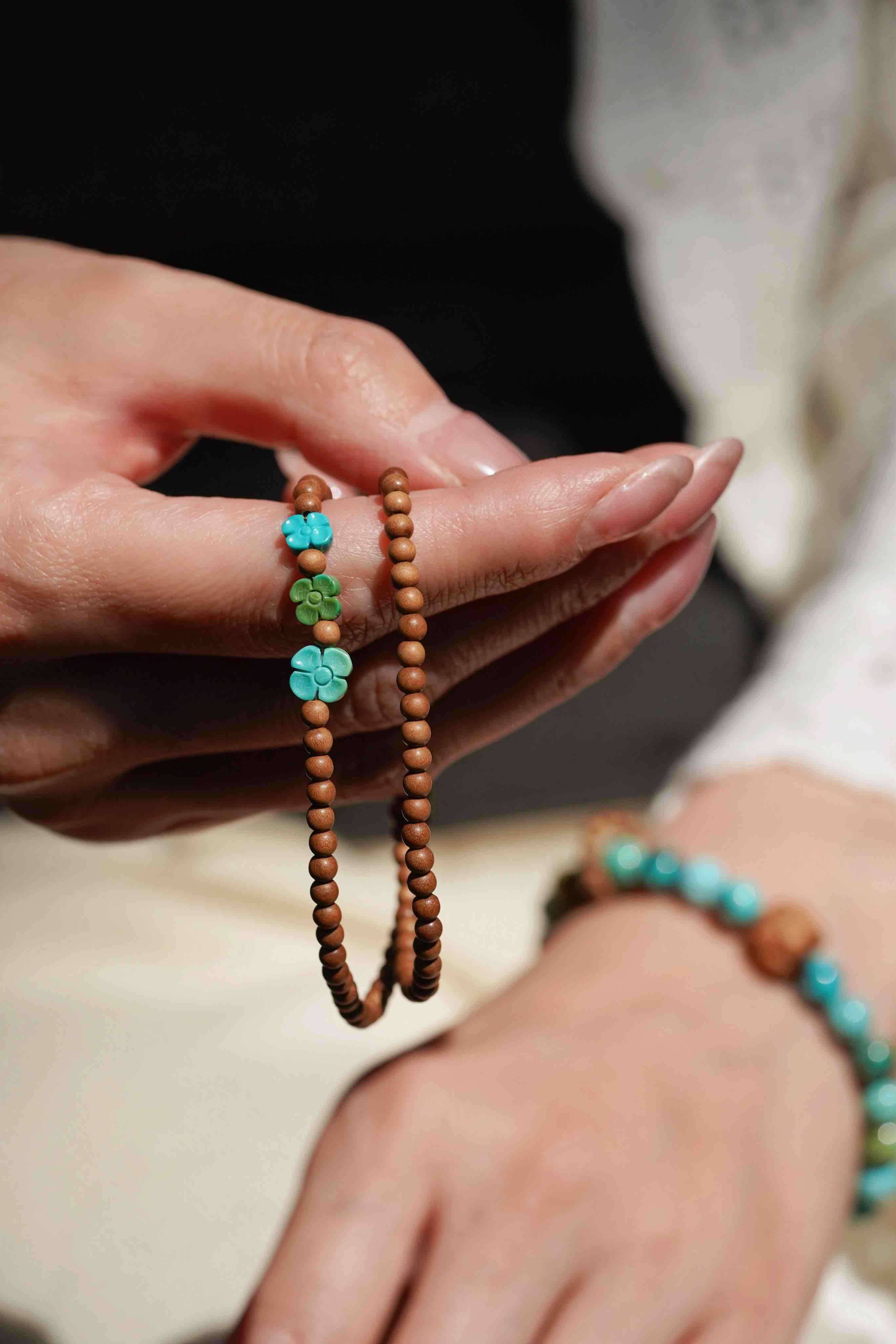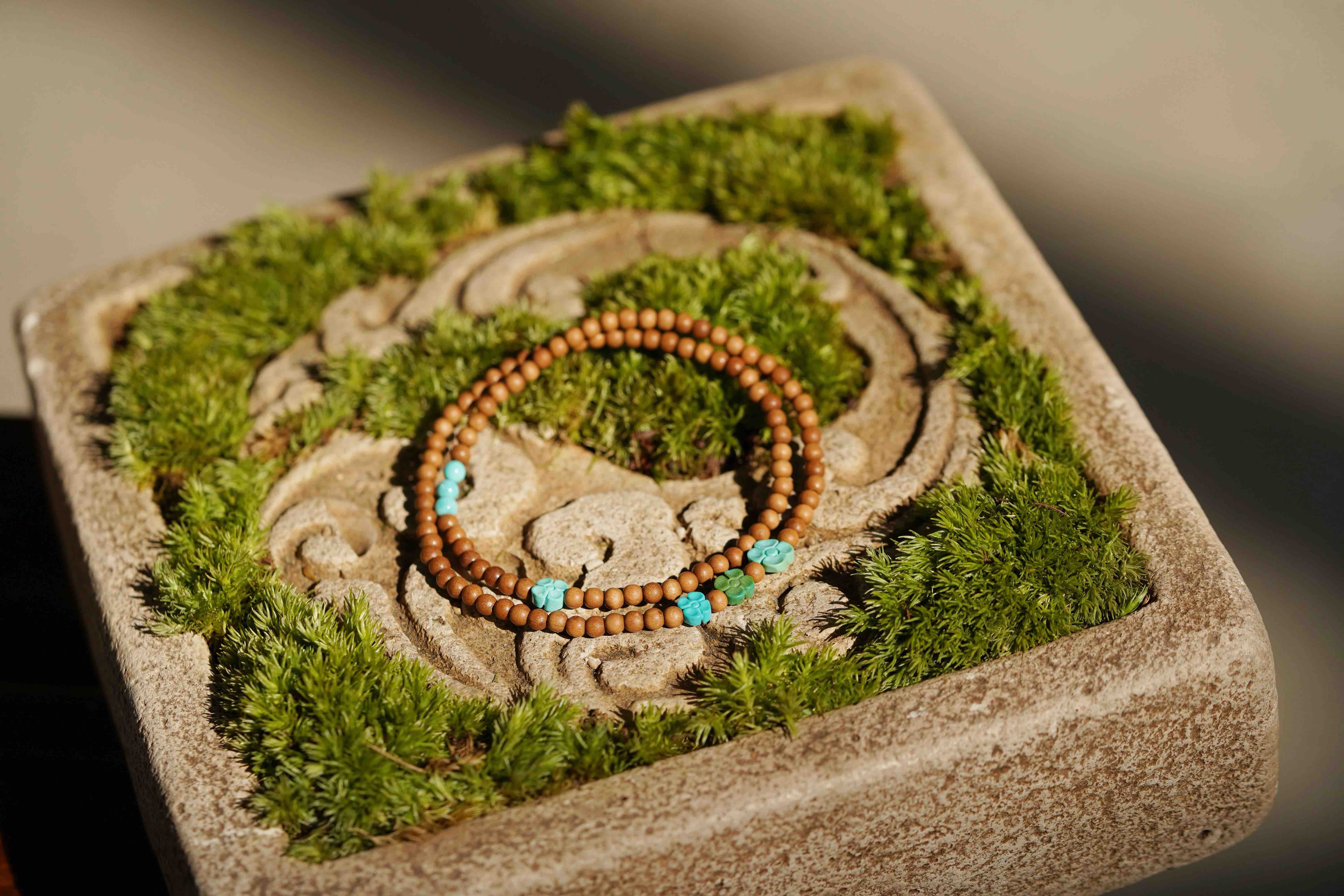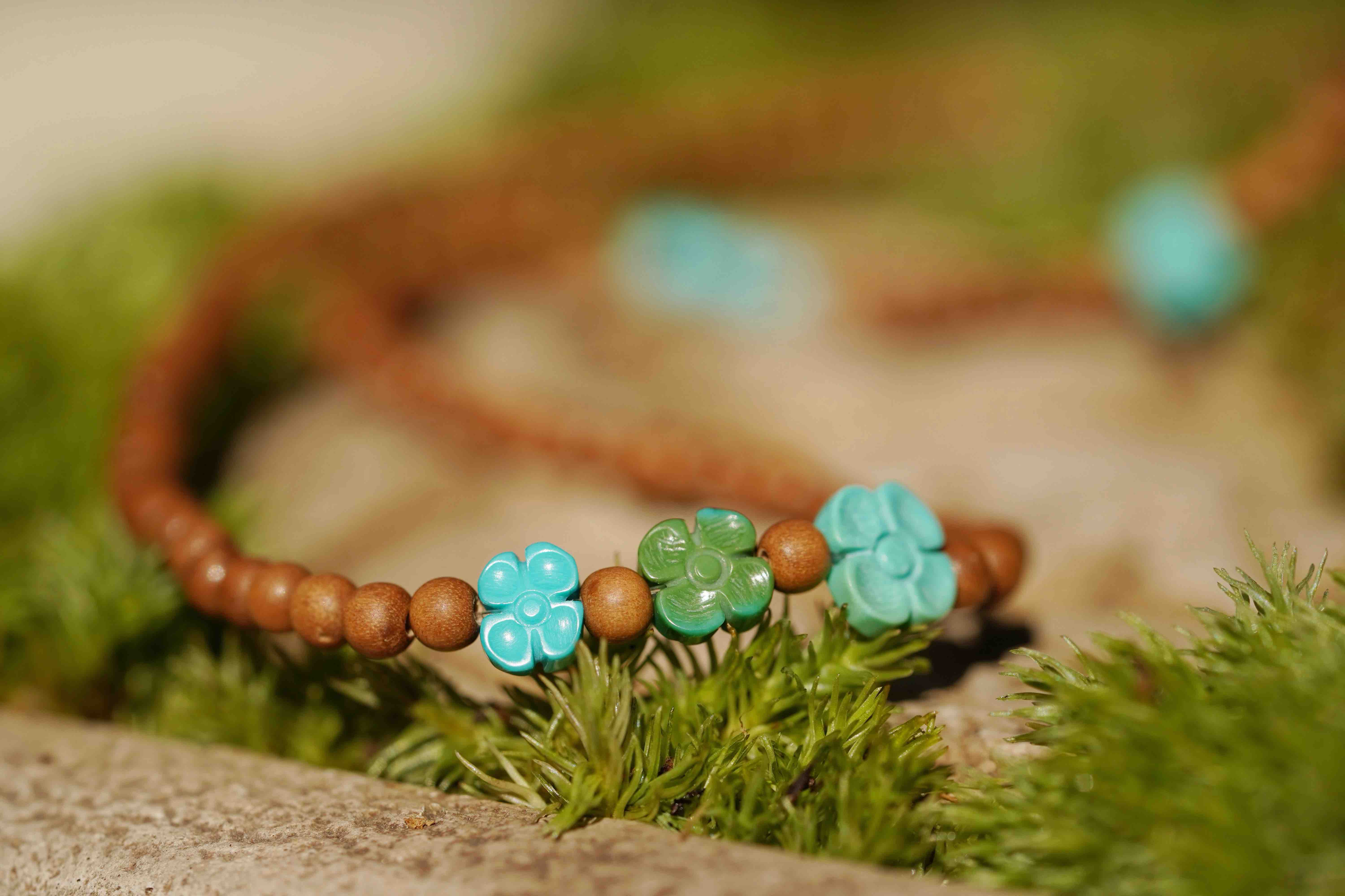绿松小花老山檀手串