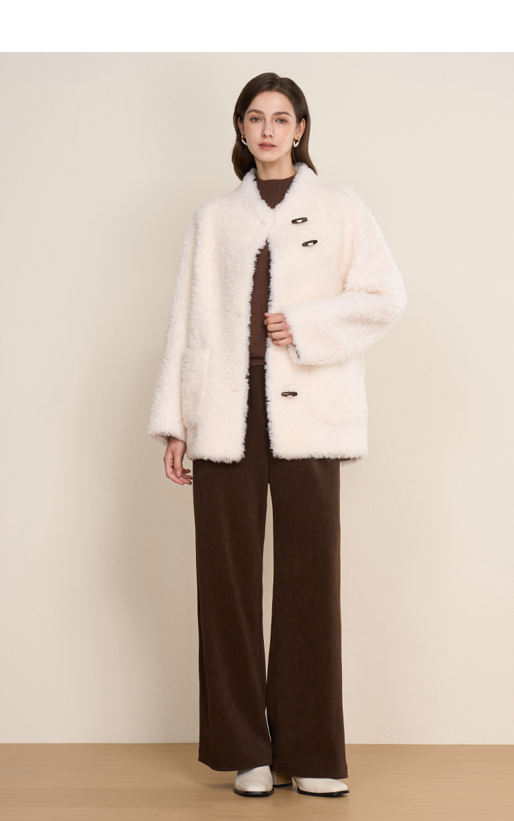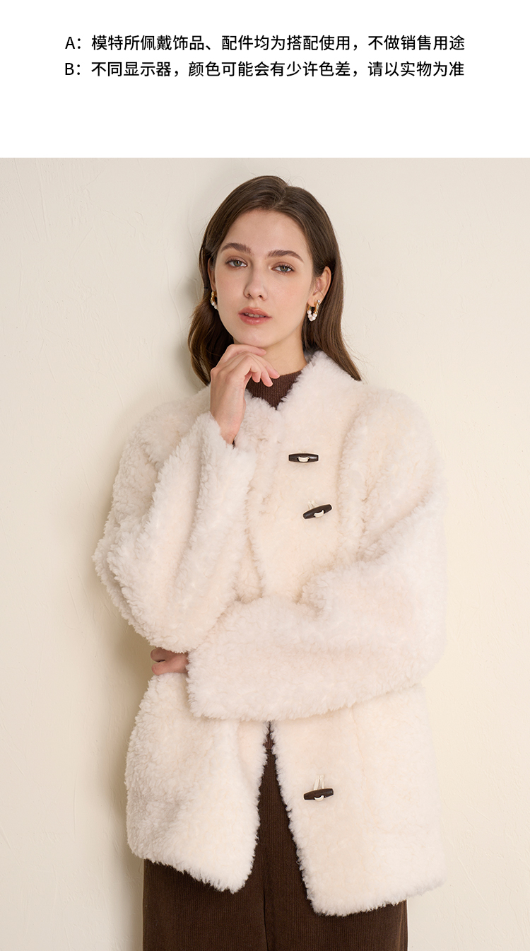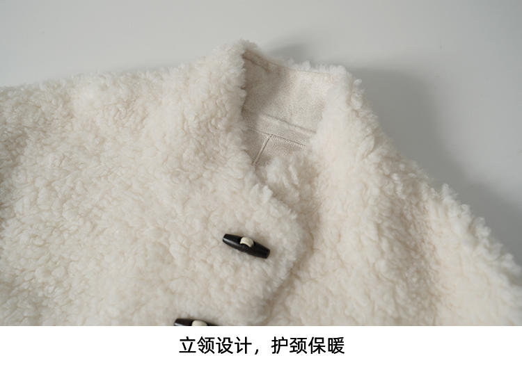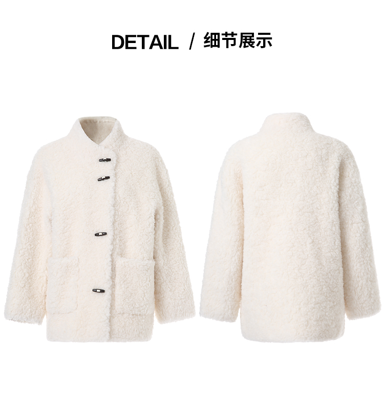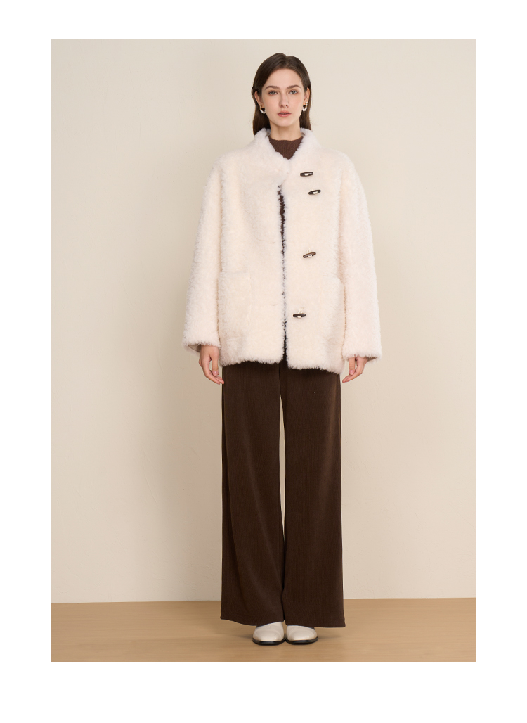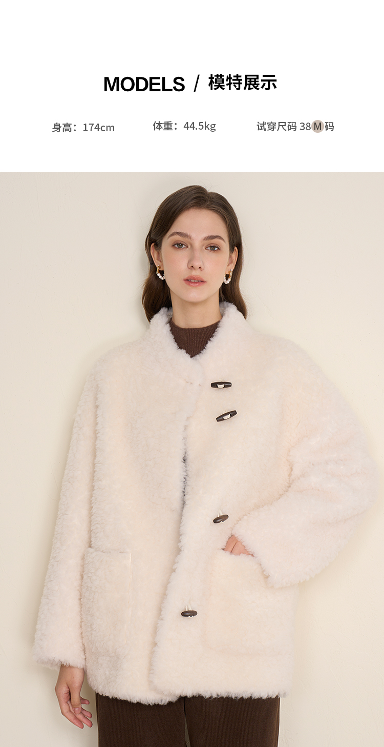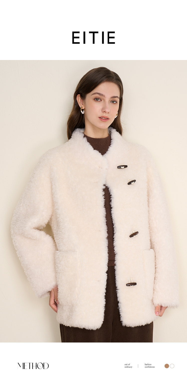EITIE爱特爱立领宽松保暖颗粒绒牛角扣羊毛大衣外套冬季新款D2593923皮衣