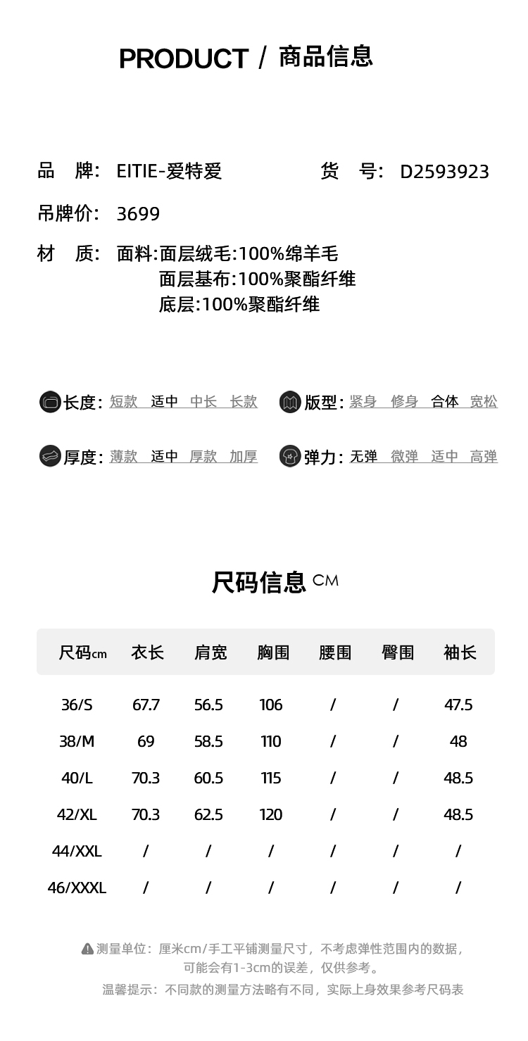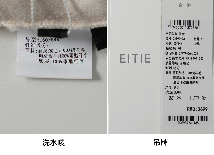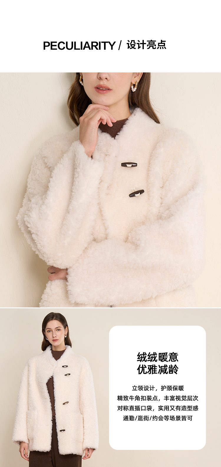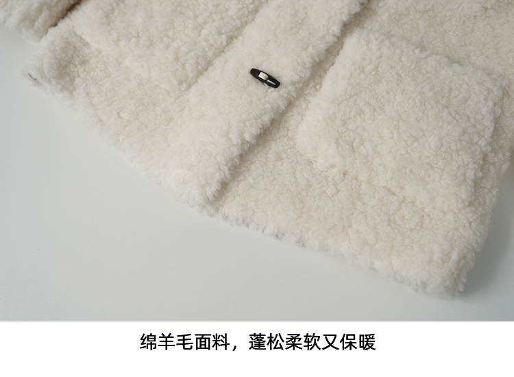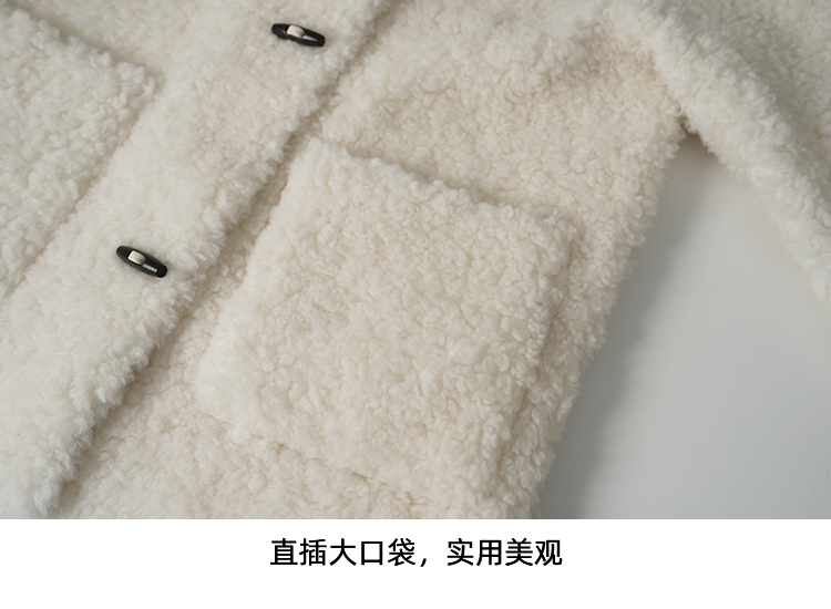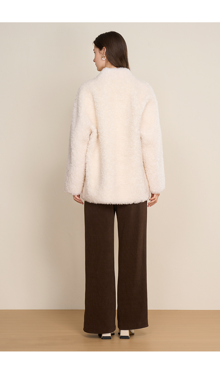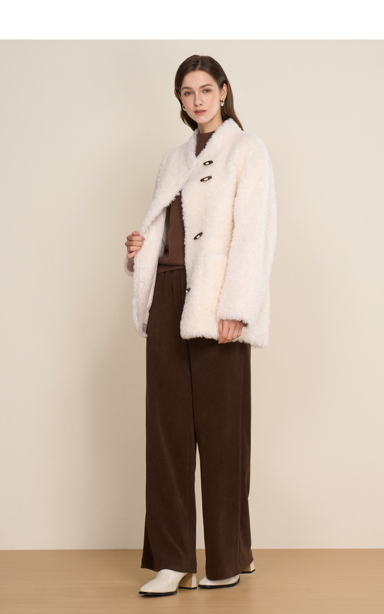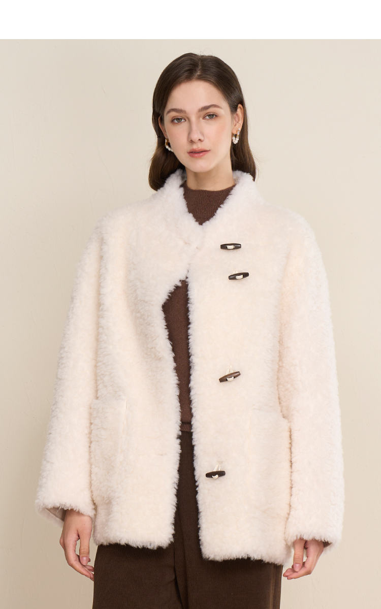 EITIE爱特爱立领宽松保暖颗粒绒牛角扣羊毛大衣外套冬季新款D2593923皮衣