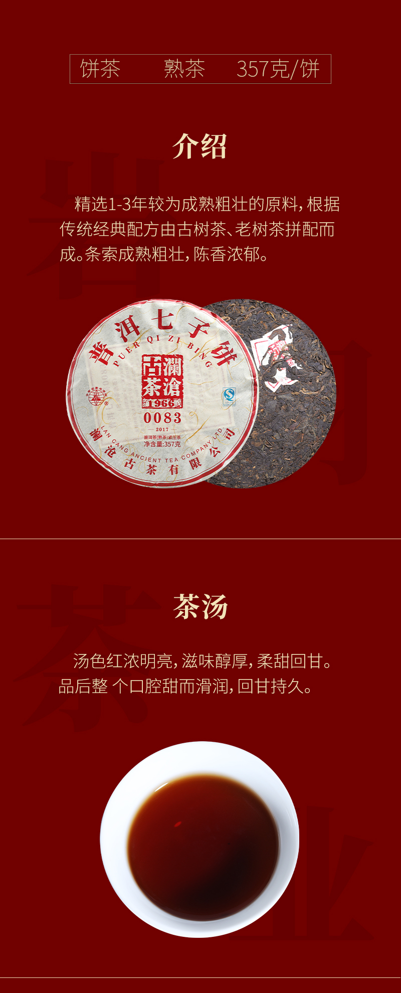 澜沧古茶2017年0083大饼普洱茶熟茶云南茶叶经典口粮茶枣香甜润