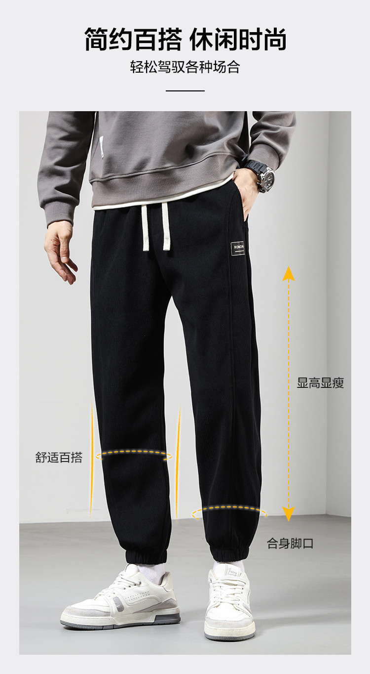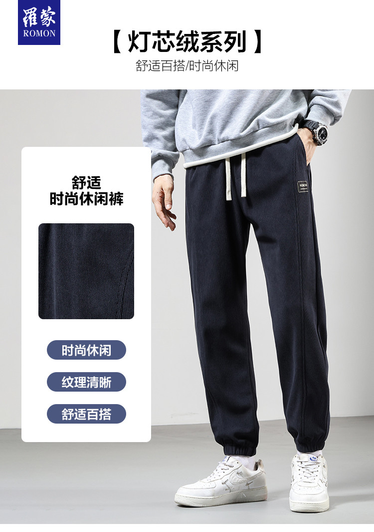 【灯芯绒】罗蒙秋冬季男装富贵条休闲裤男裤时尚拼接裤子男士休闲裤长裤男卫裤男