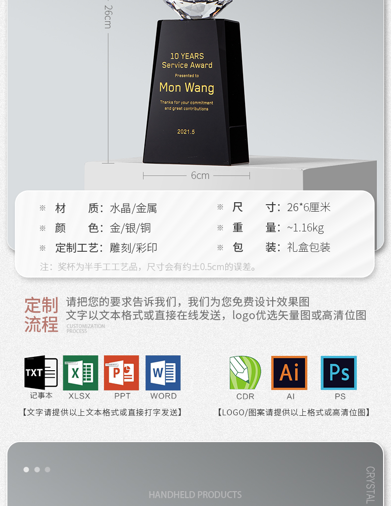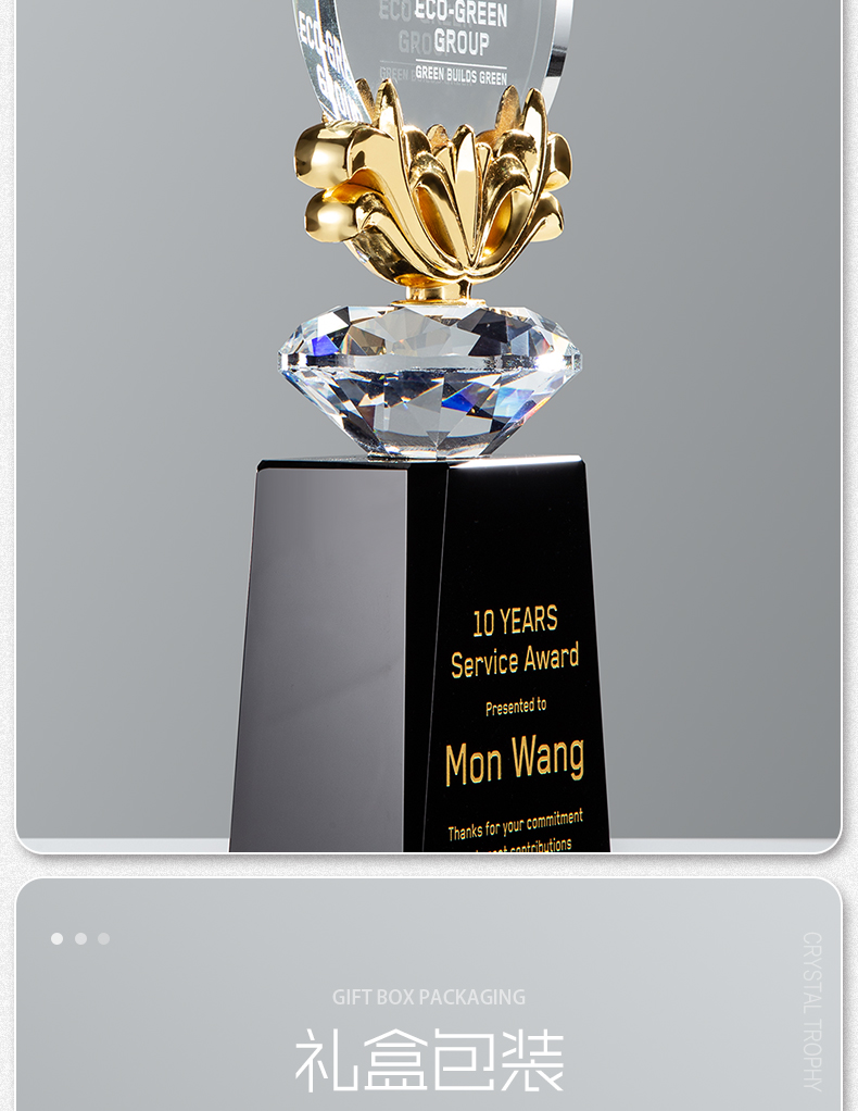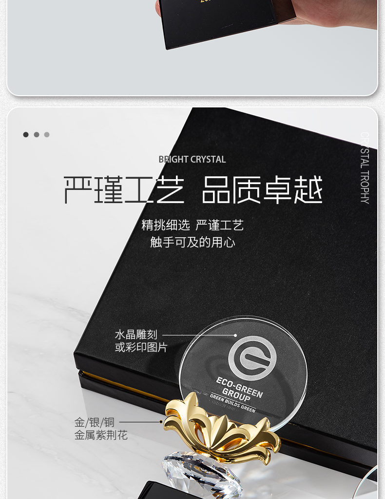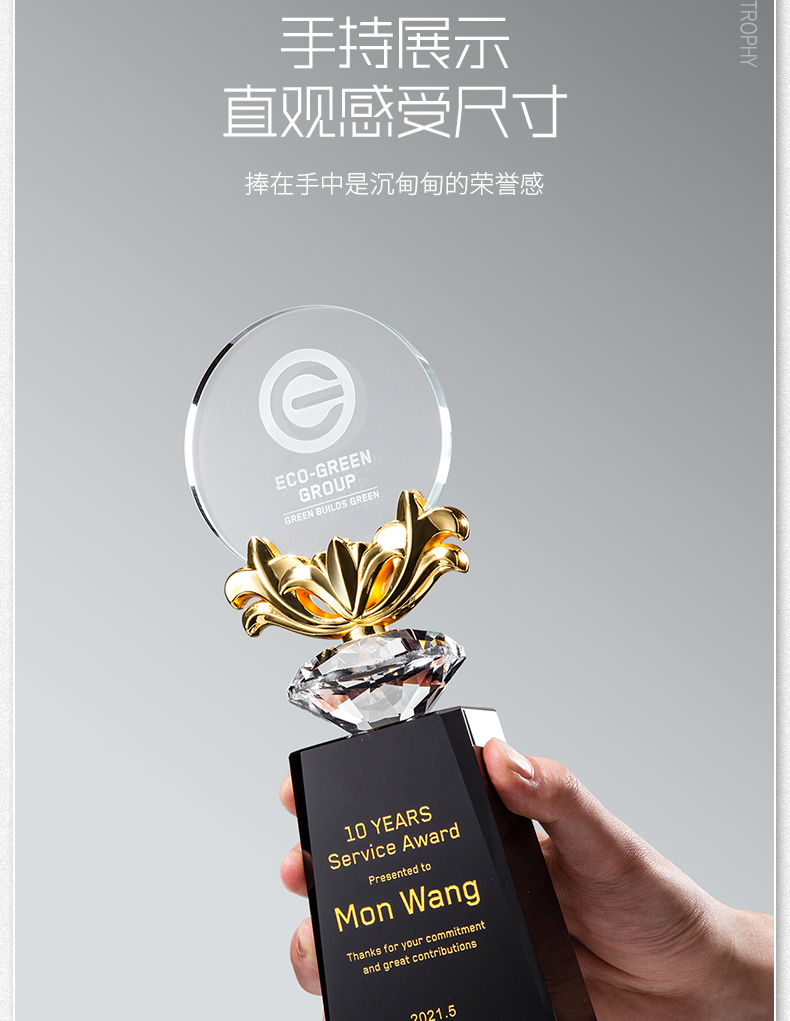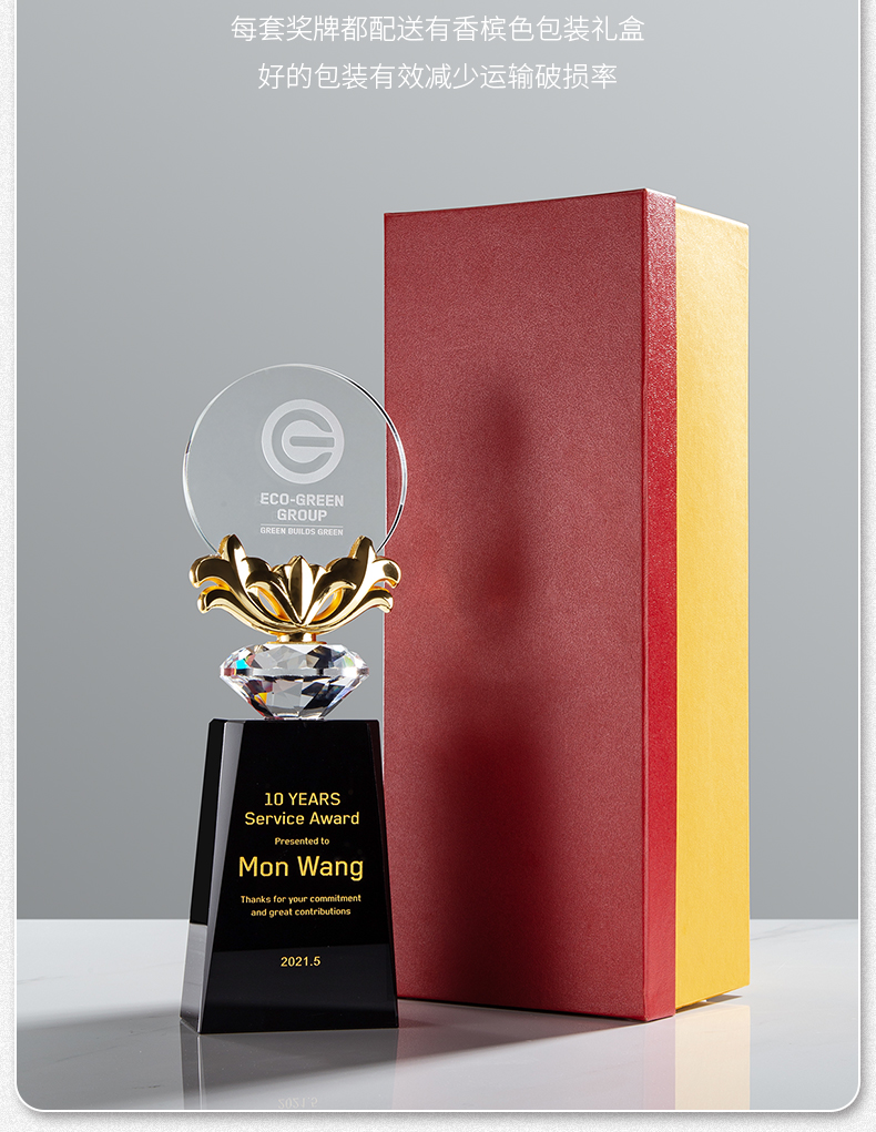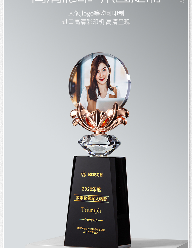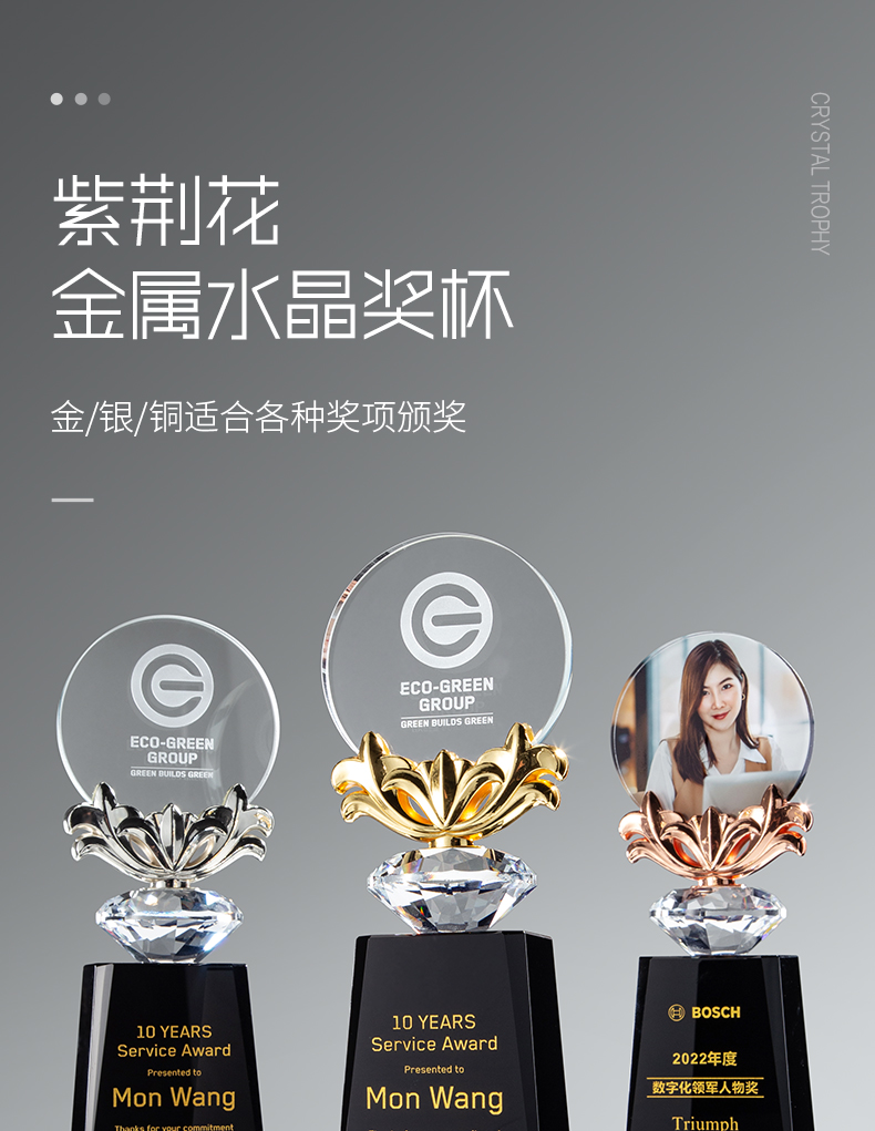 紫荆花创意水晶奖杯定制定做企业入职纪念奖牌照片金银铜冠军订制
