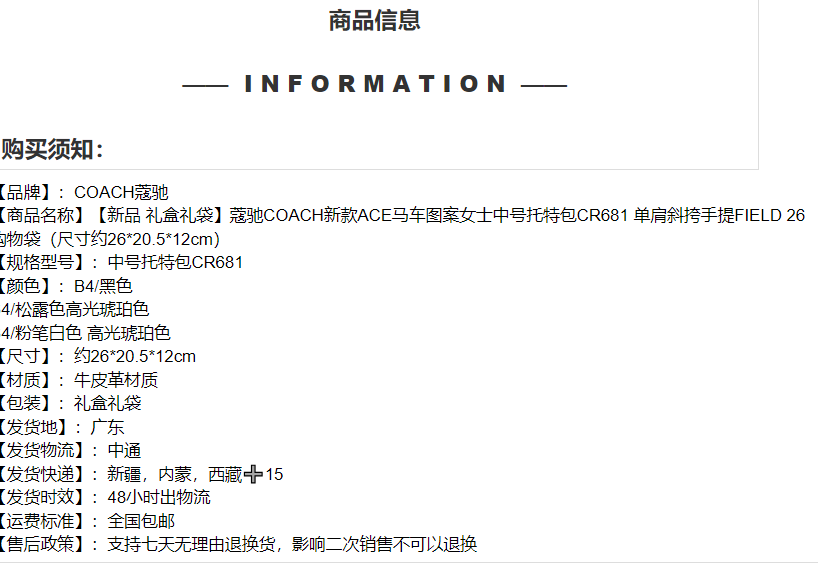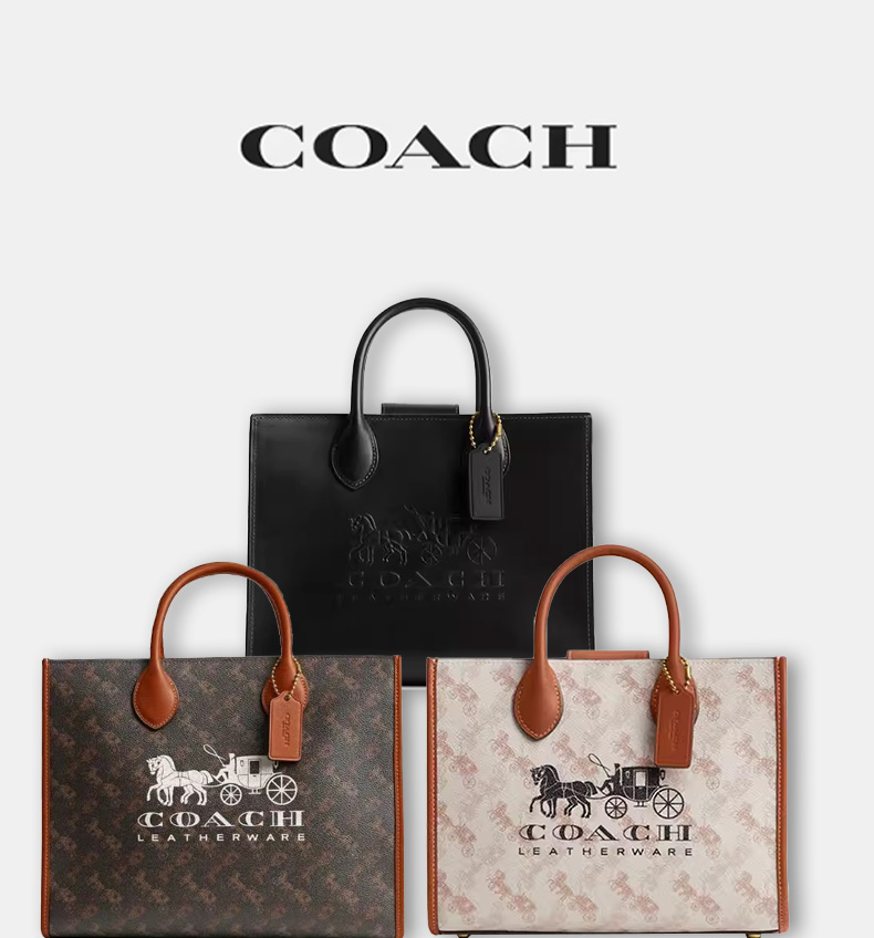 【礼盒礼袋】【品牌授权】蔻驰COACH新款ACE马车图案女士奥莱中号托特包CR681 单肩斜挎手提FIELD 26购物袋(尺寸约2620.512cm)