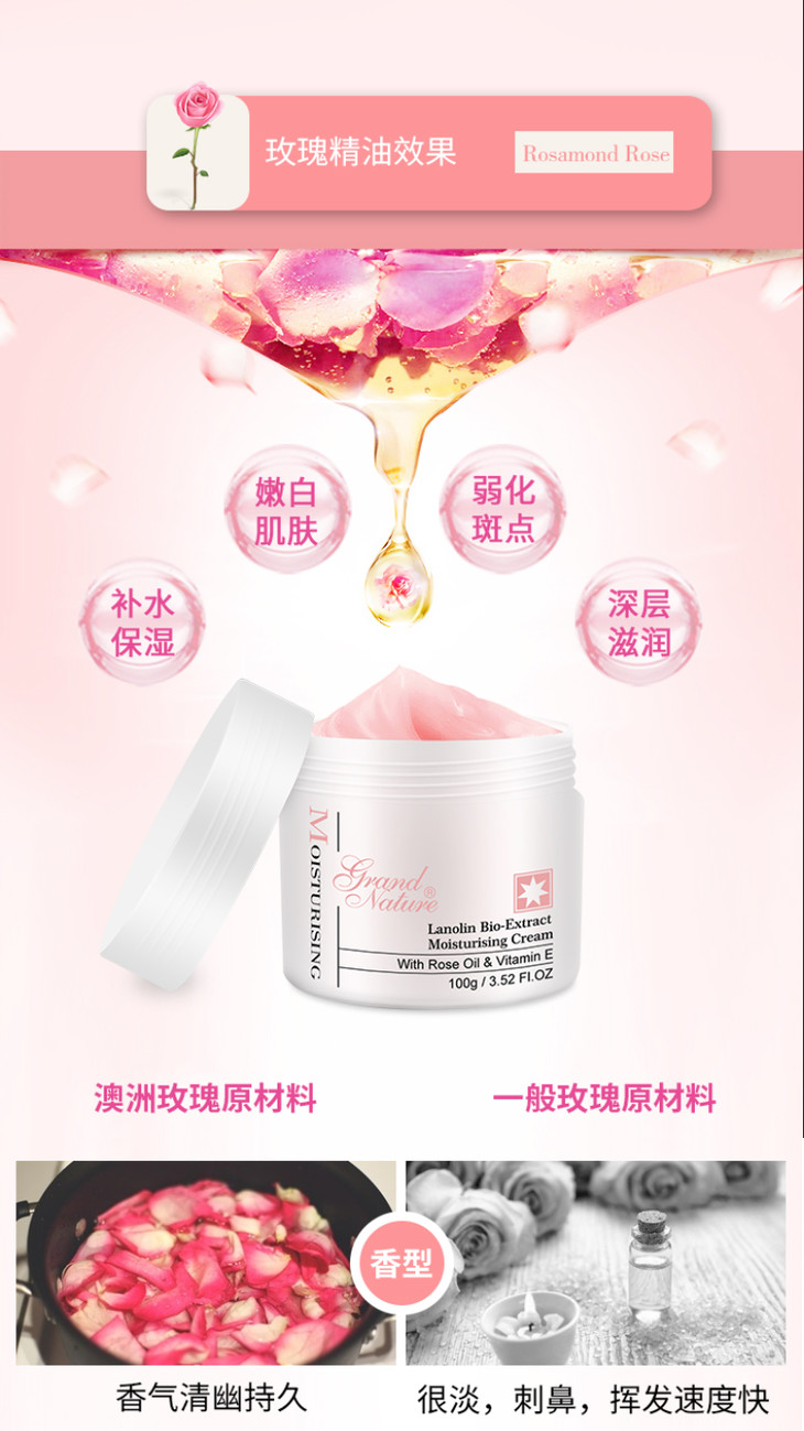 【澳洲年轻美妆博主欢迎的面霜】澳洲Grand Nature歌莱妮美白嫩肤玫瑰维E霜100克