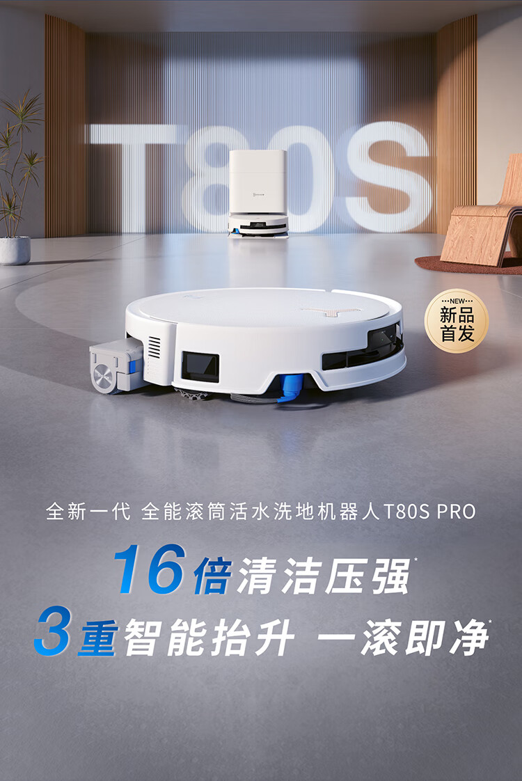 科沃斯T80S PRO扫地机器人扫拖洗烘一体自动清洗滚筒洗地机器人水箱版DEX62
