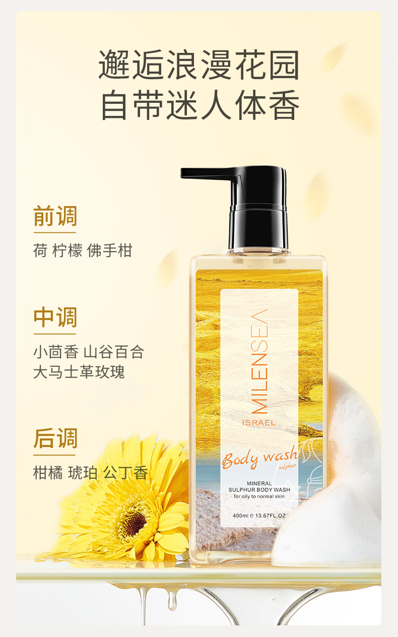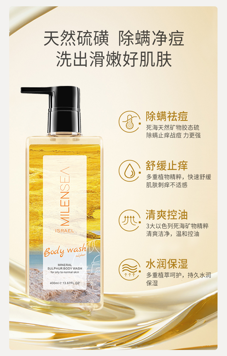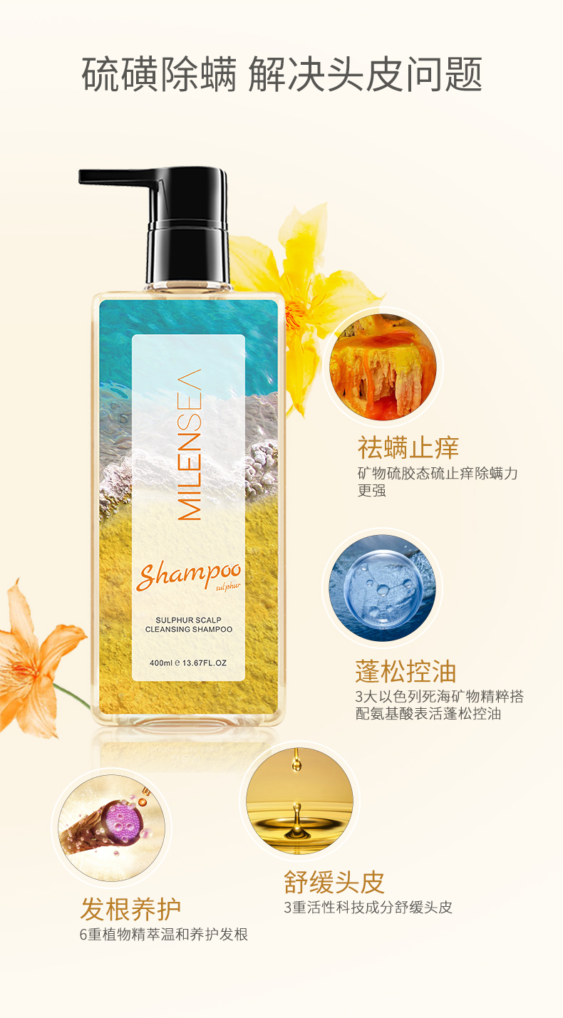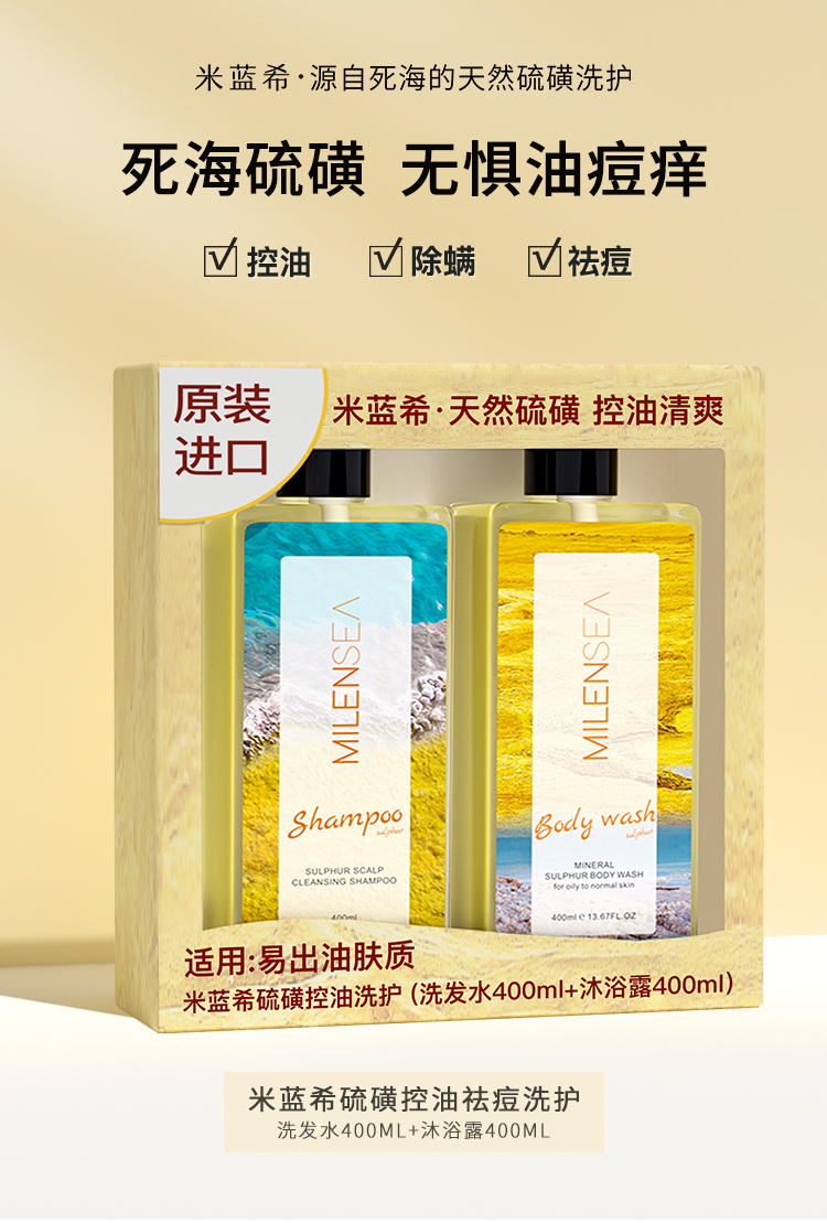 米蓝希硫磺控油去螨虫洗护礼盒沐浴露400ml+洗发水400ml