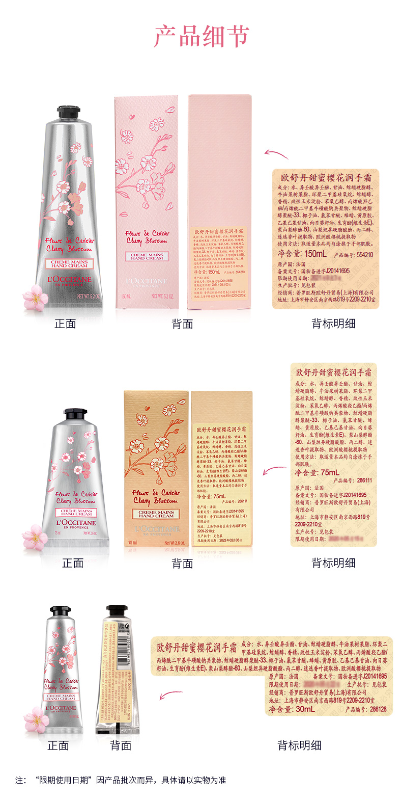 【欧舒丹】B1F手霜套装2(甜扁桃护手霜30ml+樱花护手霜30ml+乳木果护手霜30ml)