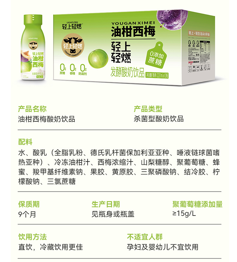 品名:轻上油柑西梅酸奶