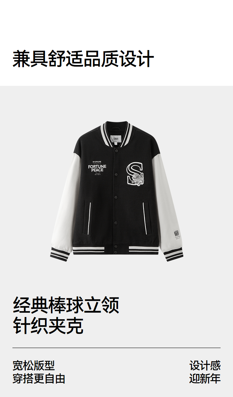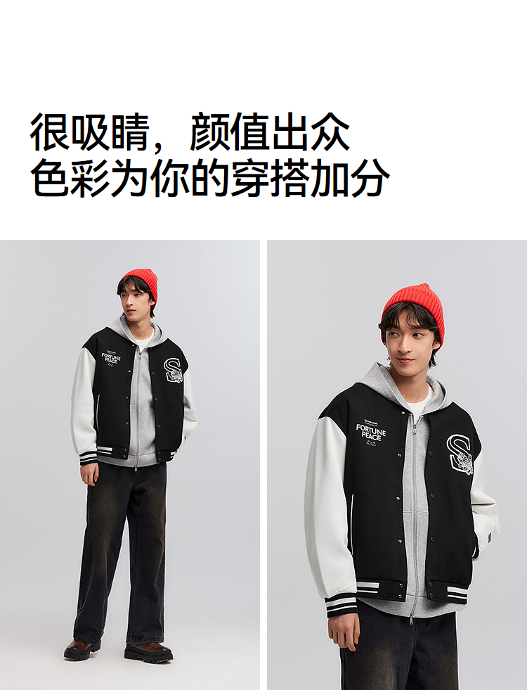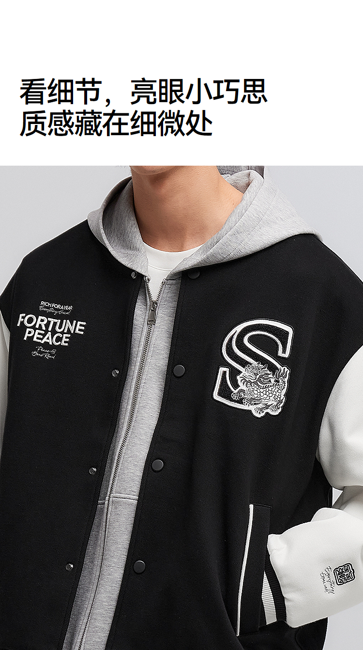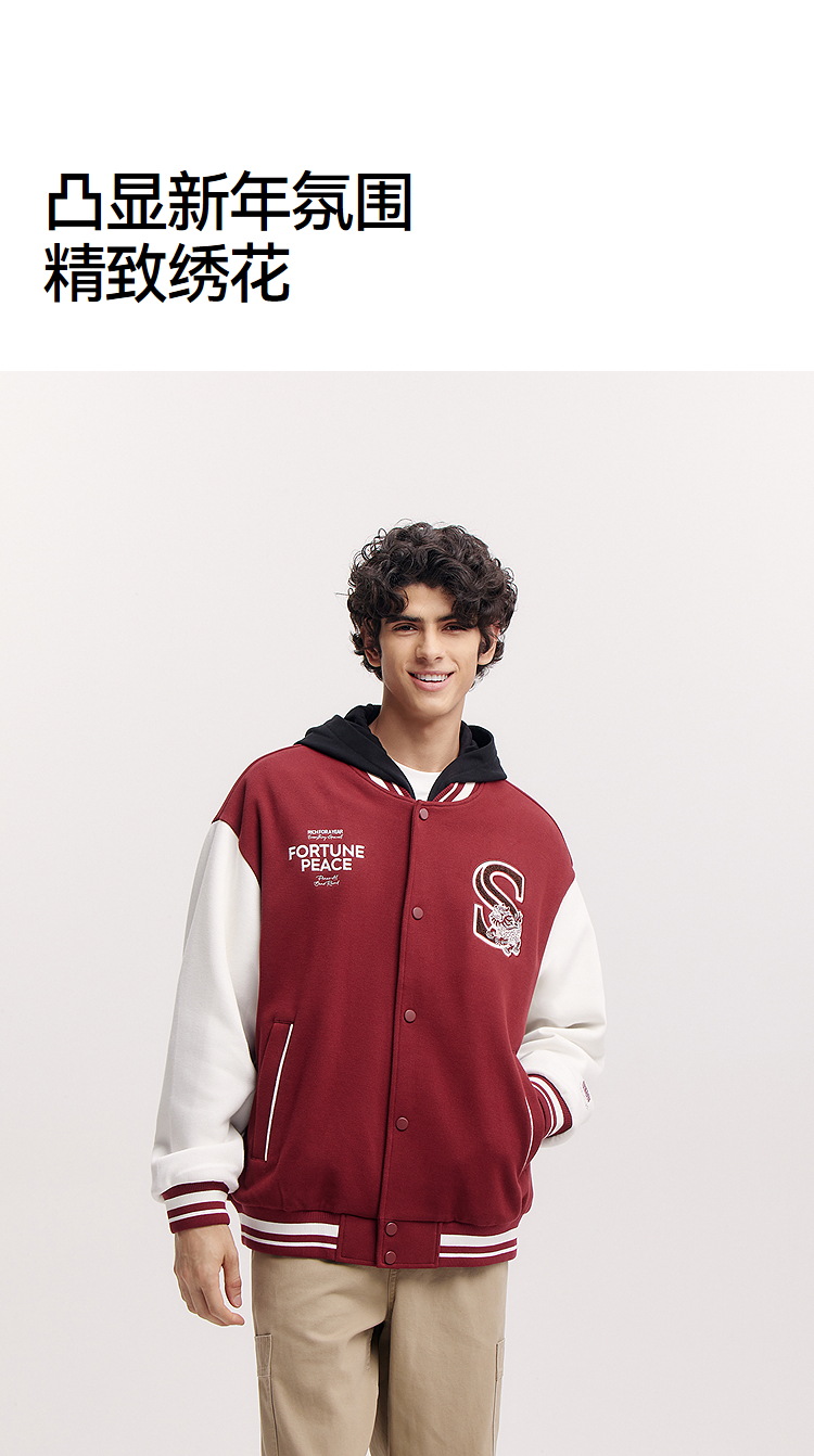 森马夹克男春季新年风字母绣花棒球服情侣休闲麒麟贴布绣外套潮流