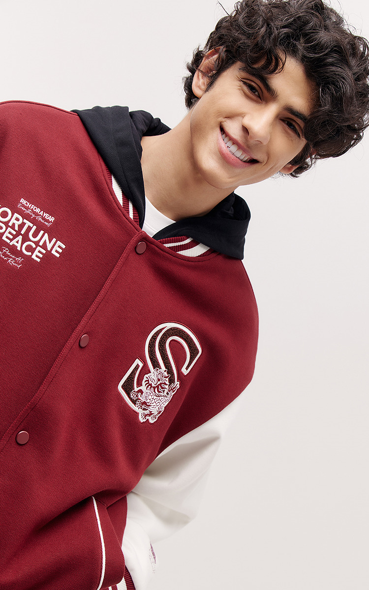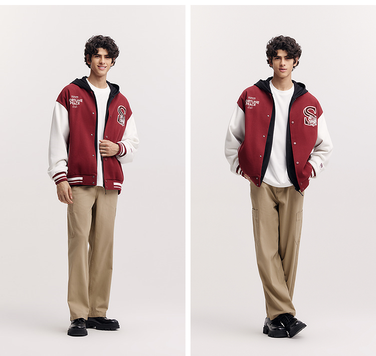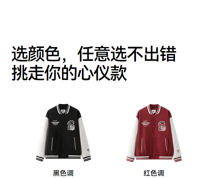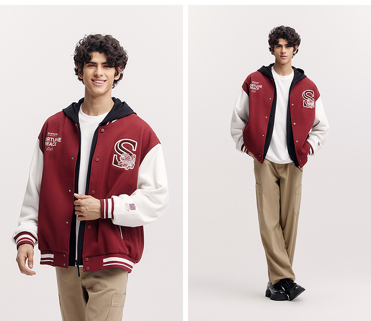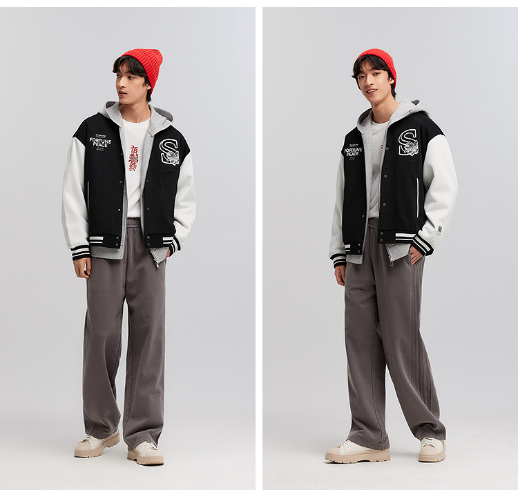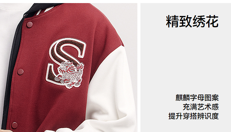 森马夹克男春季新年风字母绣花棒球服情侣休闲麒麟贴布绣外套潮流