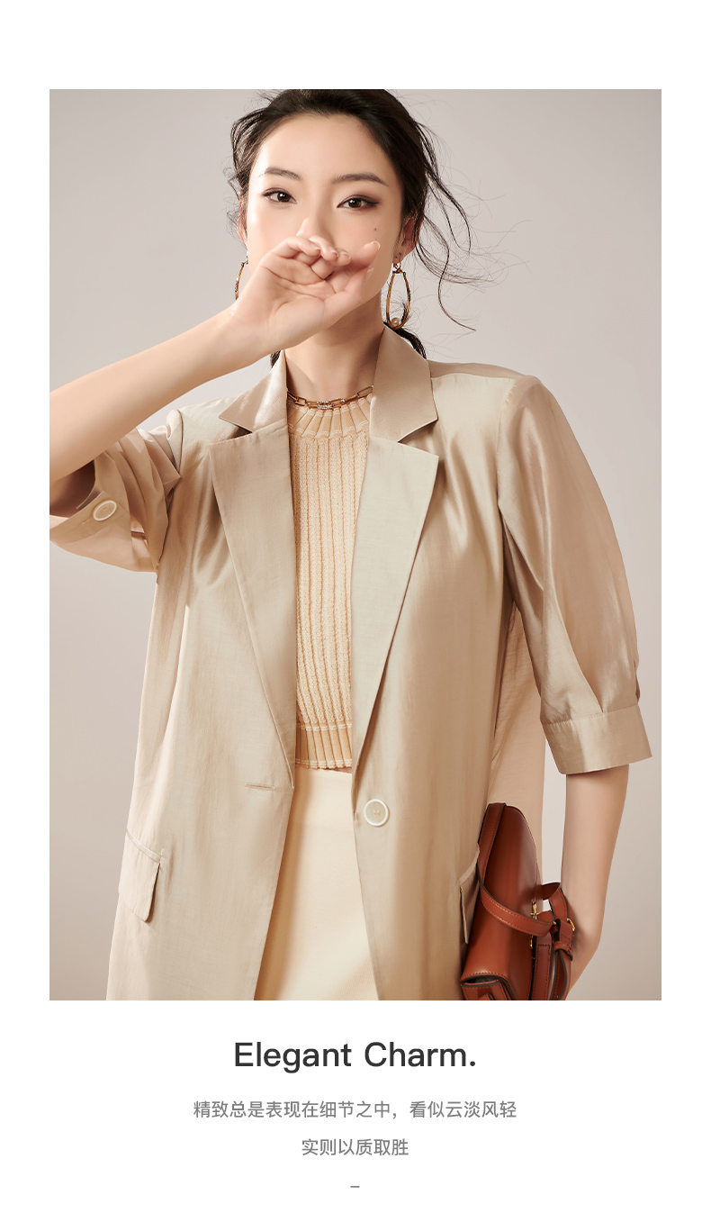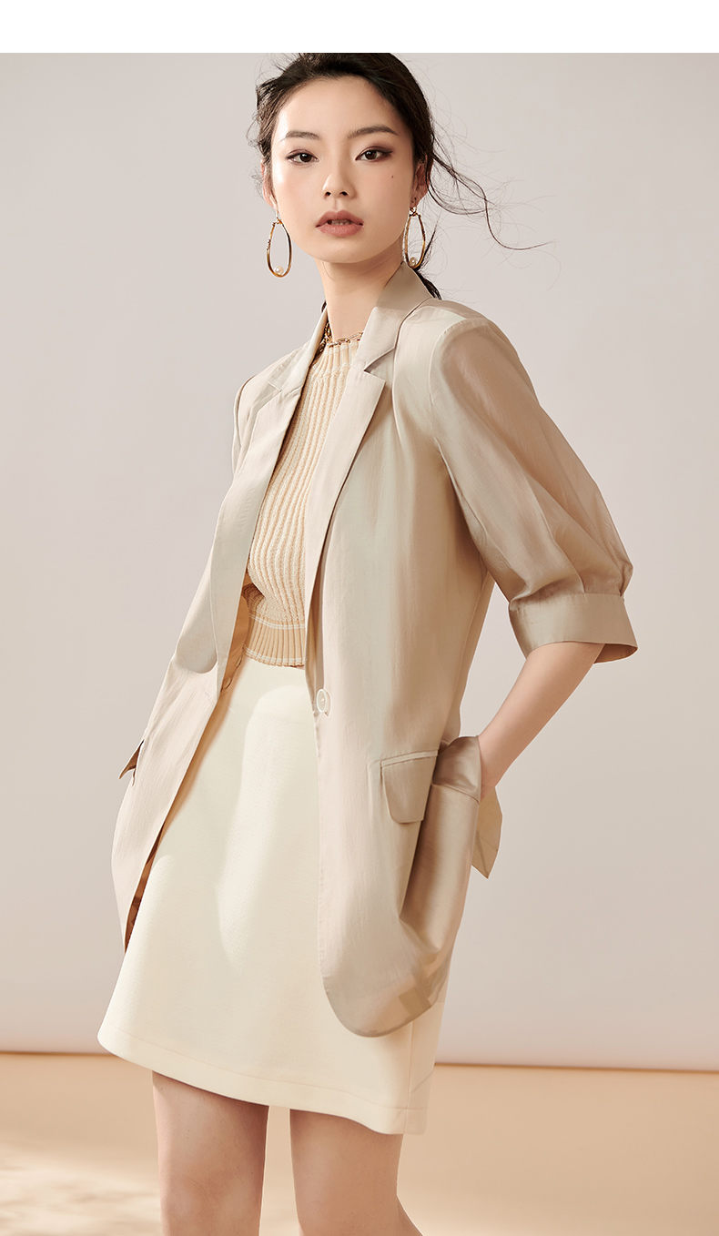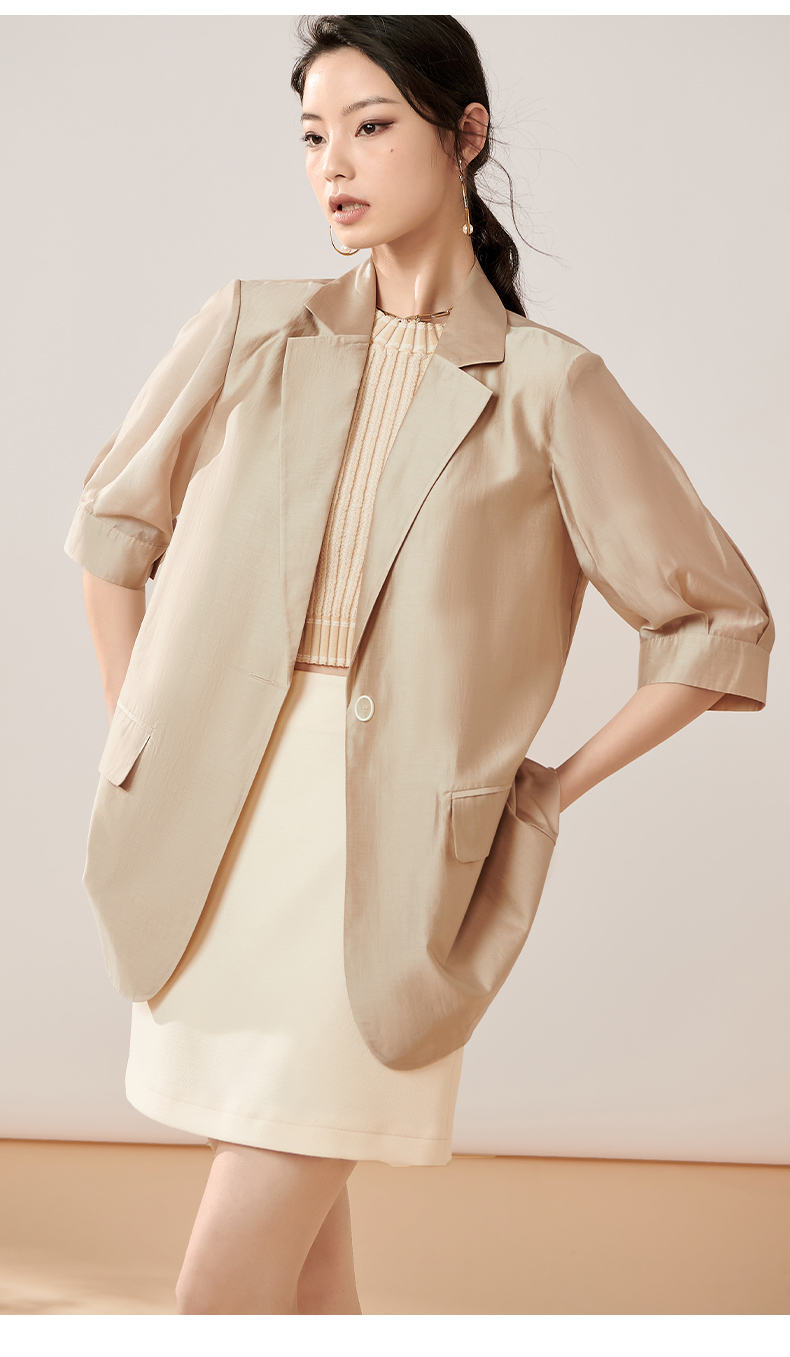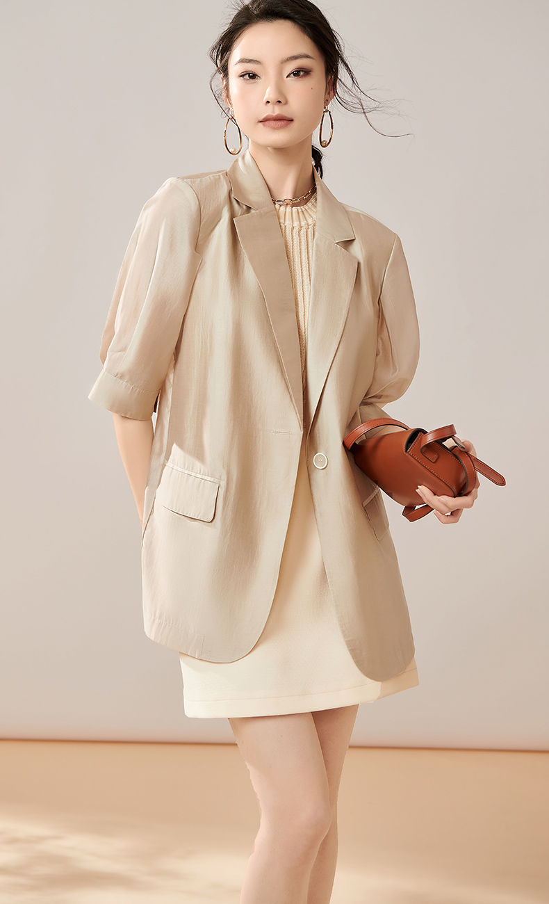 夏季新款时尚气质莱赛尔西装薄款五分袖一粒扣外套女8T23BX0414