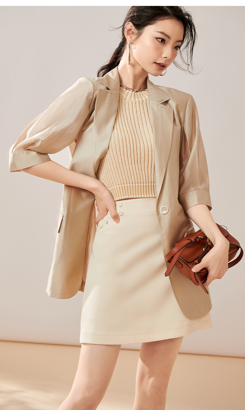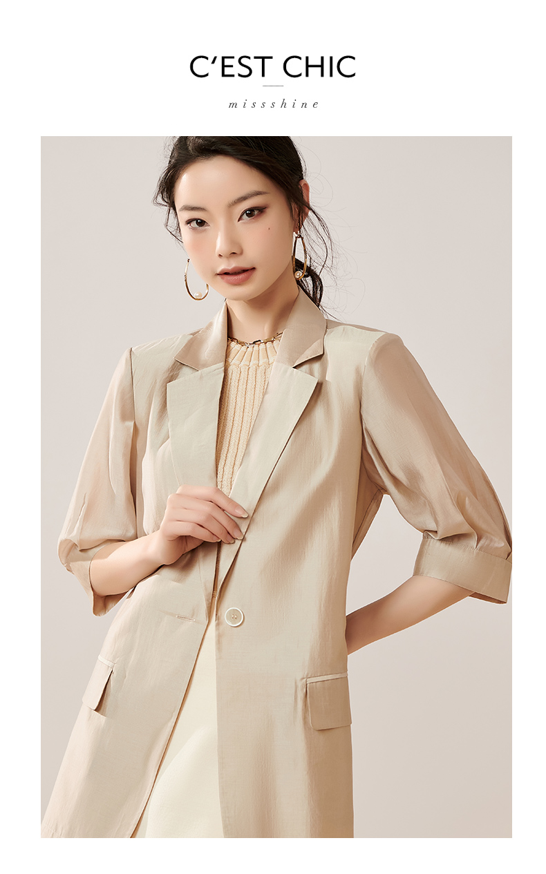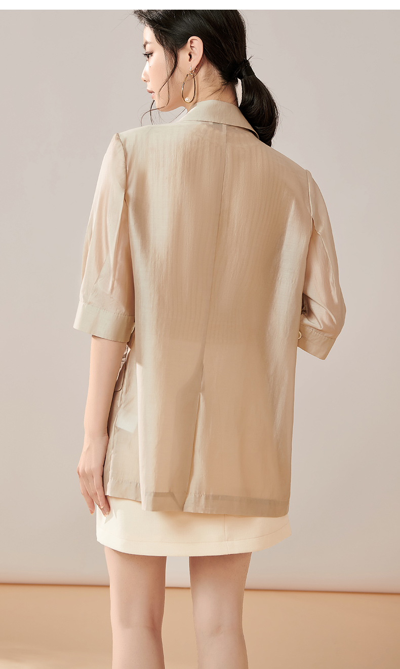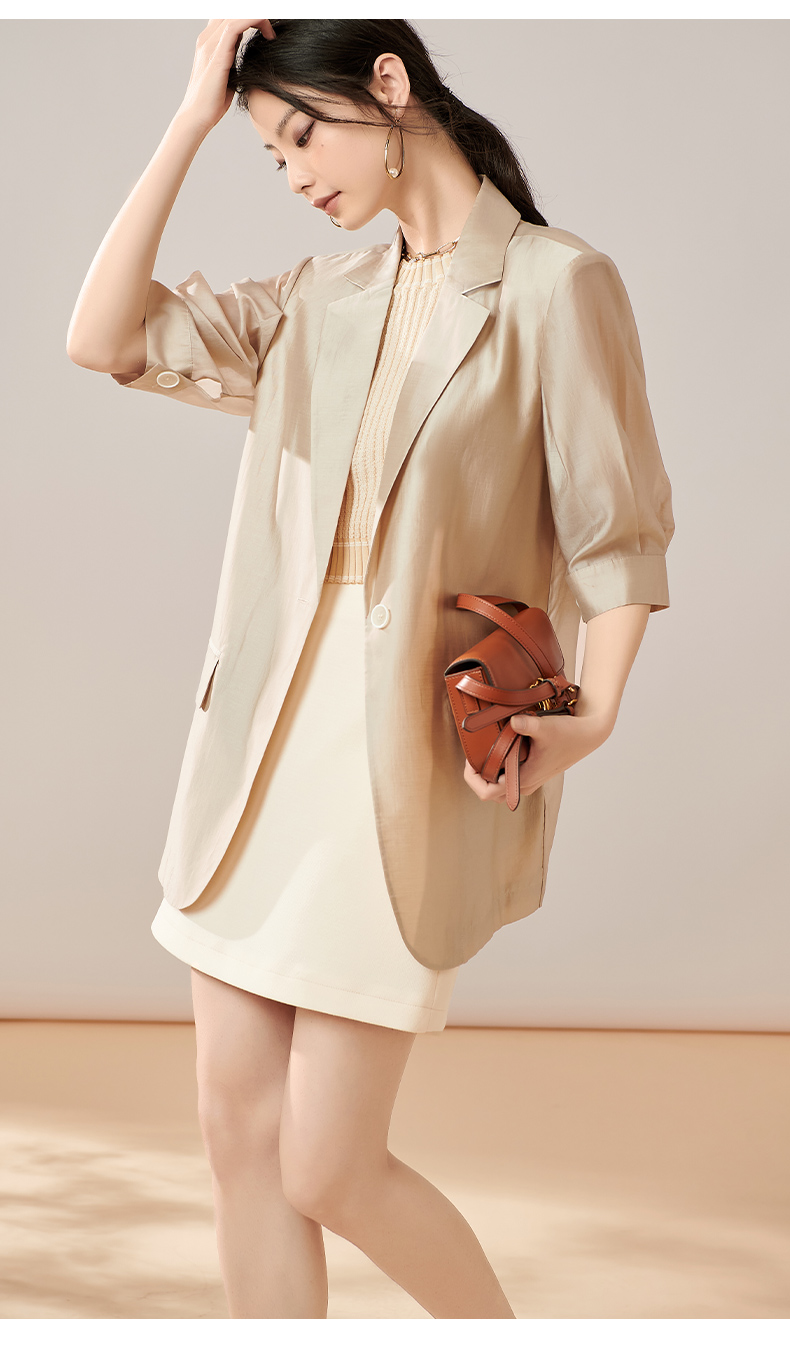 夏季新款时尚气质莱赛尔西装薄款五分袖一粒扣外套女8T23BX0414