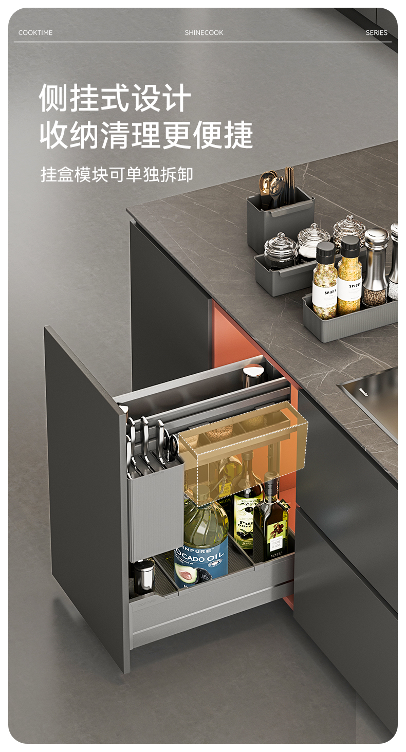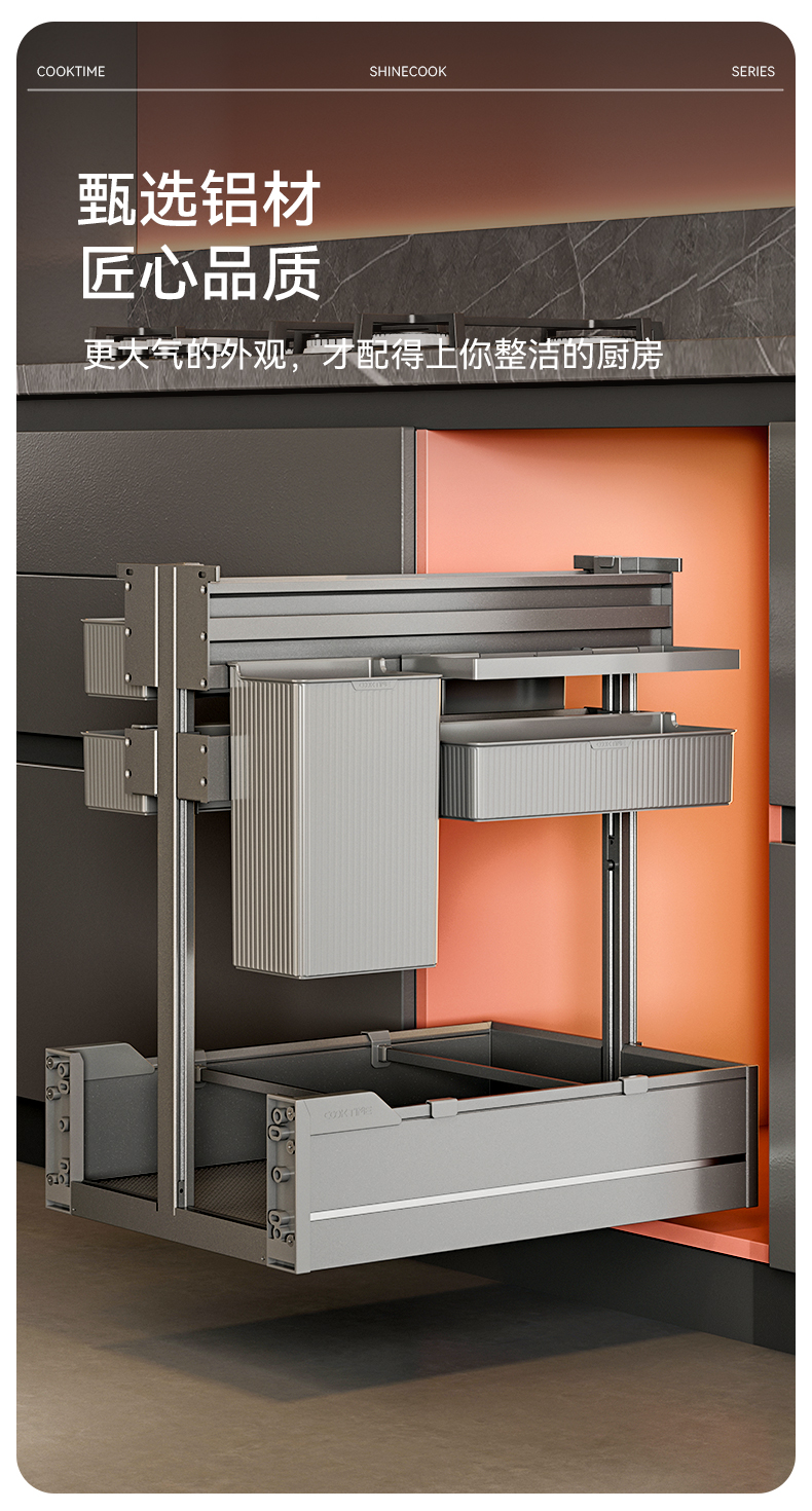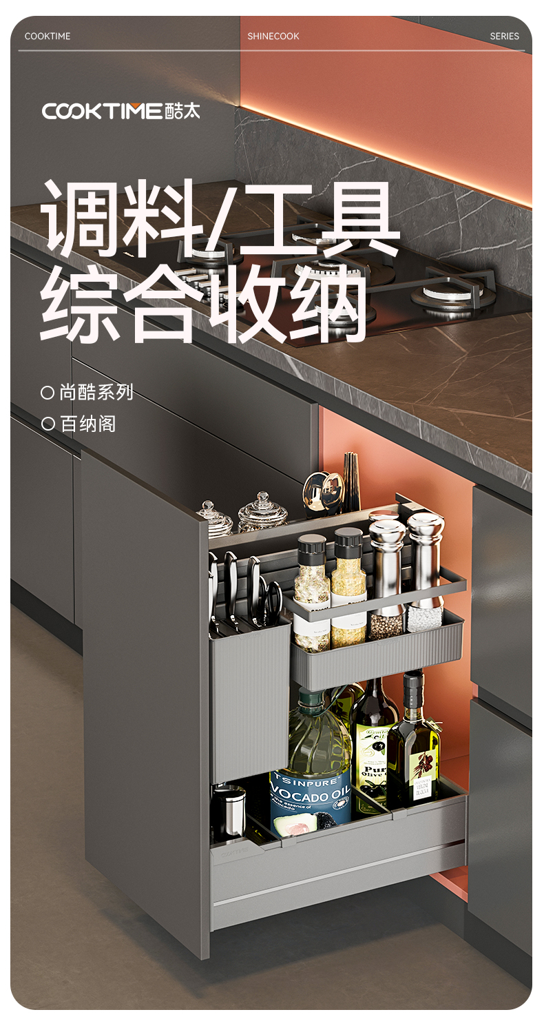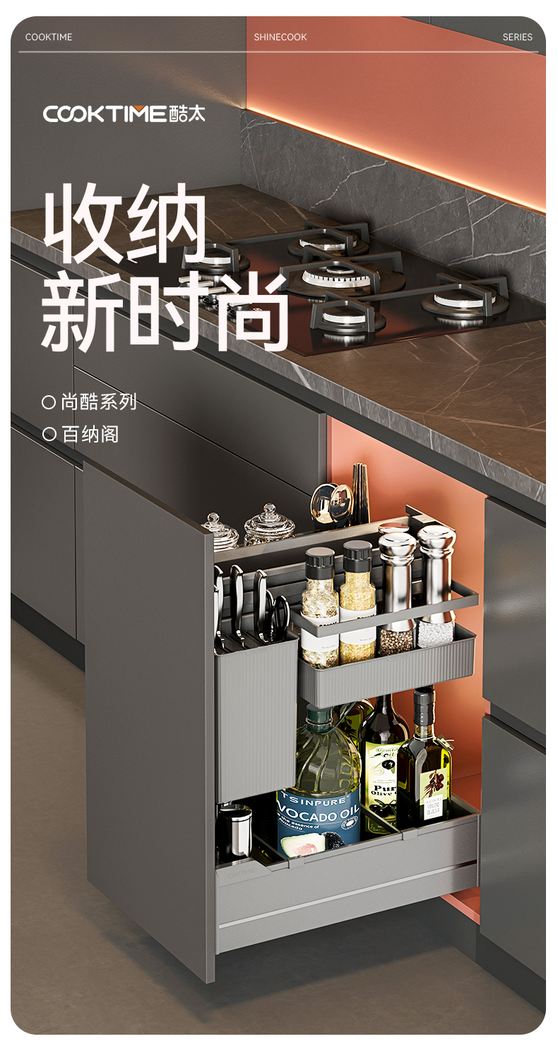 - 酷太坚持8年自主研发,已获得专利证书130项,拥有一套领先市场的厨房收纳系统,为千万中国家庭解决厨房脏乱差,缔造厨房新生活。