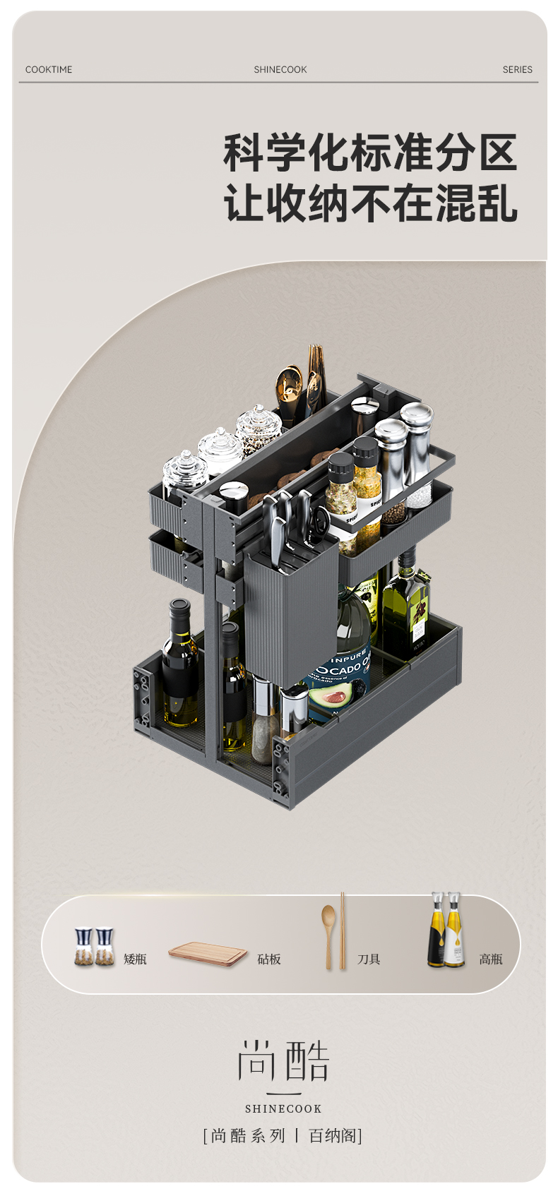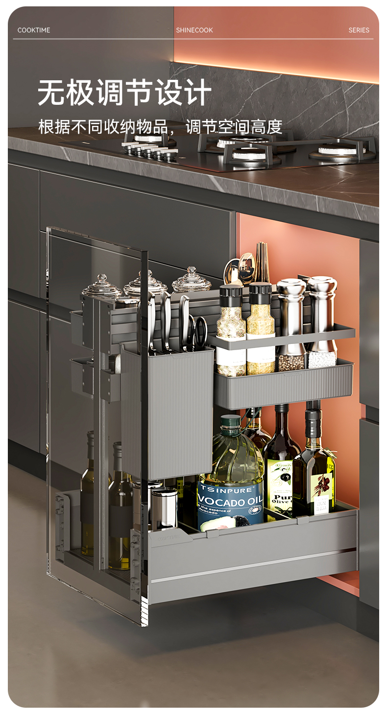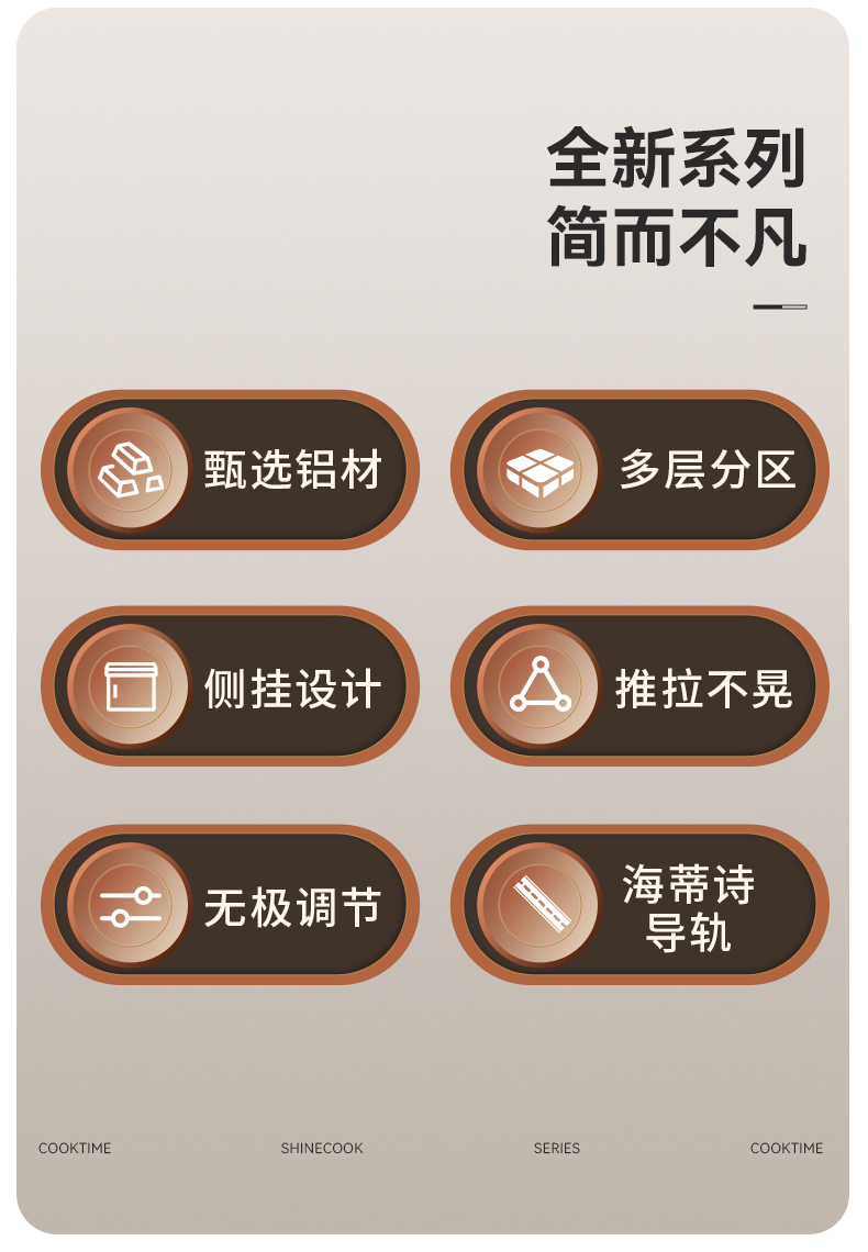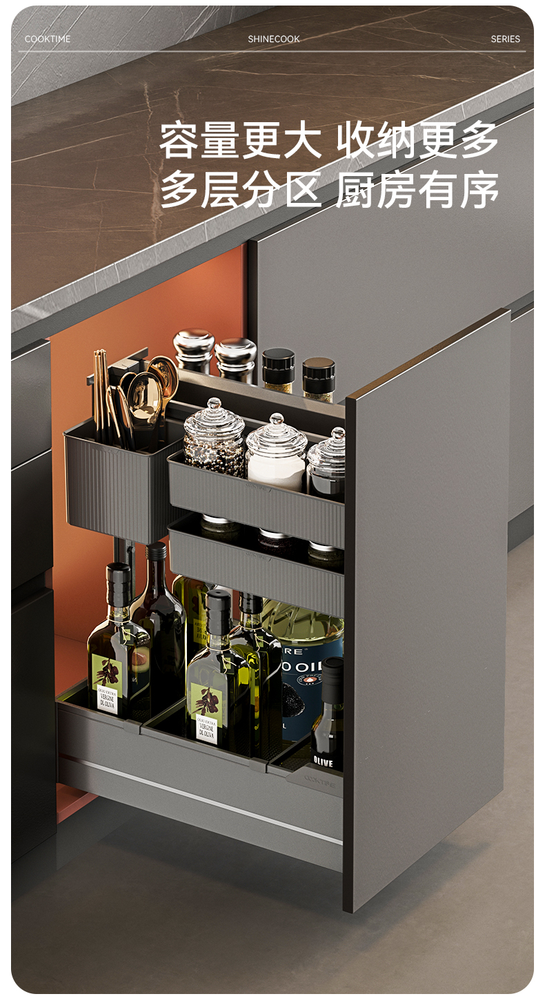 - 酷太坚持8年自主研发,已获得专利证书130项,拥有一套领先市场的厨房收纳系统,为千万中国家庭解决厨房脏乱差,缔造厨房新生活。