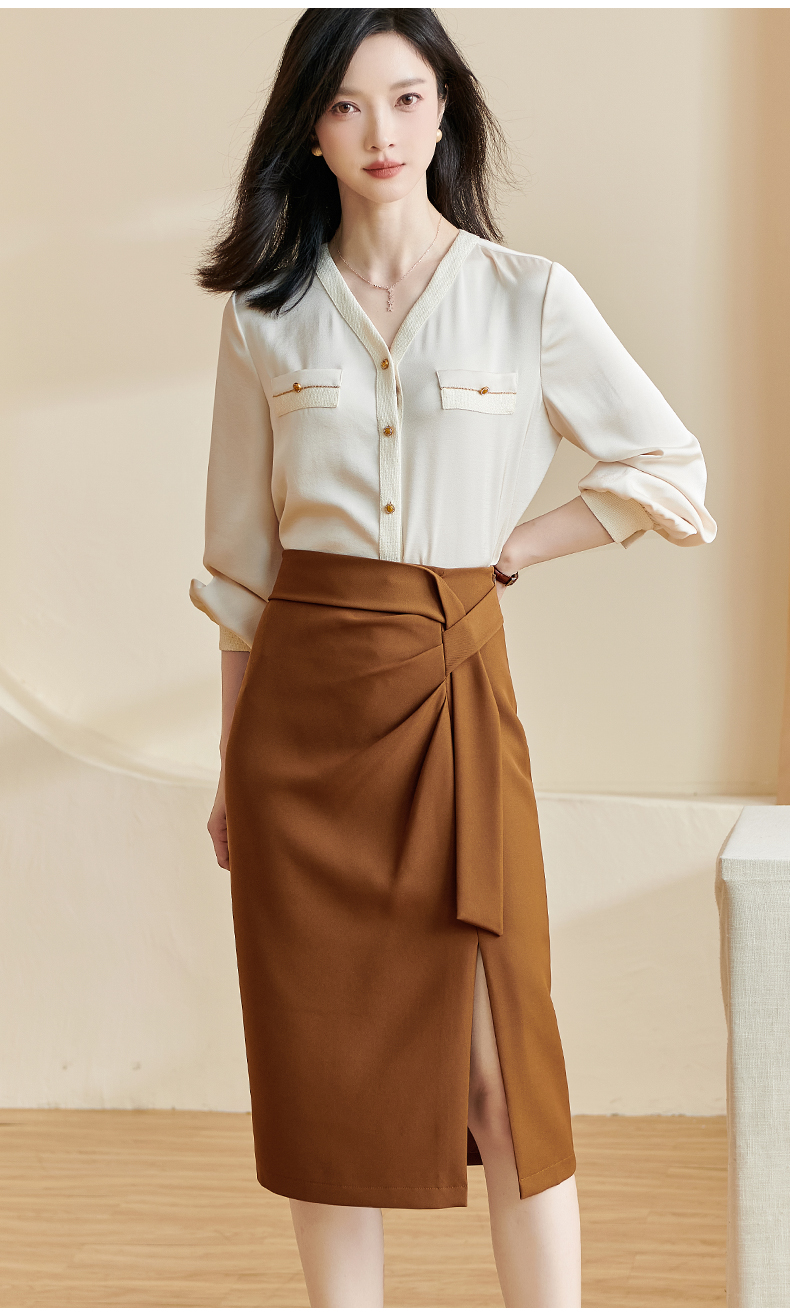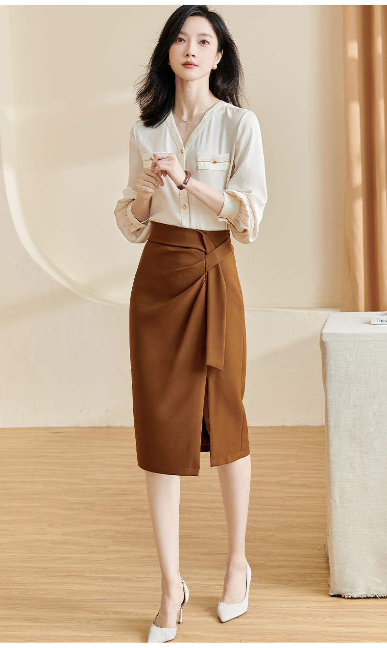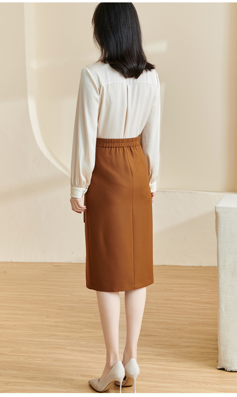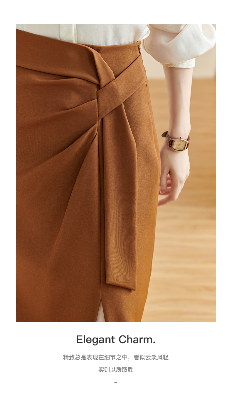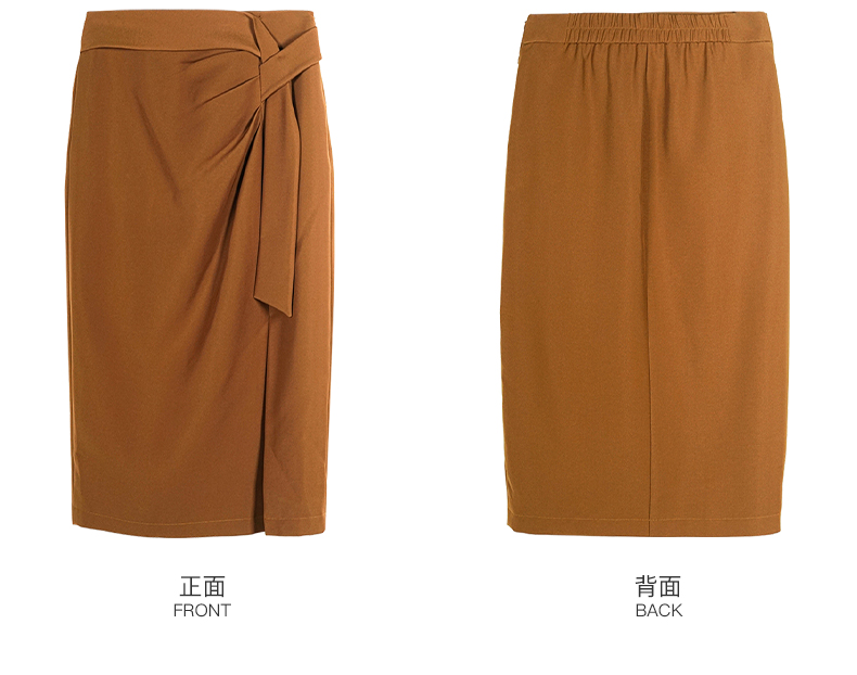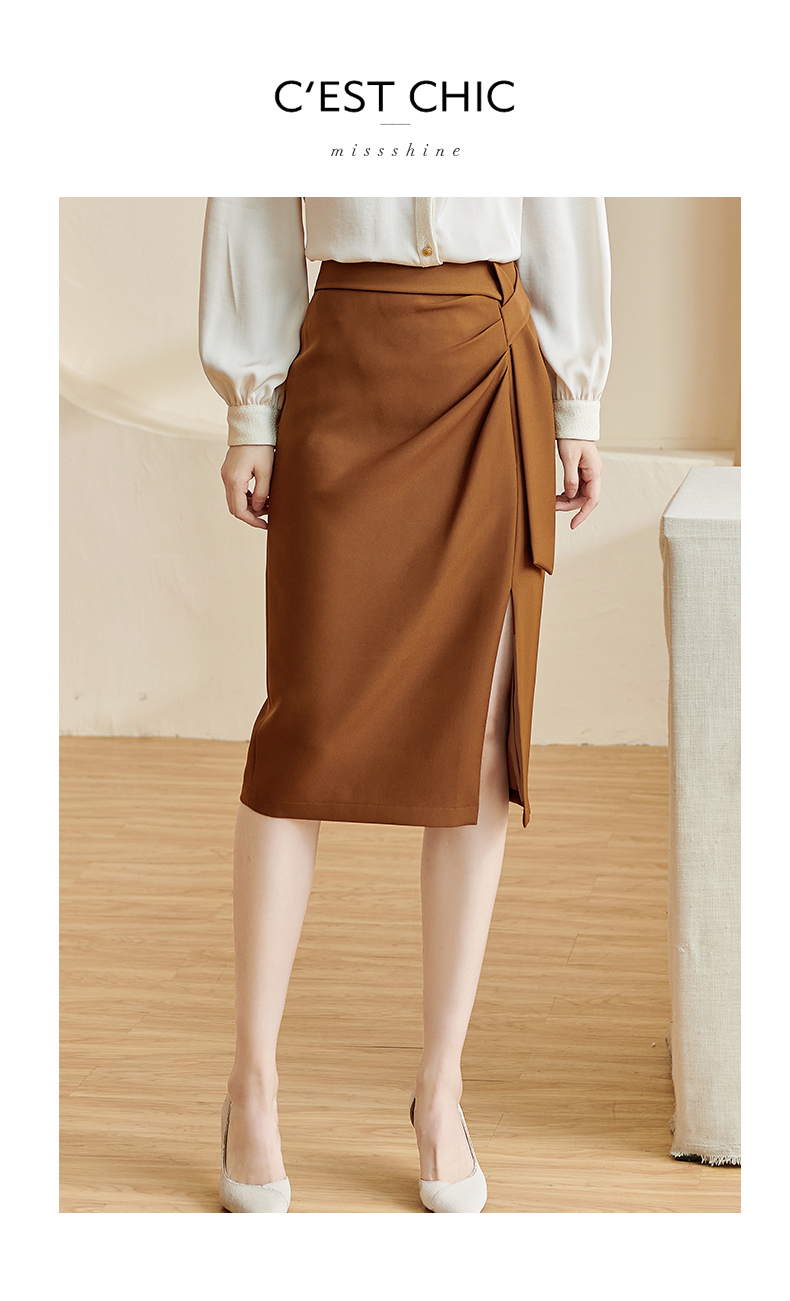 剩S/M/XL 米思阳2026春季新款通勤OL风纯色半身裙修身褶皱绑带开叉裙子2497