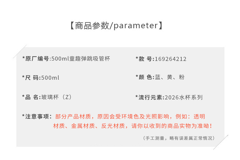 500ml童趣弹跳吸管杯玻璃杯-纪念日百货门店同款169264212