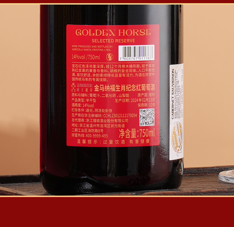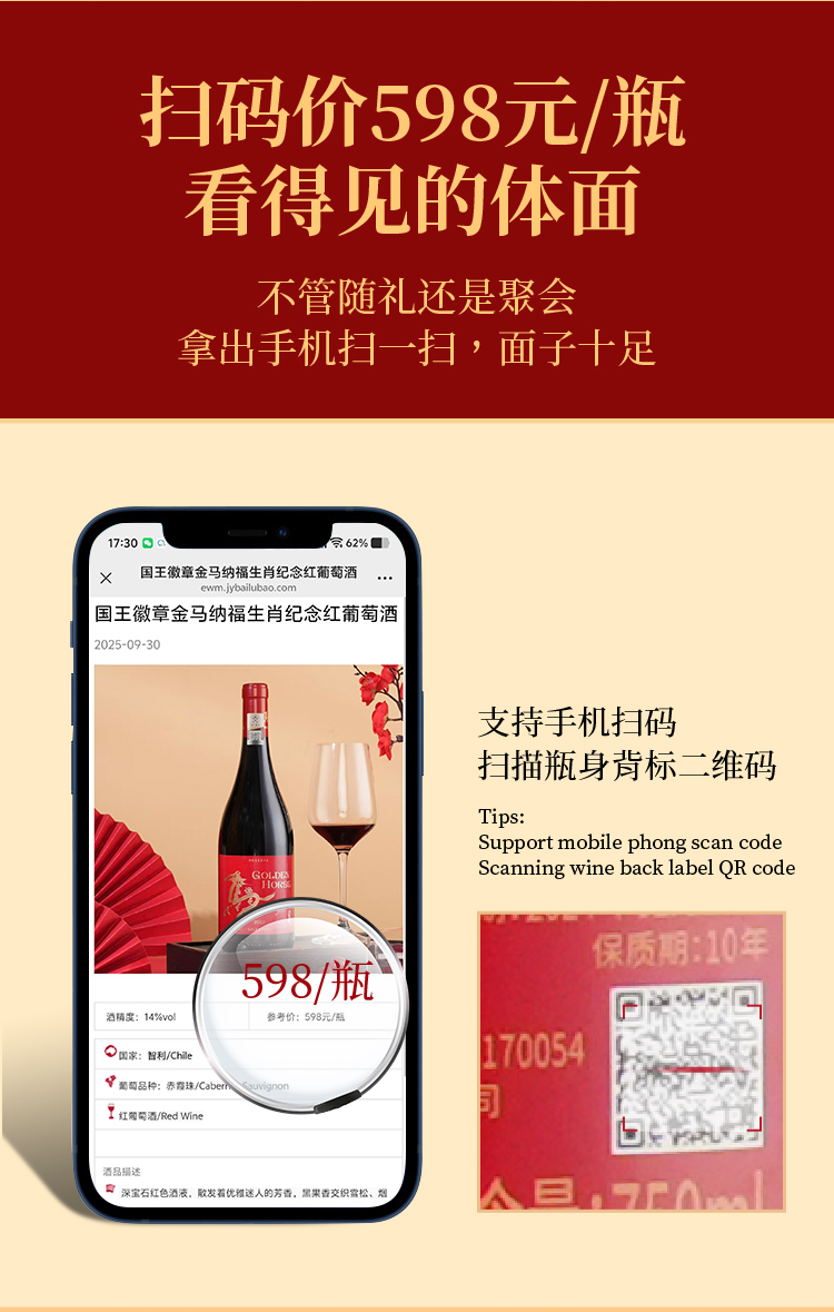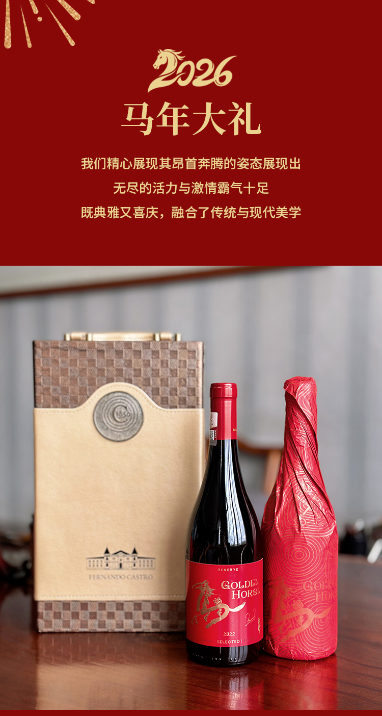 “2026丙午马年生肖限定限量款” 国王徽章红葡萄酒 智利原瓶进口 金马纳福生肖纪念礼盒 2支装/6支装