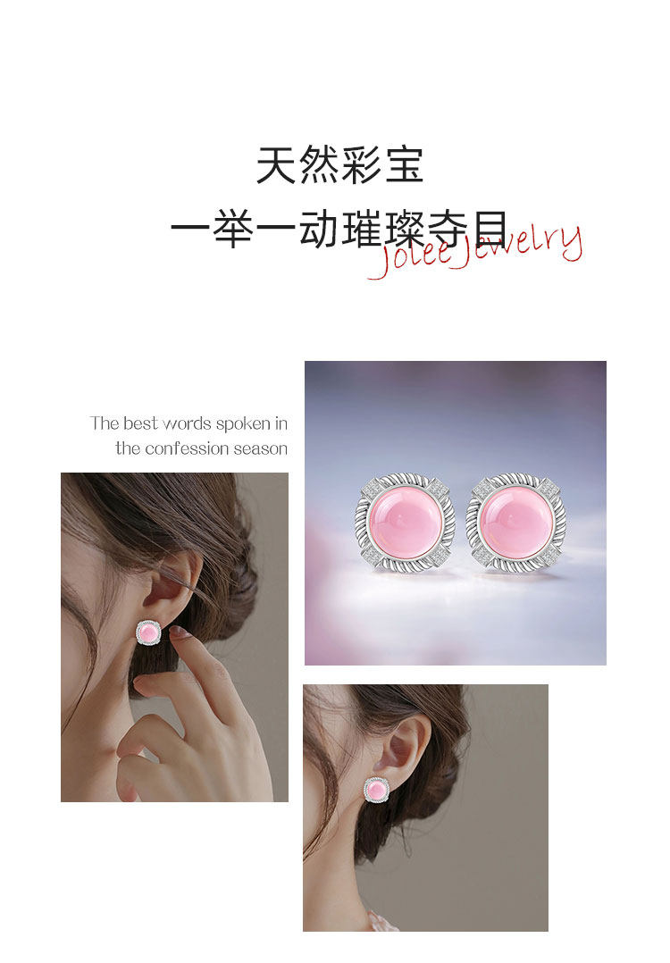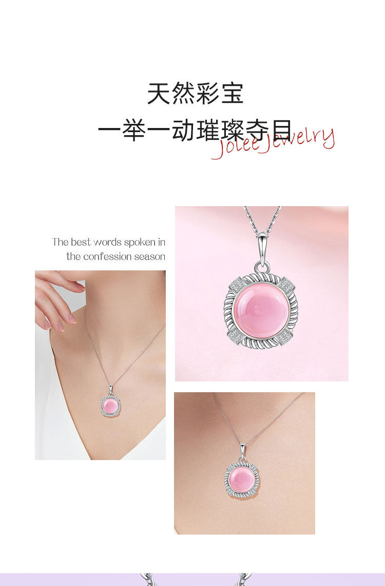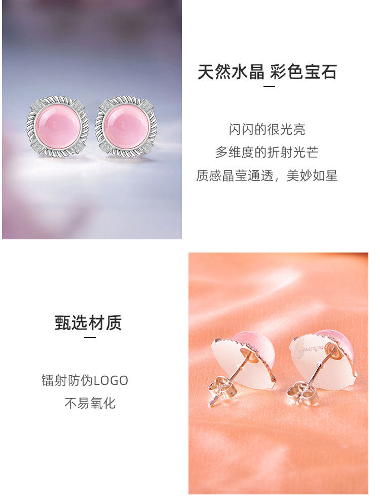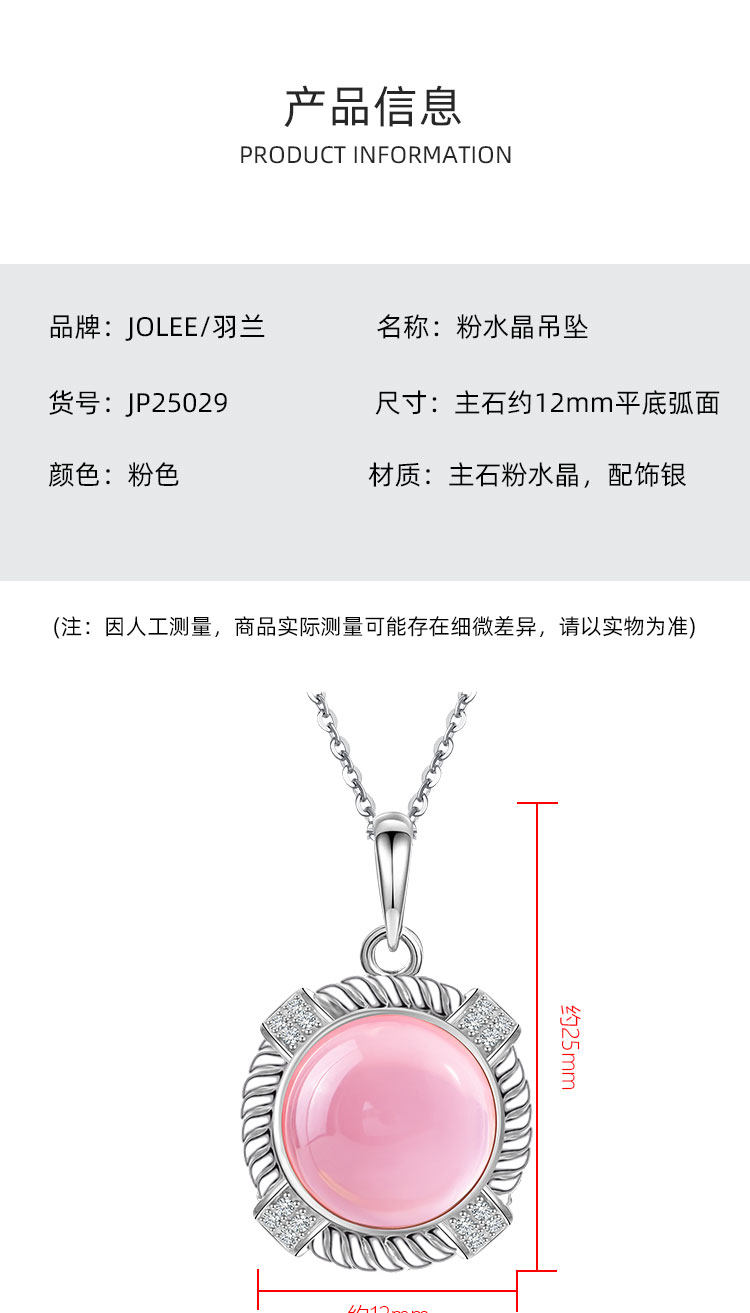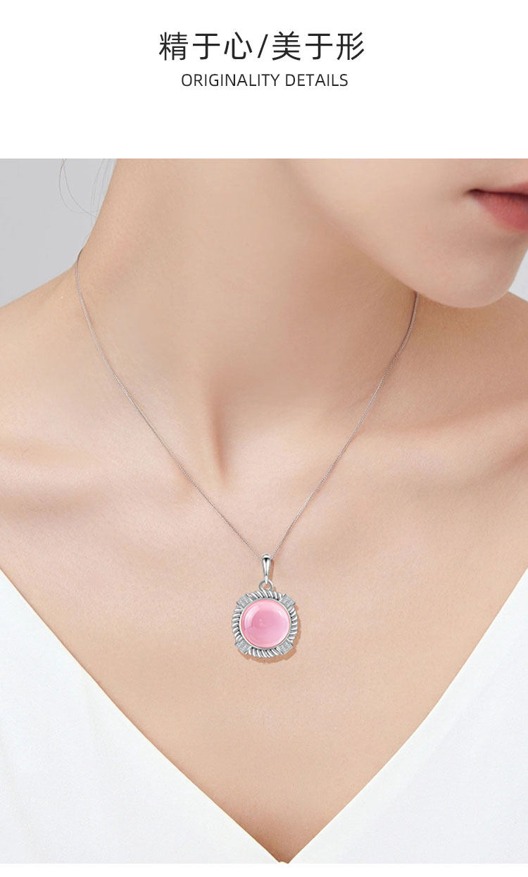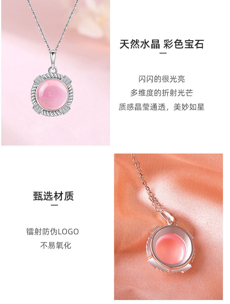 【粉水晶项链/耳钉】S925银轻奢芙蓉石吊坠饰品送生日节日礼物JP25029/JE25029-水晶CC