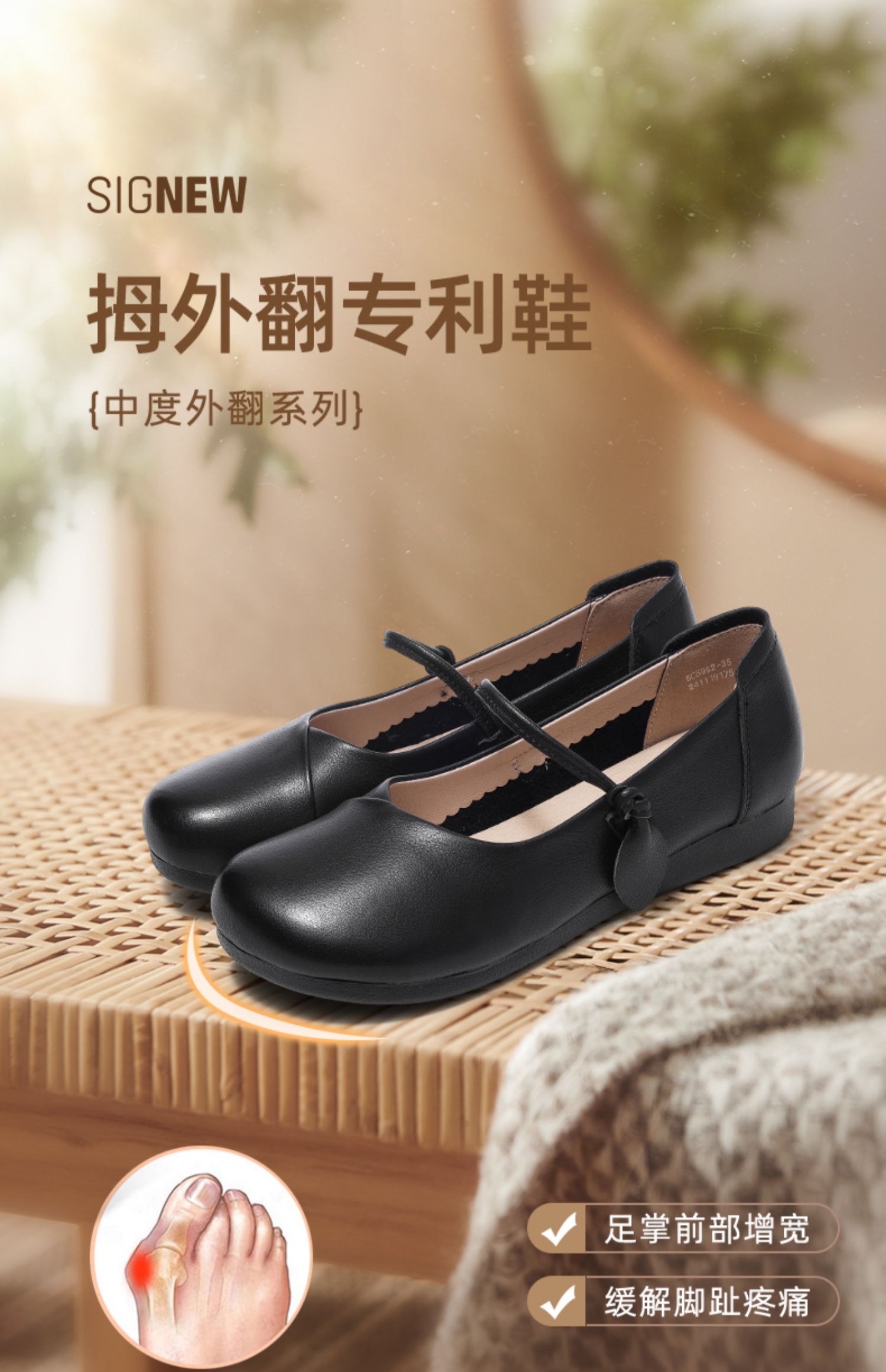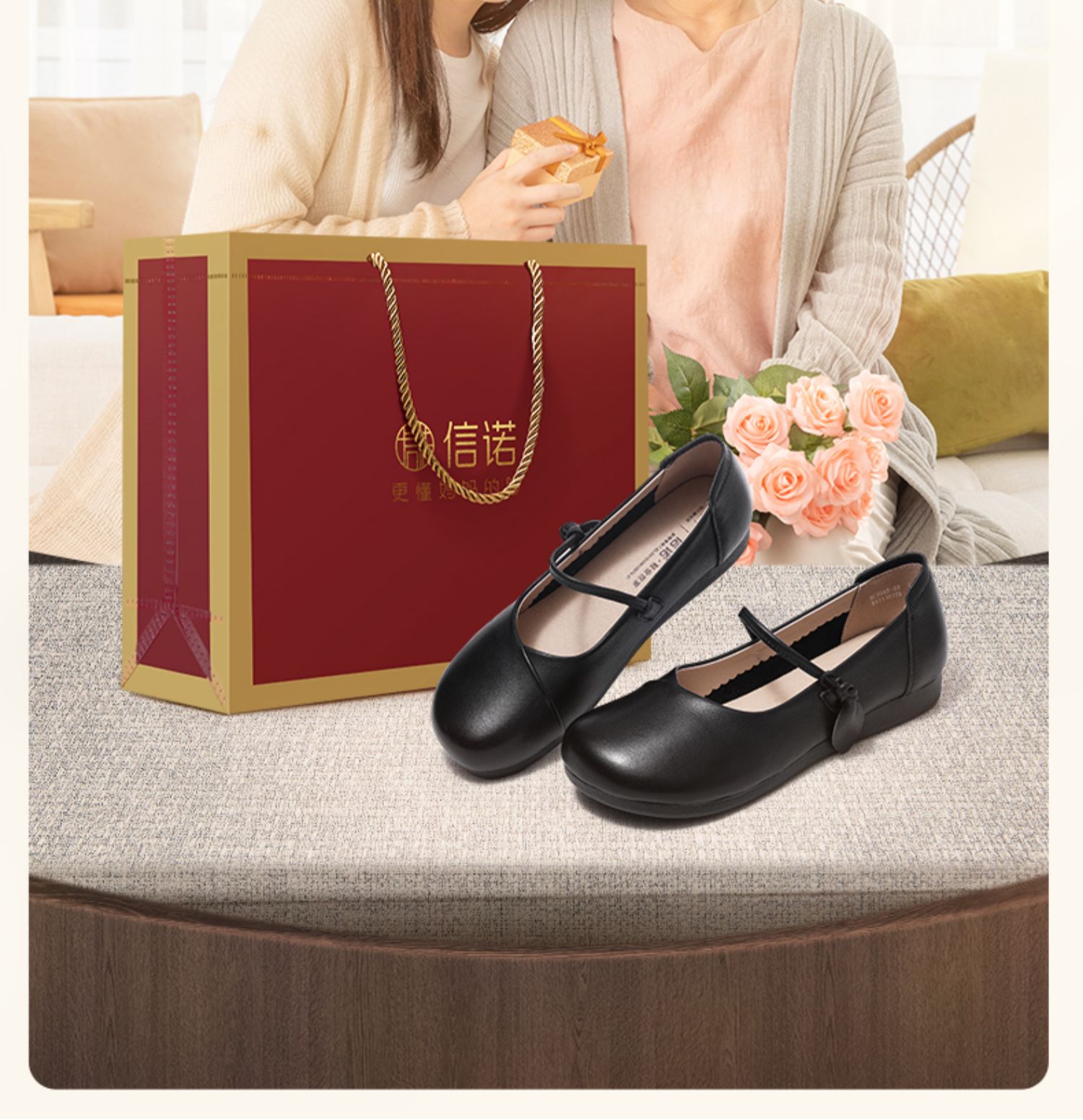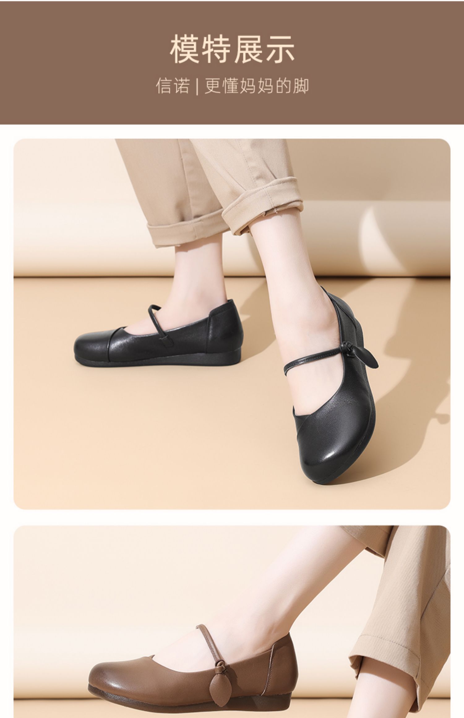 信诺真皮软底妈妈鞋拇外翻大脚骨皮鞋2025春季新款女鞋中老年单鞋5C5998-1