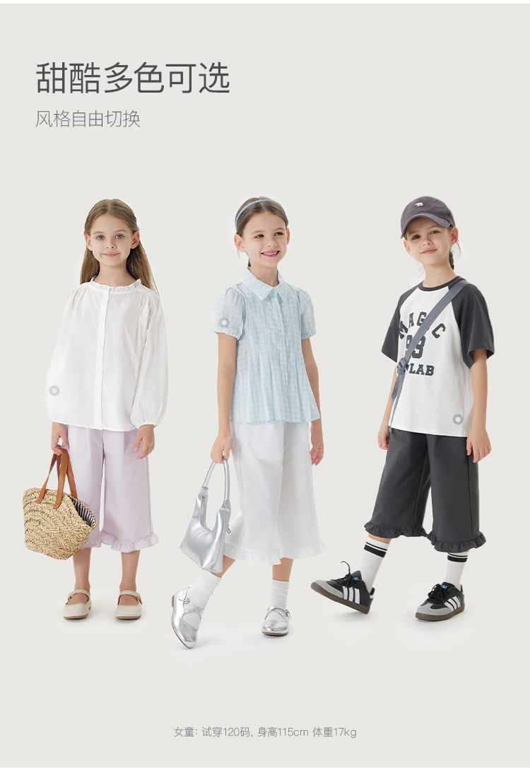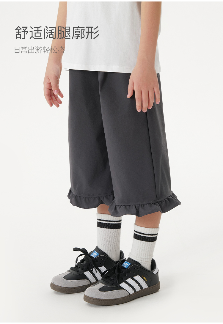 【吸湿速干】马克珍妮女童软弹花边运动阔腿裤春夏新款裤子550728